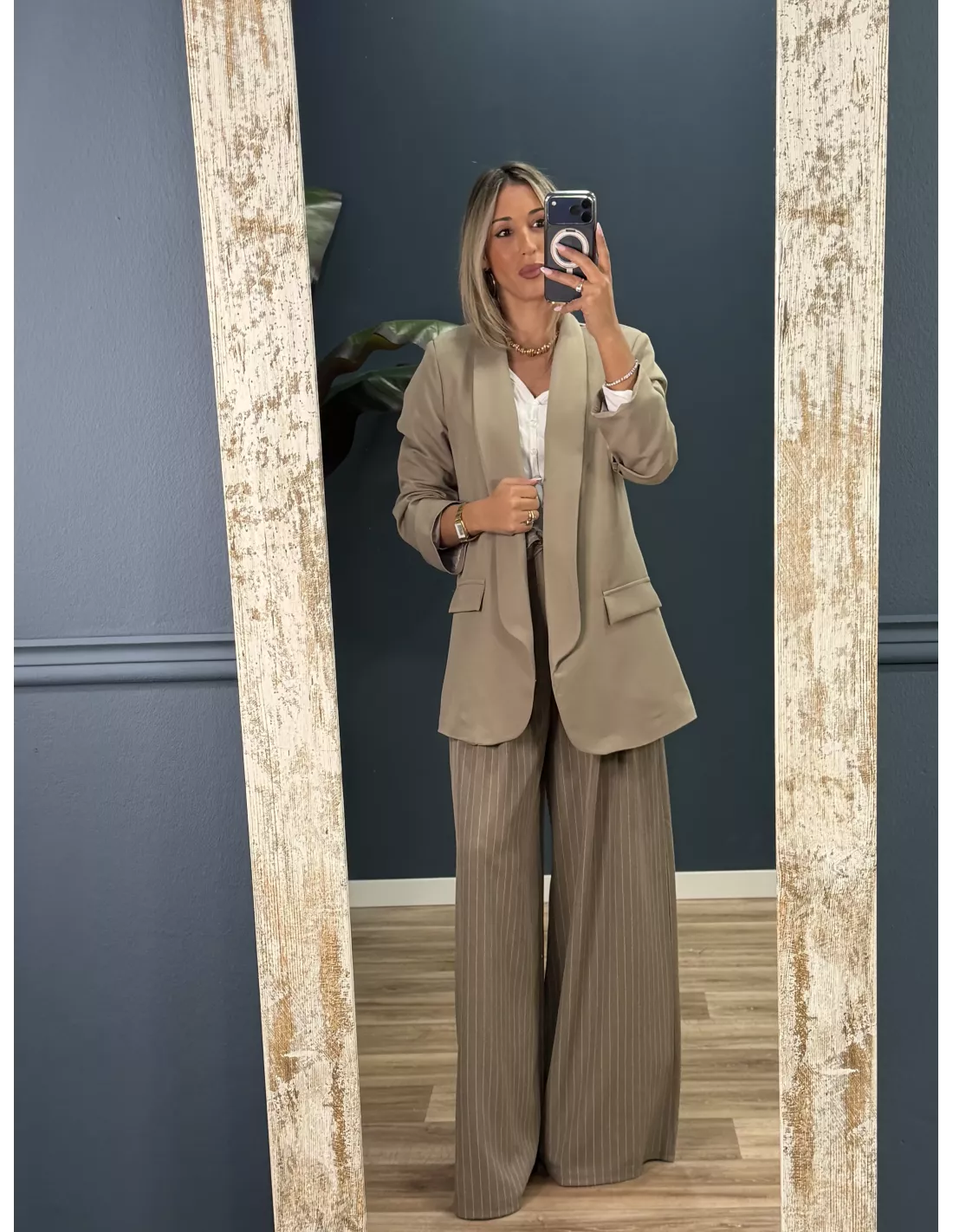 Pantalón Fidas raya diplomática taupe
