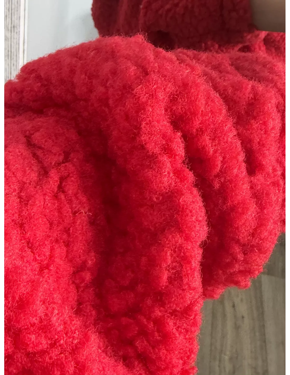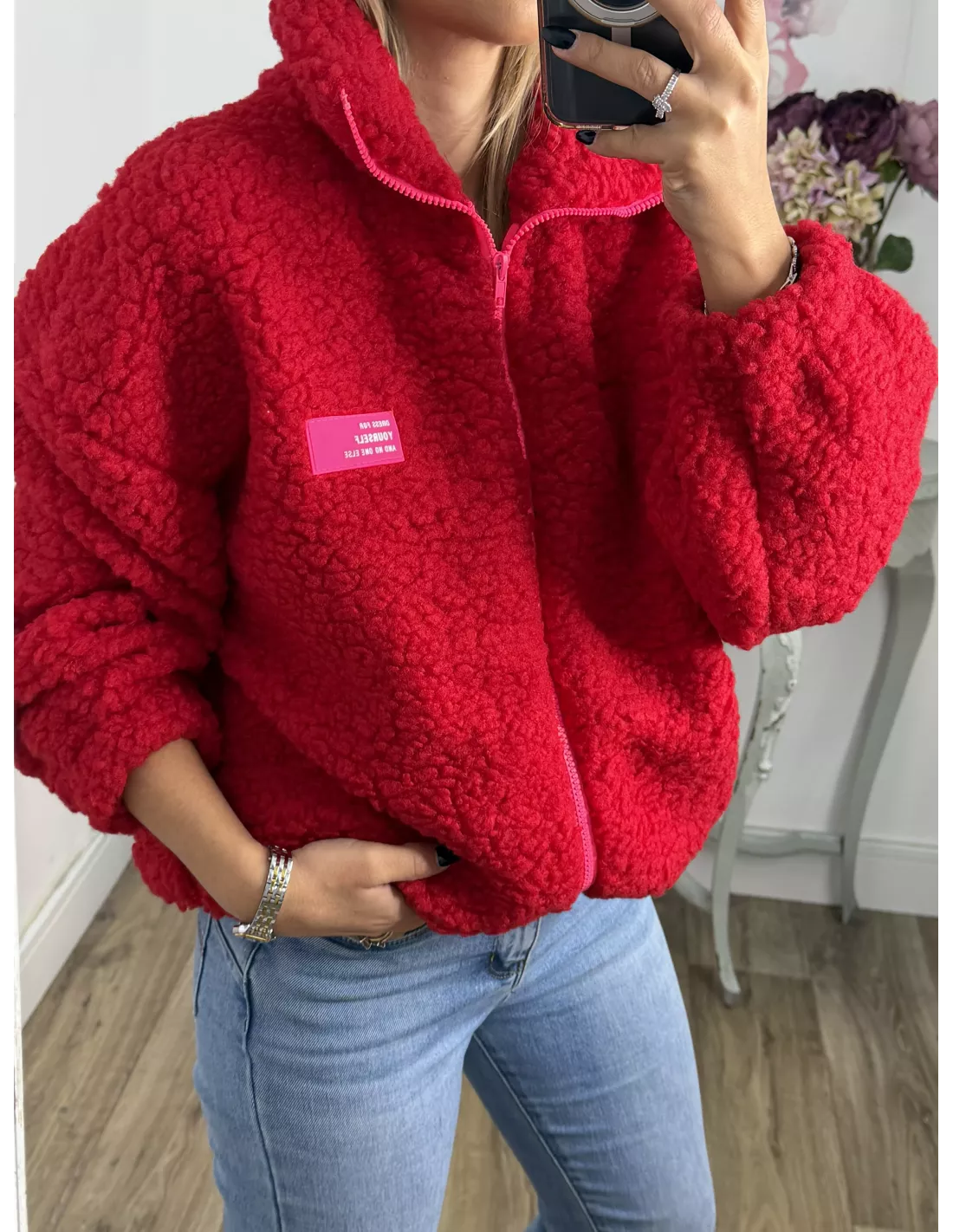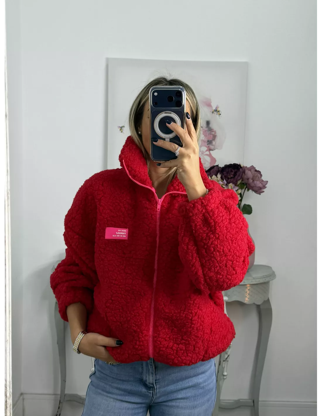 Polar que se cierra con cremallera. Lleva goma en los puños y en la parte de abajo que es efecto globo. No va forrado.