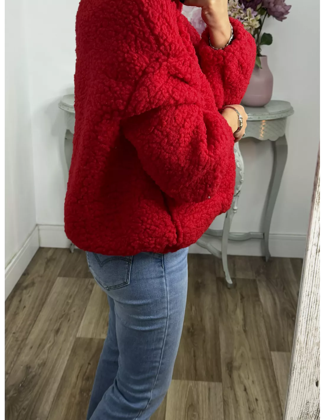 Medidas: hombro oversize 69 cm, pecho 67 cm, manga 50cm, largo 65 cm