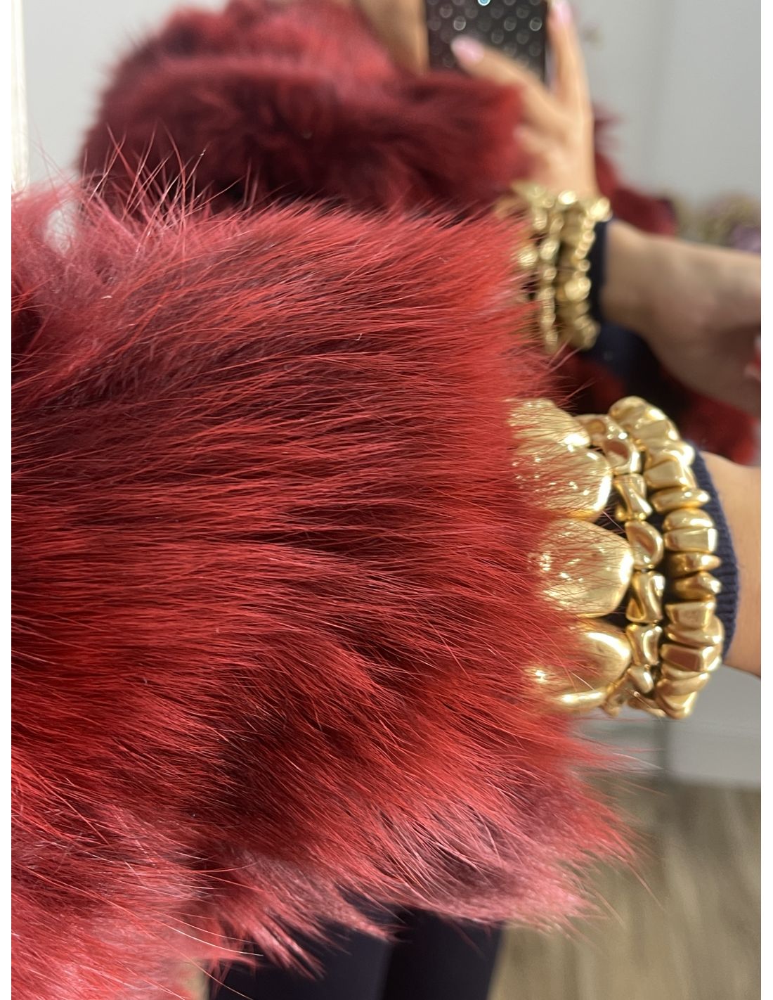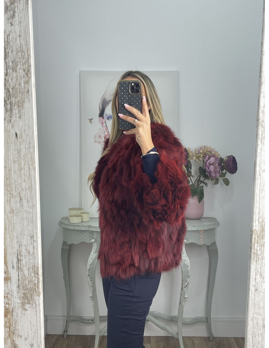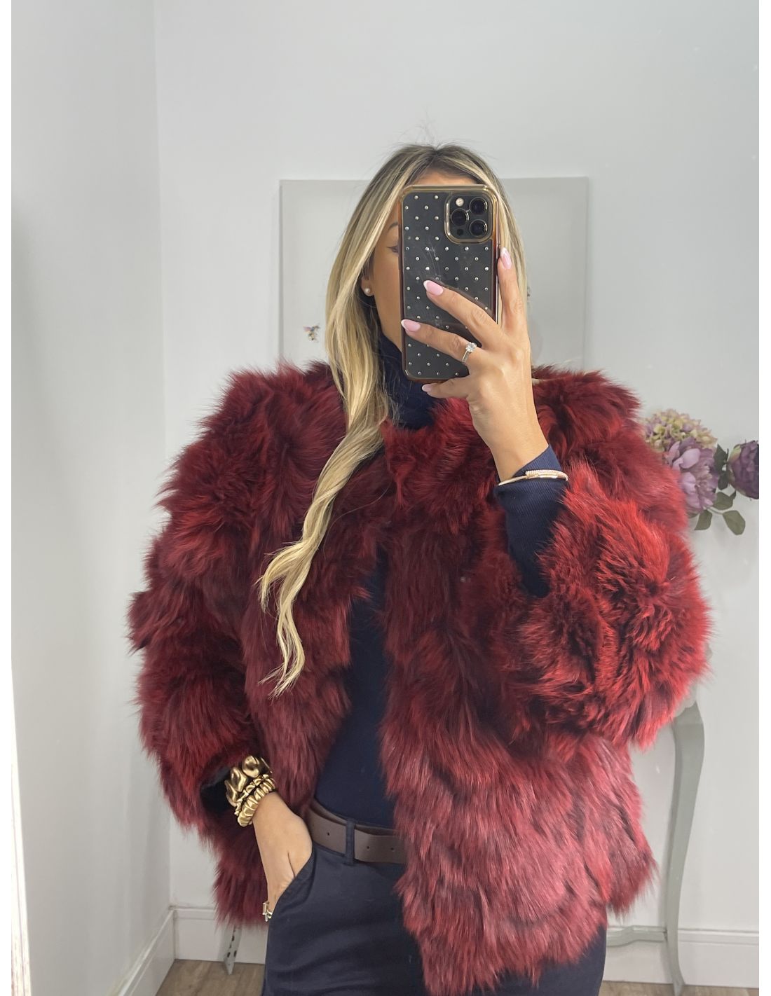 Abrigo de pelo natural de zorro, va forrado. Corte es recto y amplio con cuello a la caja.