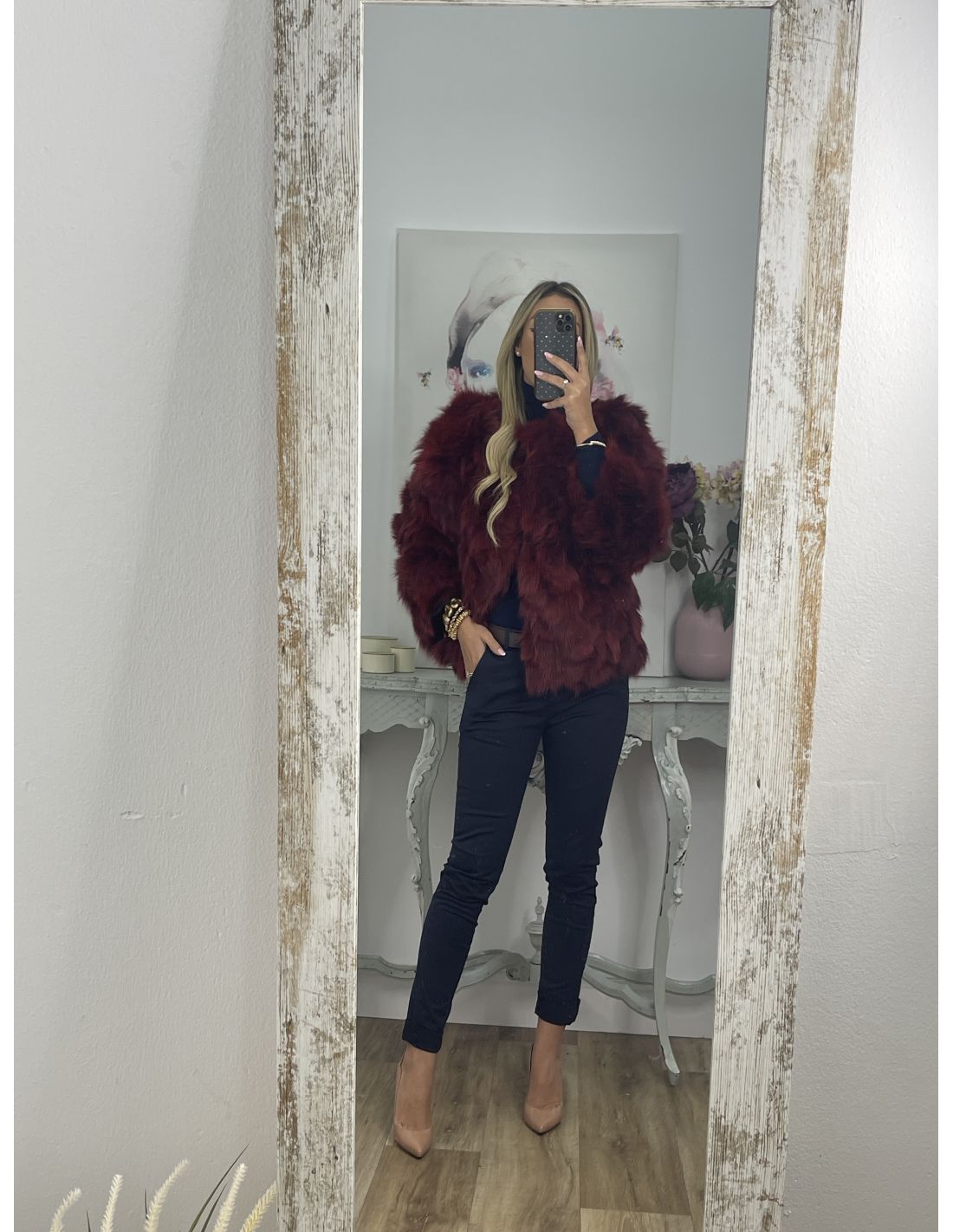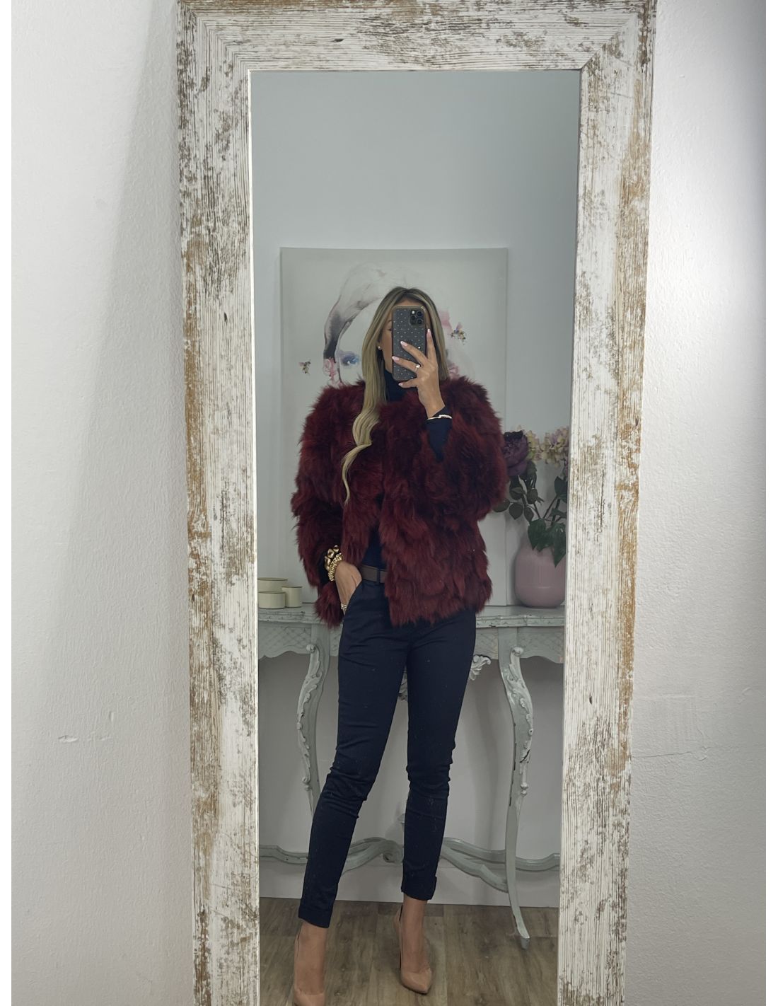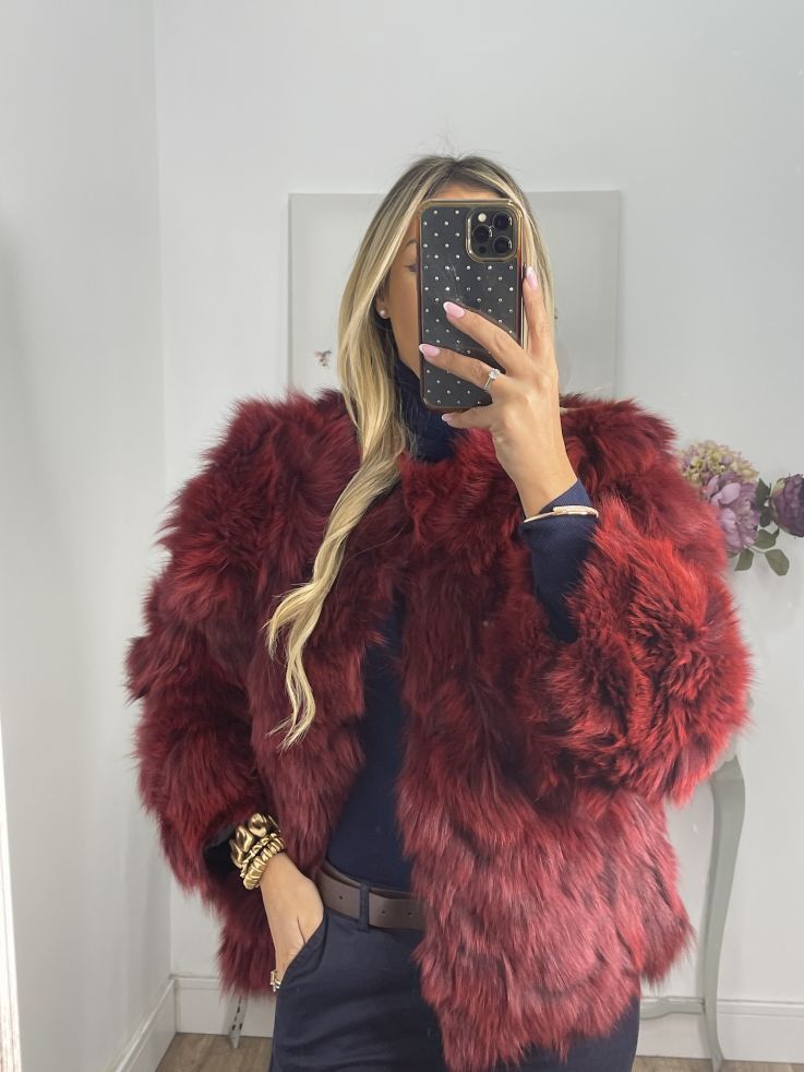 Abrigo de pelo natural de zorro, va forrado. Corte es recto y amplio con cuello a la caja.