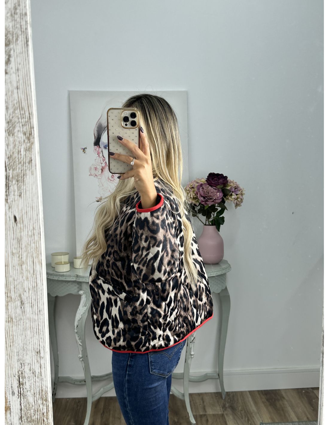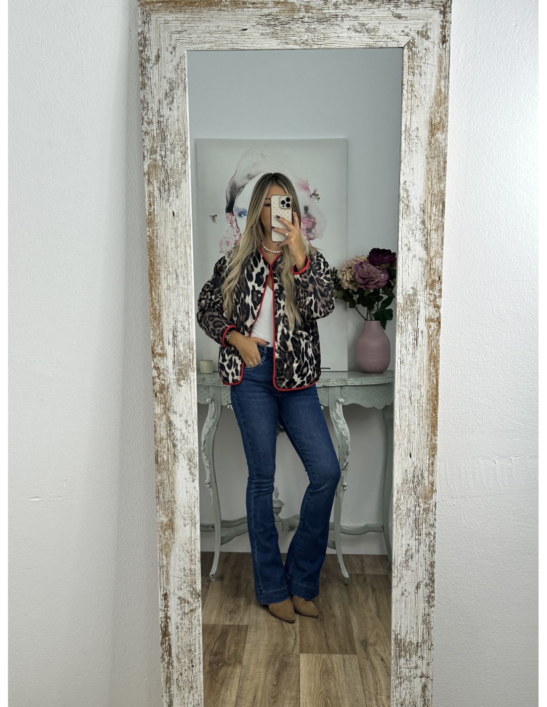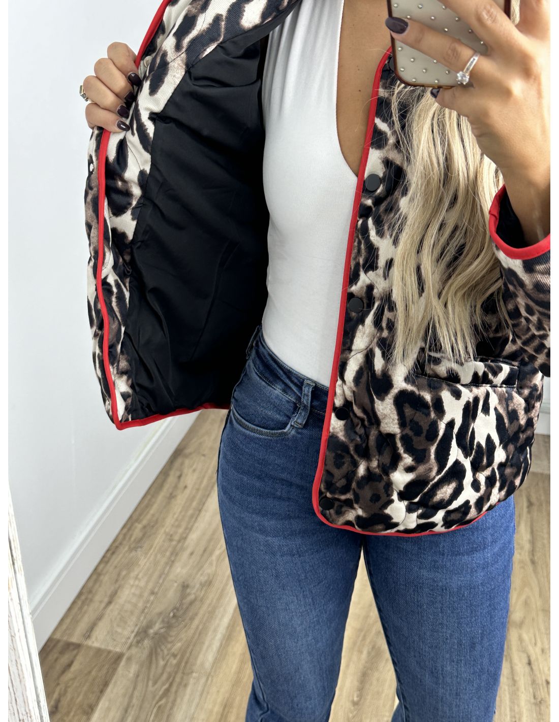 Abrigo acolchado con estampado de animal print. Se cierra con botones de clip. Es de corte recto. Recomendamos la talla habitual. Si estás entre dos tallas y vas a usar jersey grueso coger la talla mayor.