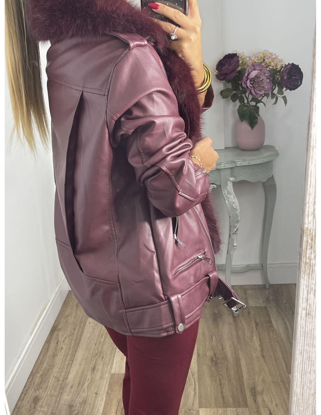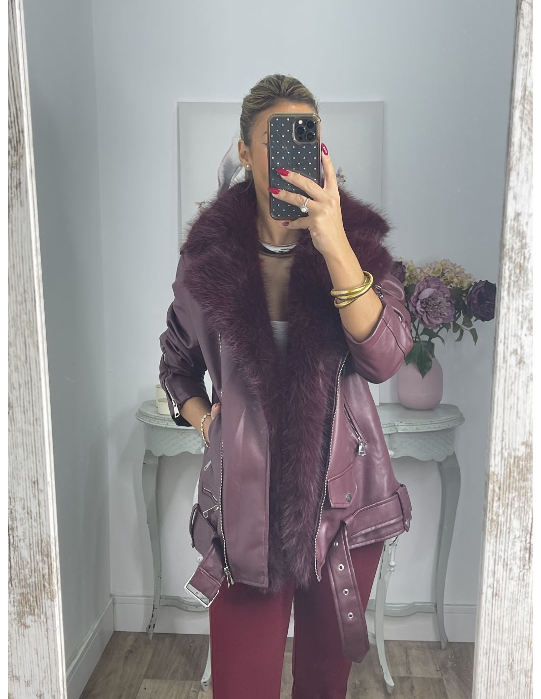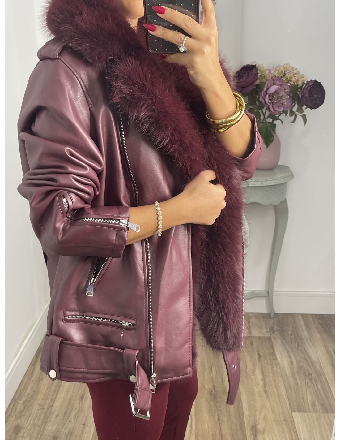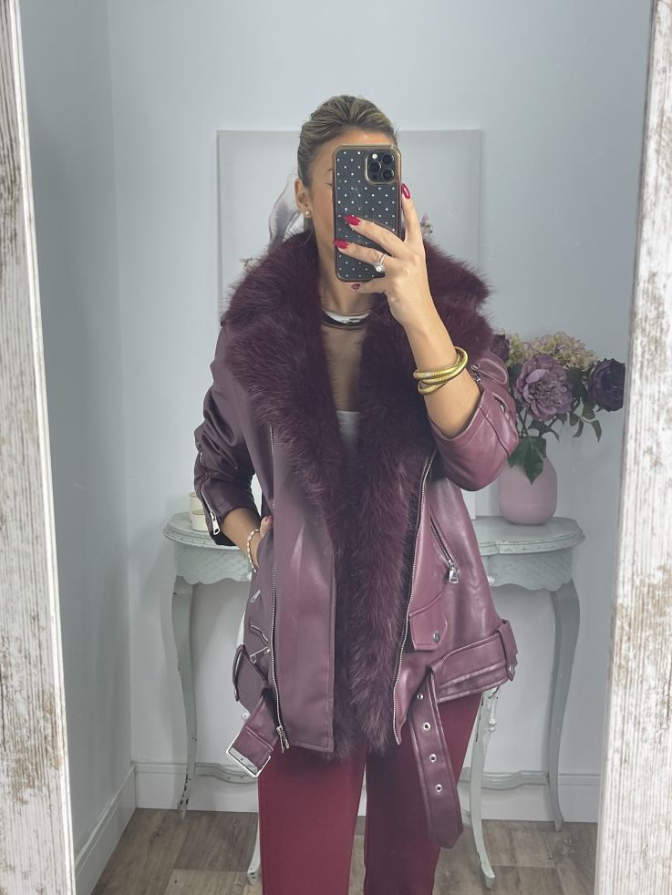 Abrigo de poli piel combinado con pelo sintético, El pelo del cuello se puede quitar. Las cremalleras que llevan son plateadas. El interior del abrigo va forrado de pelo, a excepción de las mangas. Tiene corte oversize.