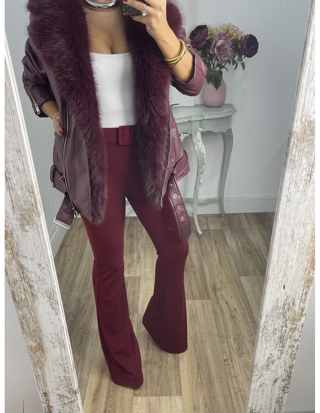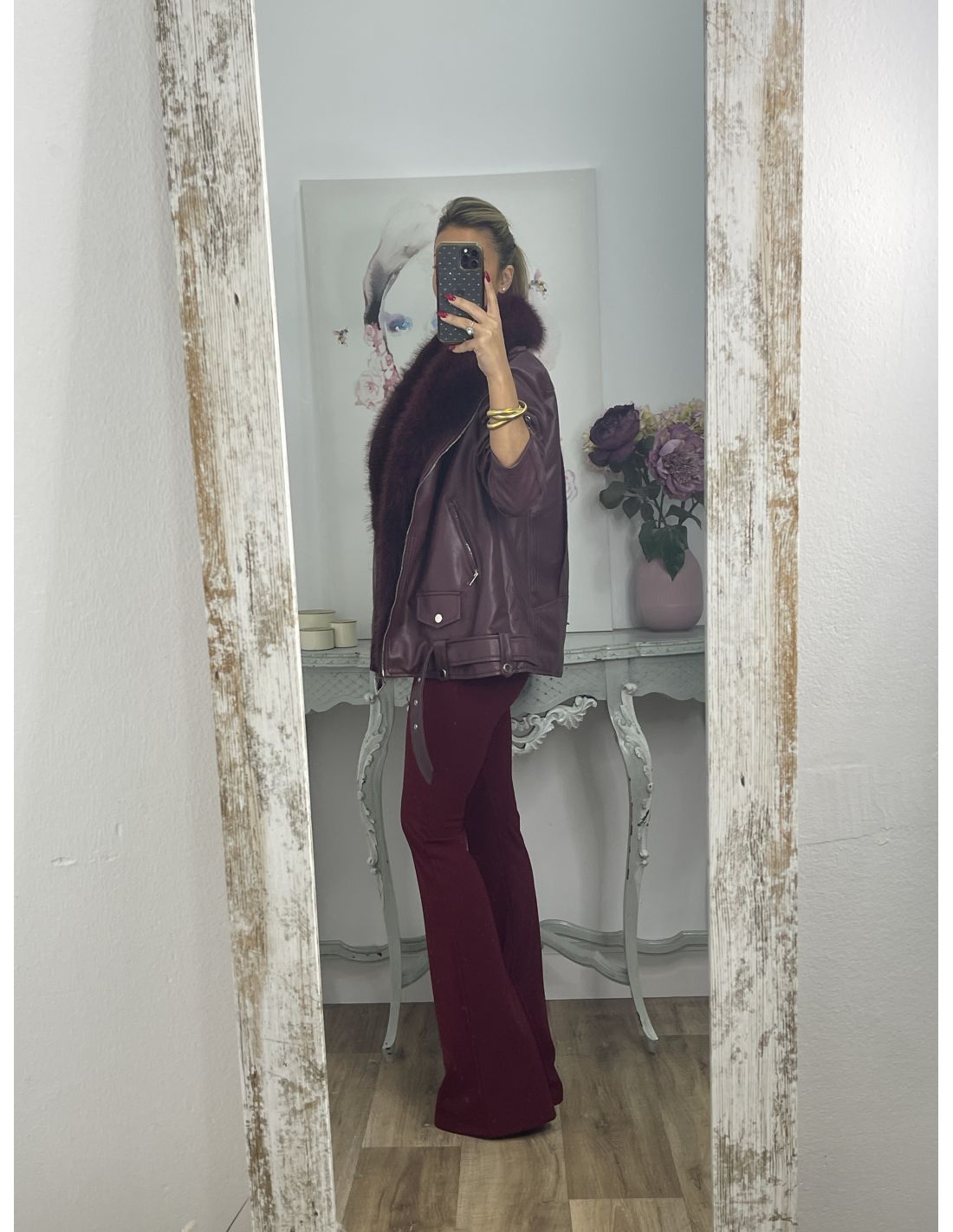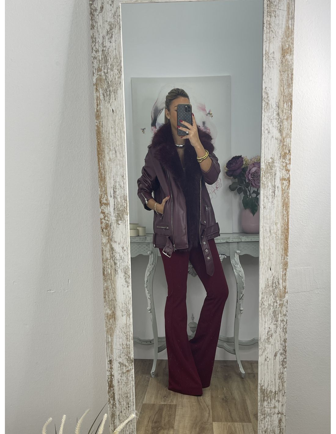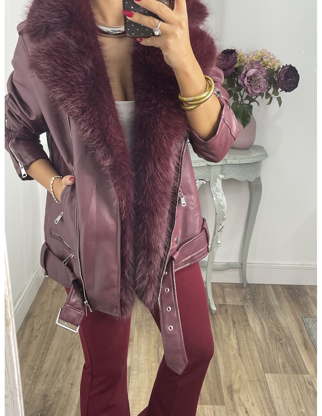Abrigo de poli piel combinado con pelo sintético, El pelo del cuello se puede quitar. Las cremalleras que llevan son plateadas. El interior del abrigo va forrado de pelo, a excepción de las mangas. Tiene corte oversize.