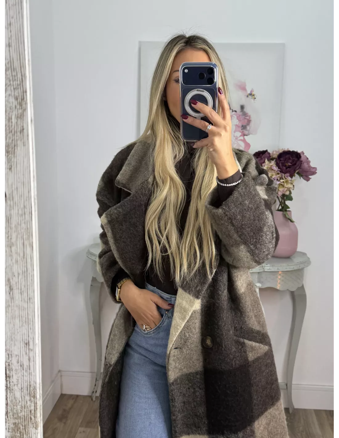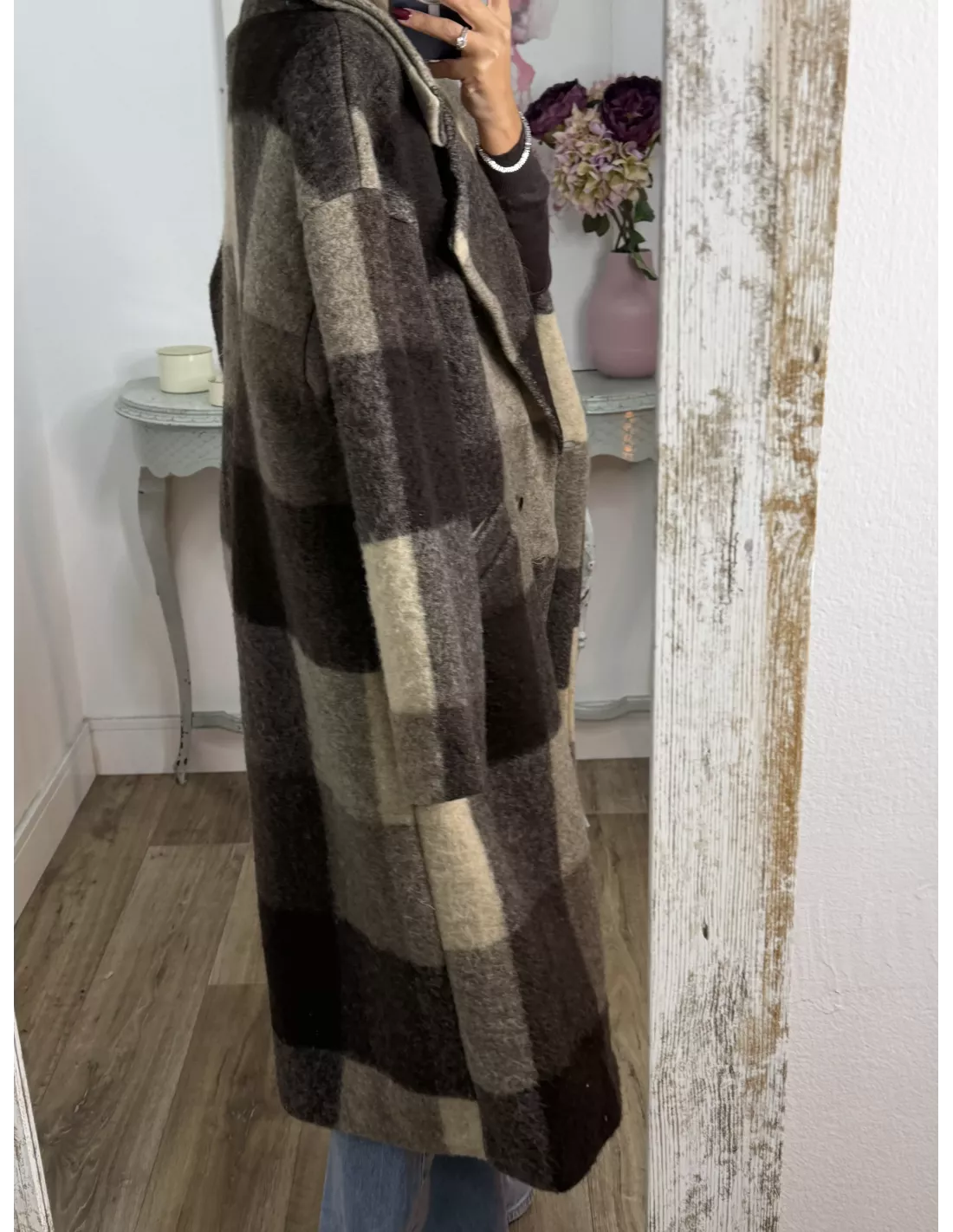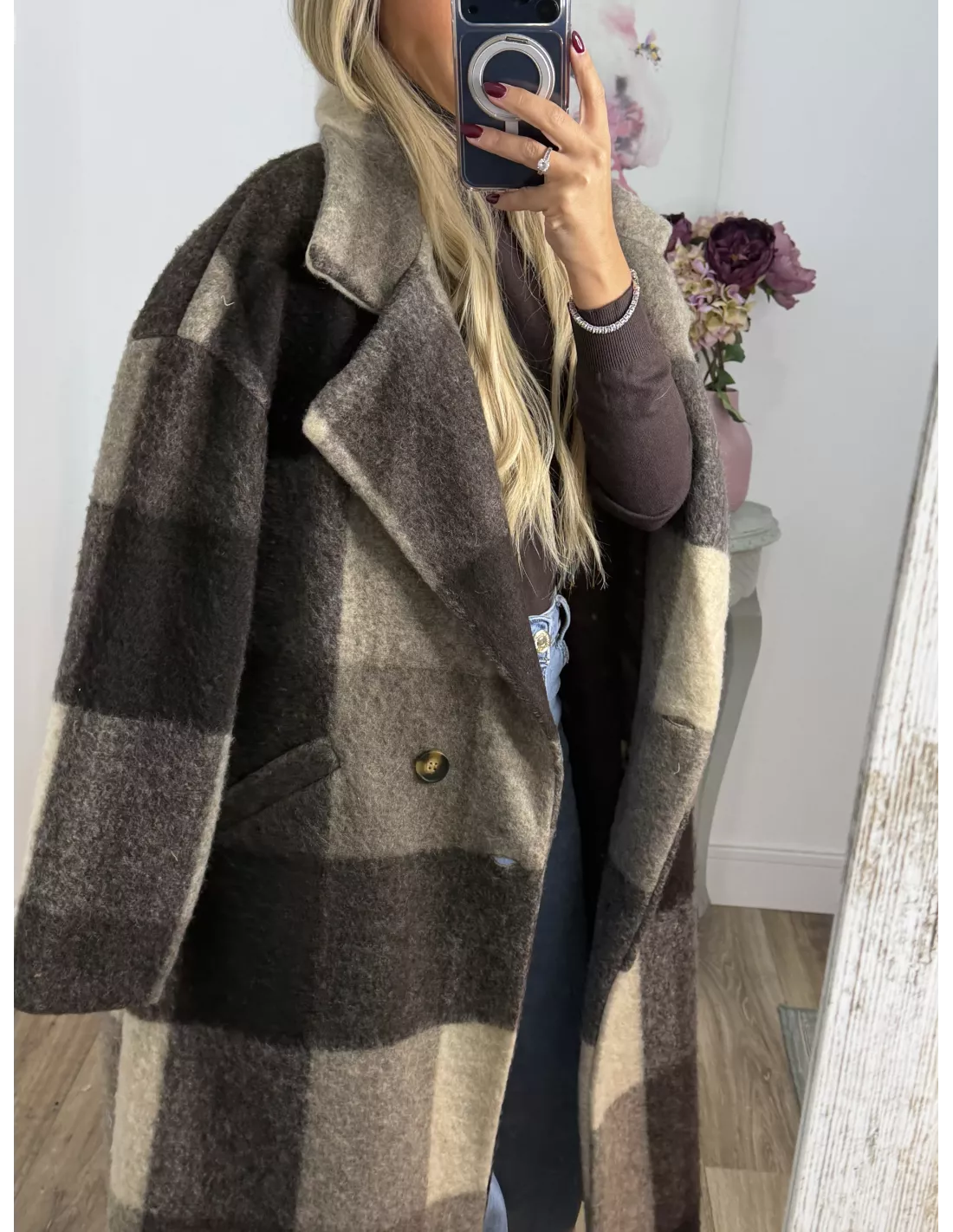 Abrigo de lana, con estampado de cuadros, de corte oversize, va forrado. Tiene bolsillos.