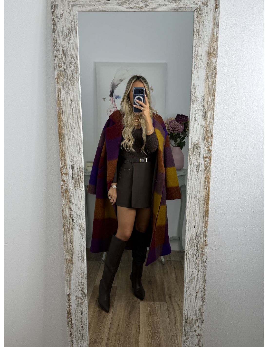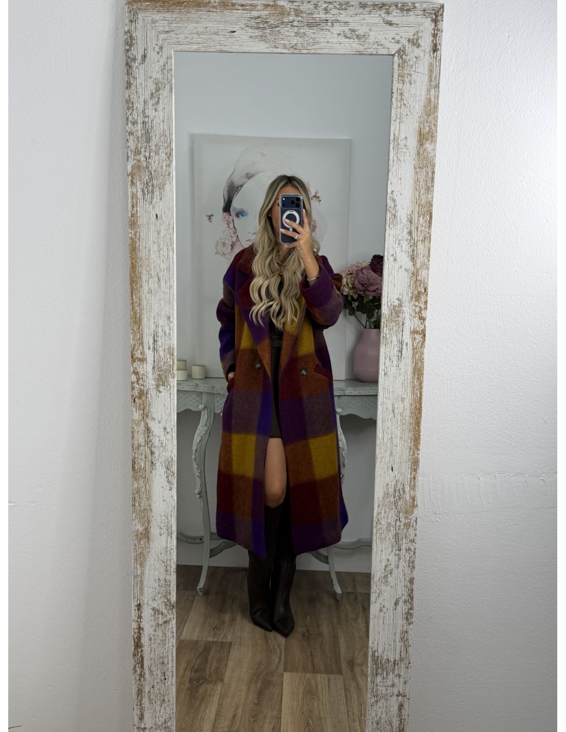 Abrigo de lana, con estampado de cuadros, de corte oversize, va forrado. Tiene bolsillos.