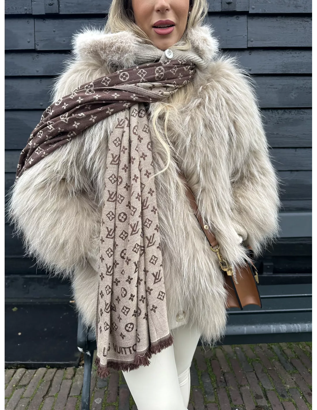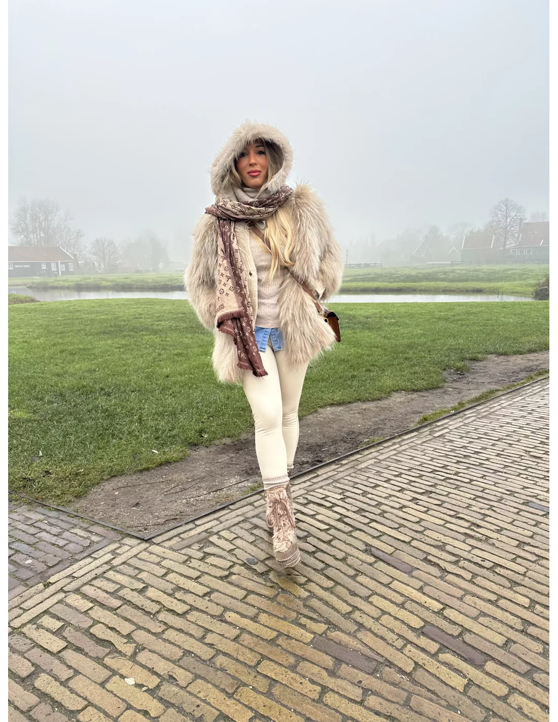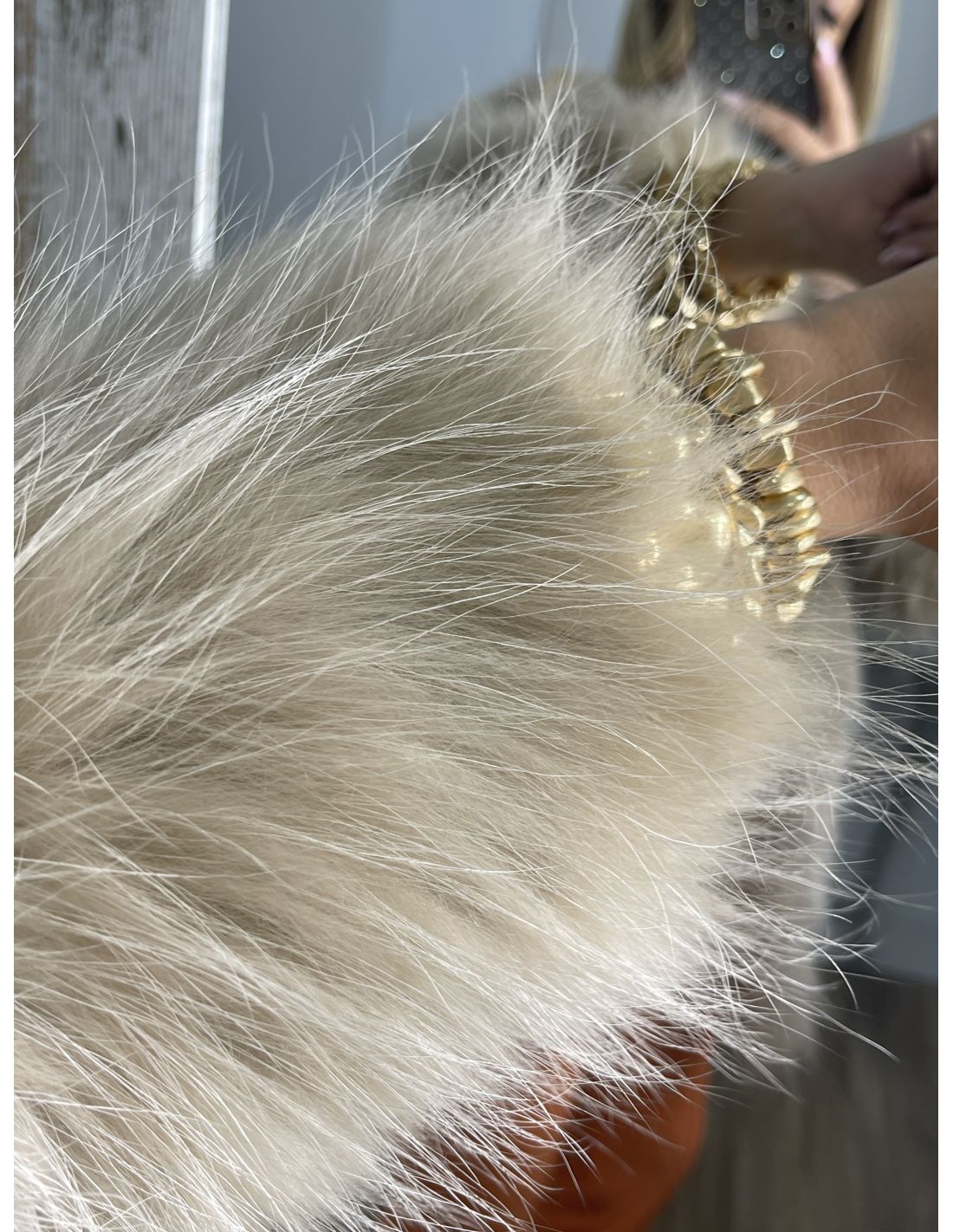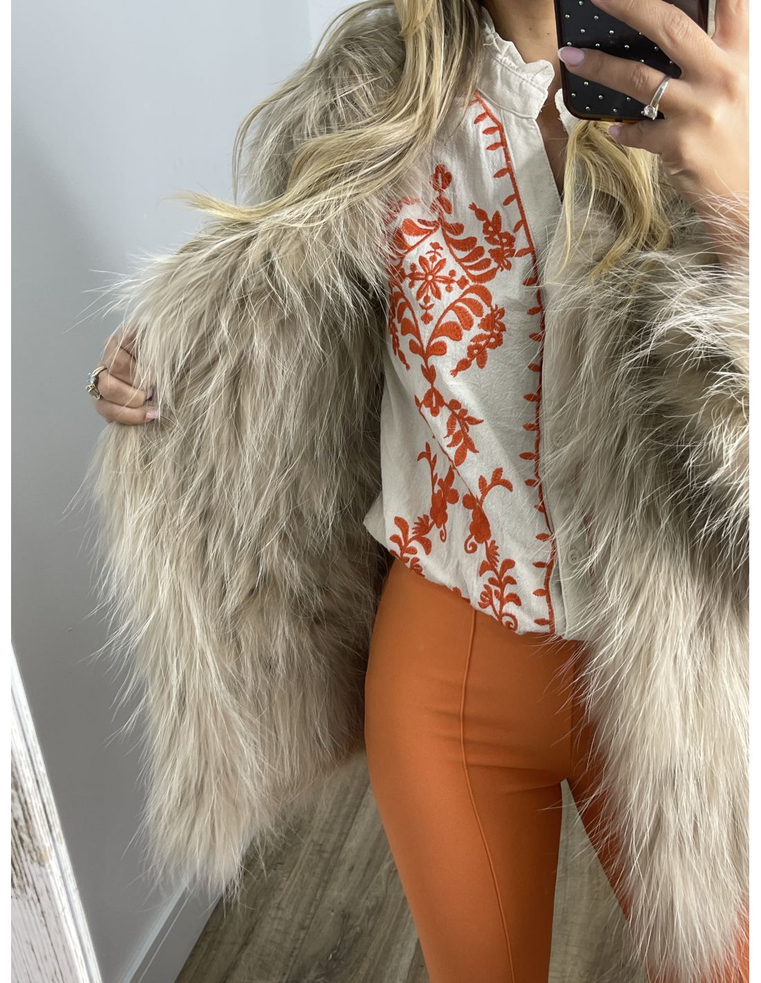 Abrigo de pelo natural, que se cierra con enganches el Cortes recto. No va forrado.