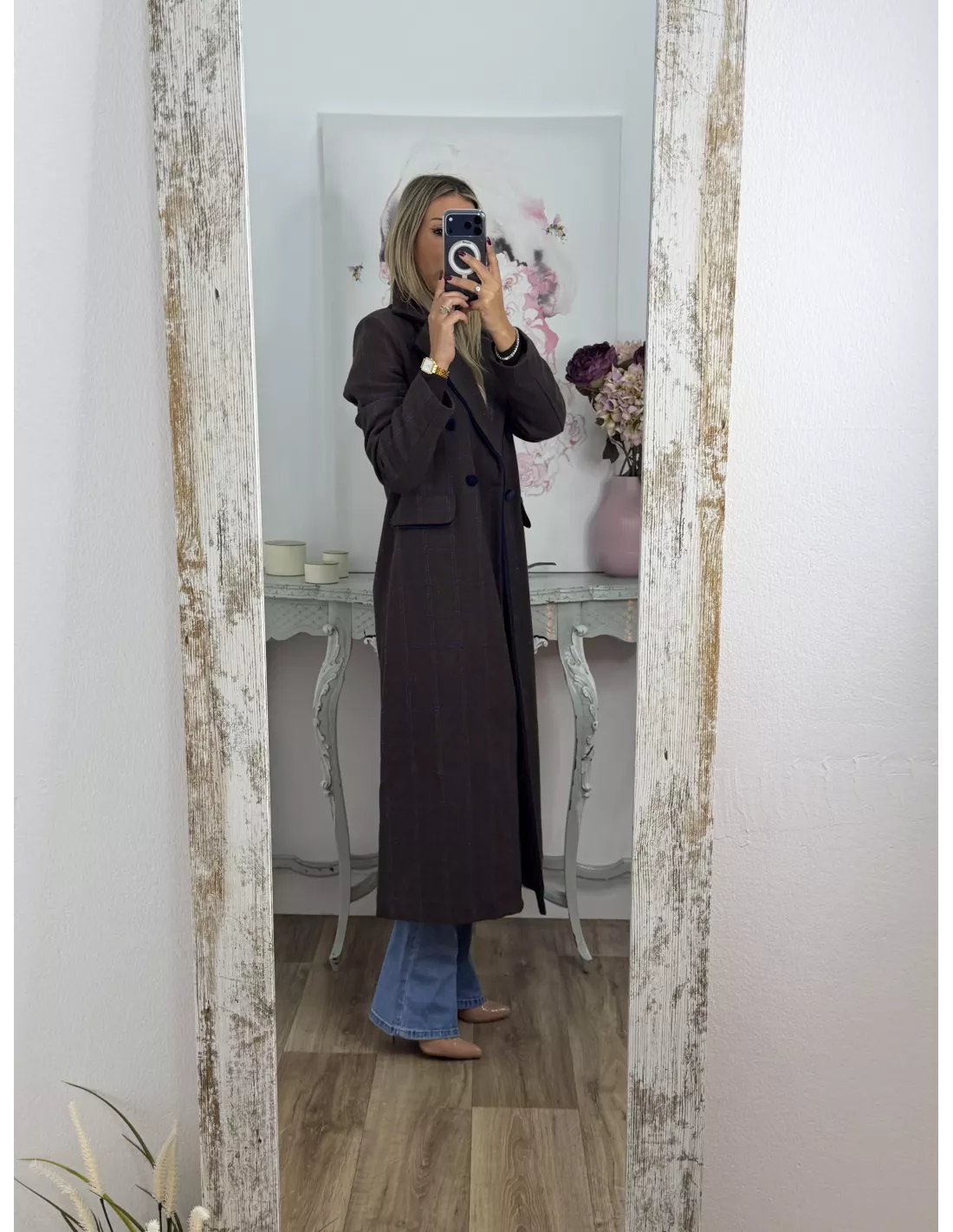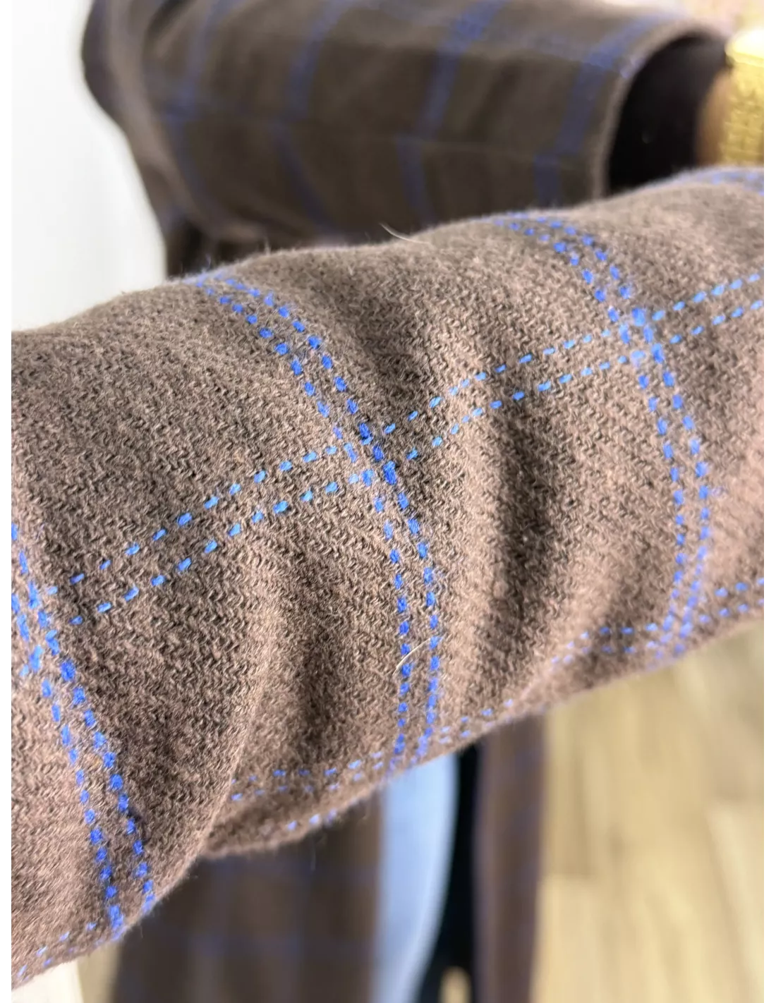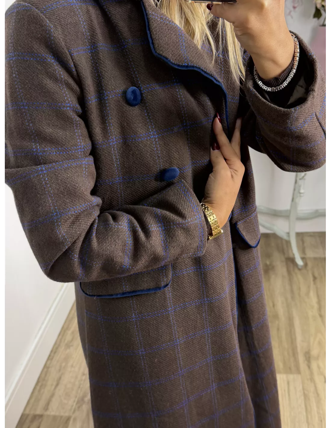 Abrigo de tejido tipo paño, el cortes es montado. Los botones donde terciopelo y el ribete que lleva en la zona de la solapa y las tapetas del bolsillo. No tiene bolsillos. Va forrado y tiene hombreras.