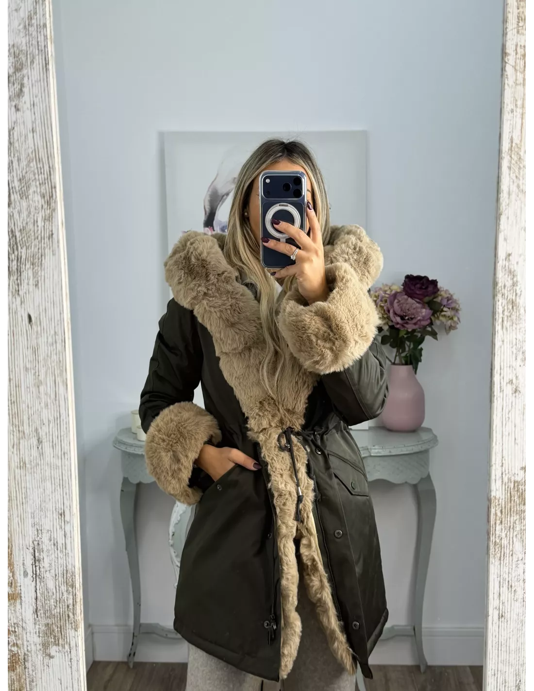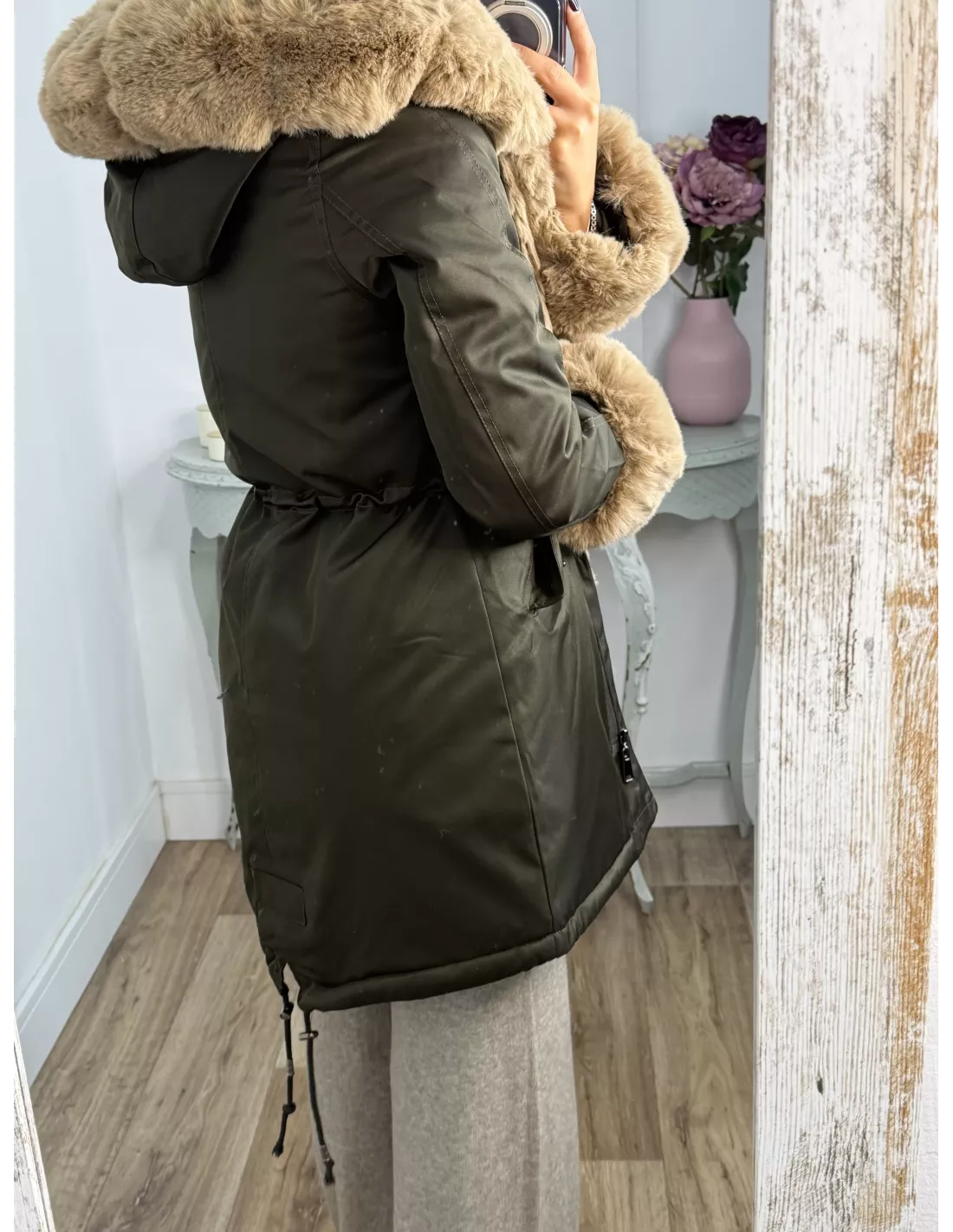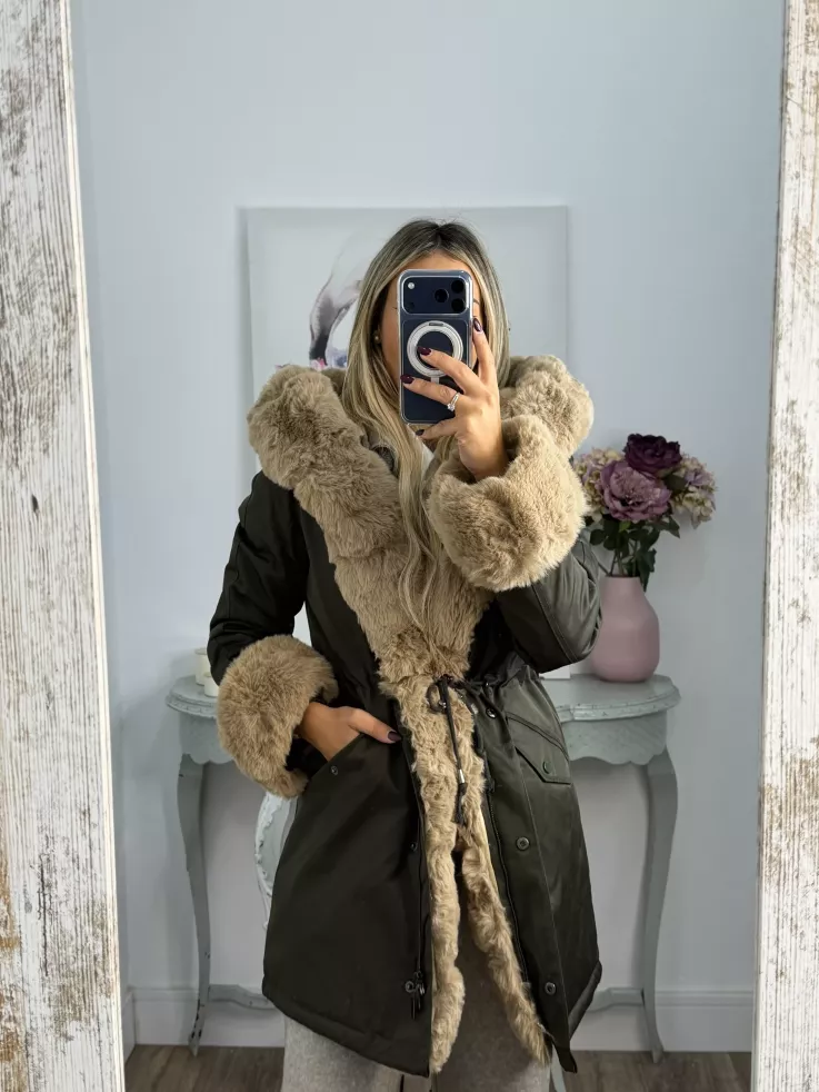 Abrigo Parka Verde con pelo camel