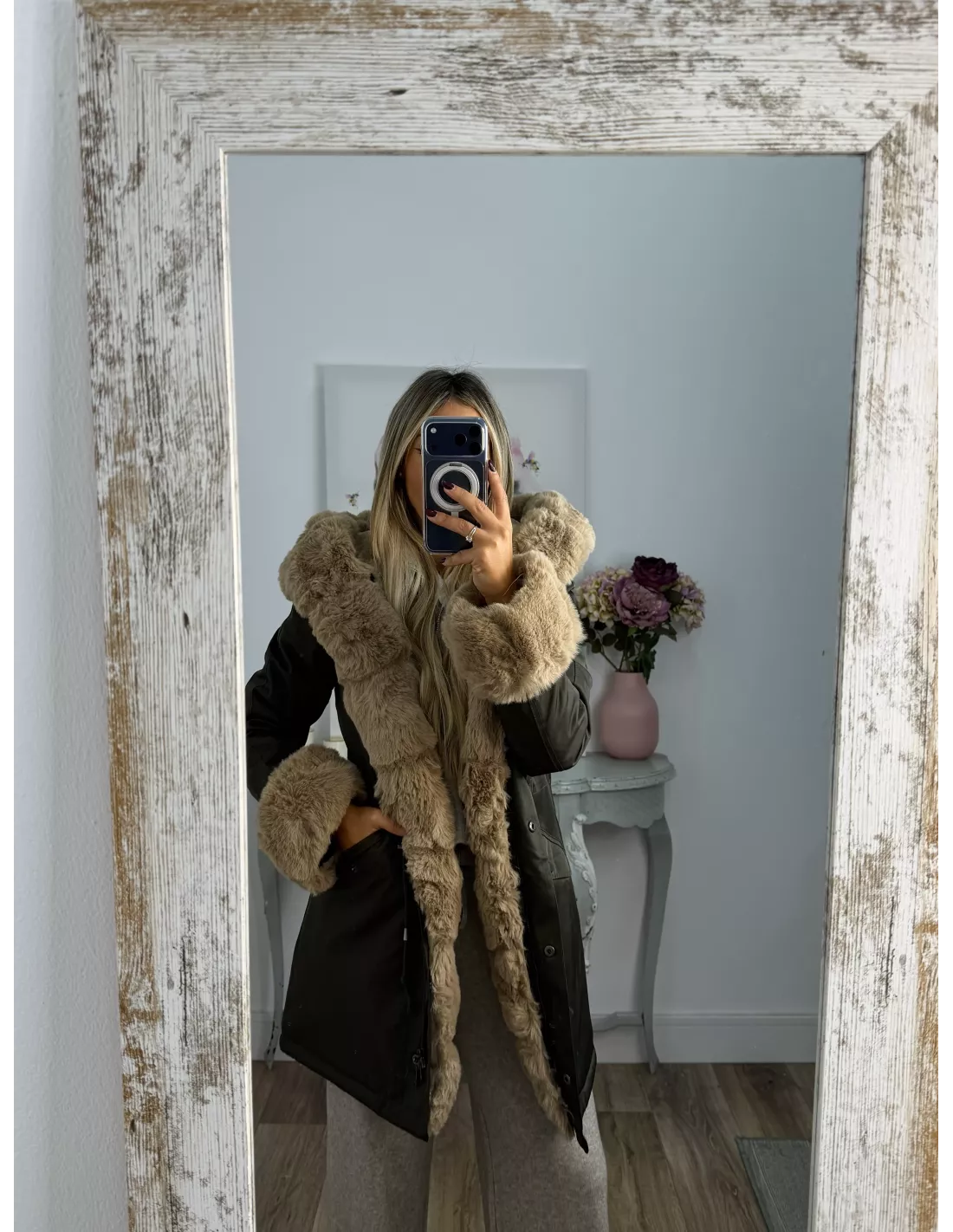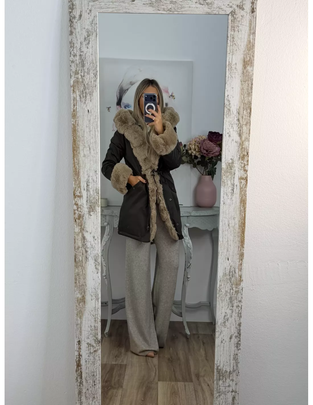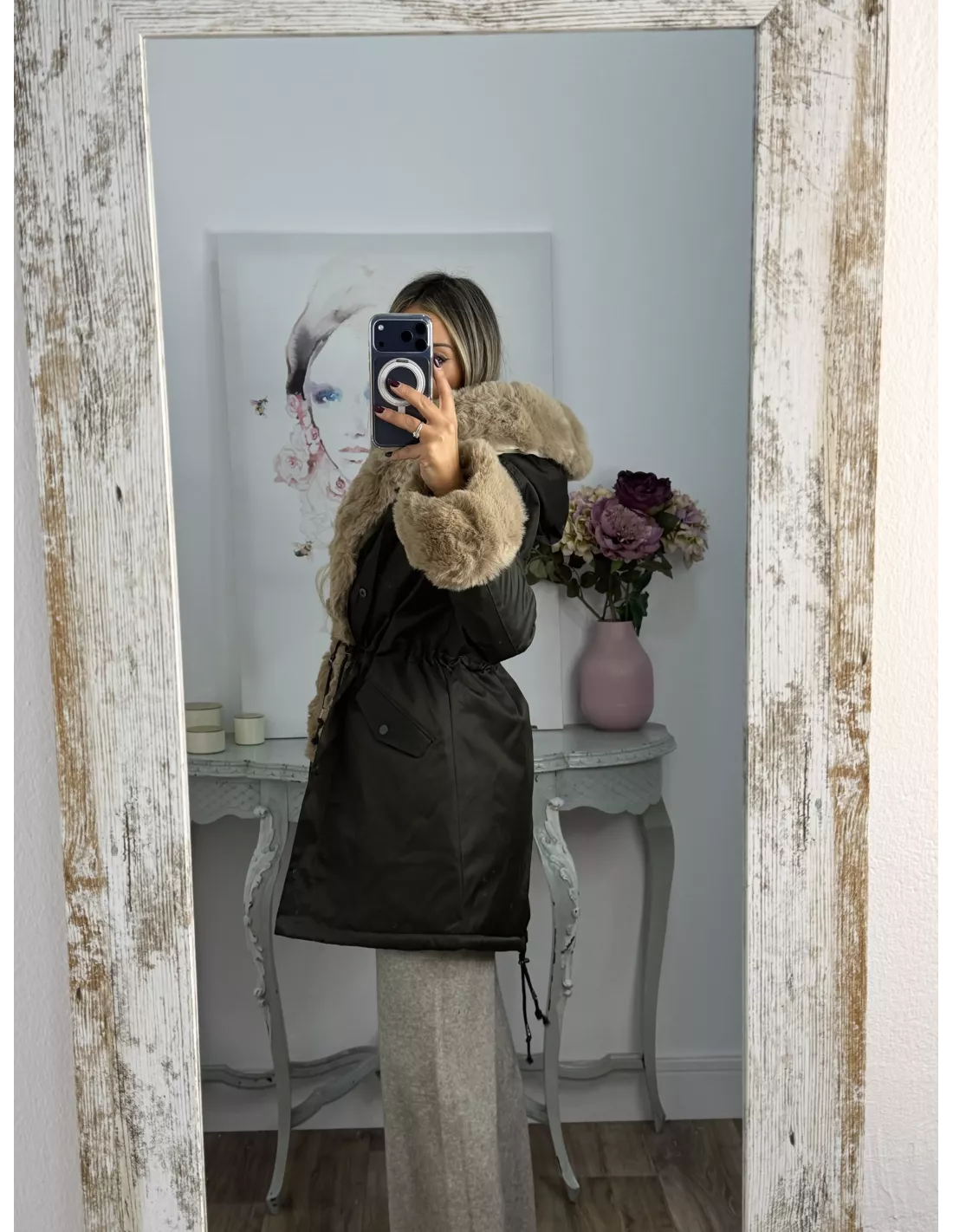 Abrigo Parka Verde con pelo camel