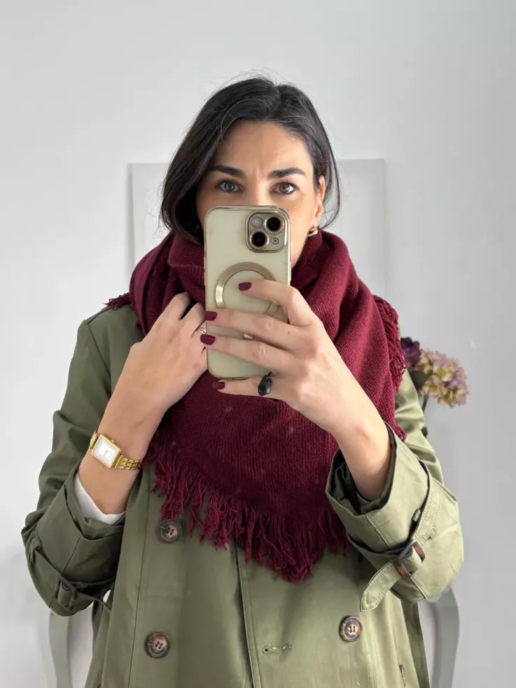 Medidas: largo incluyendo los flecos 82cm, ancho 178cm hasta el pico.