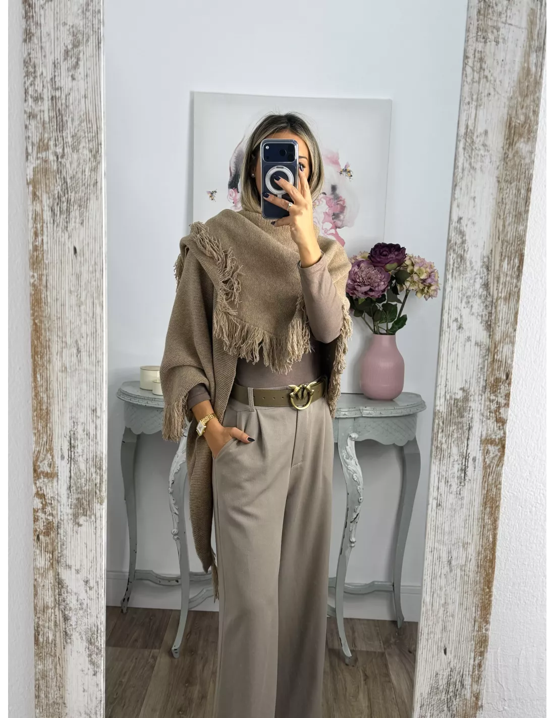 Chal punto flecos camel