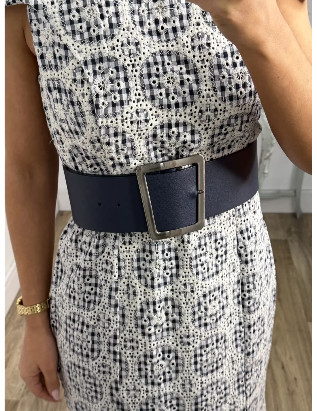 Cinturón ancho azul marino efecto piel