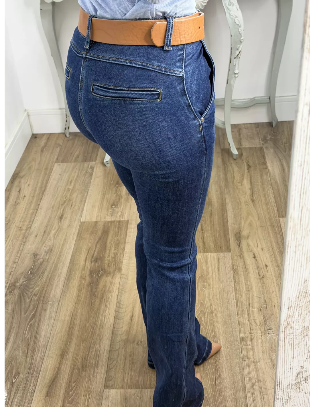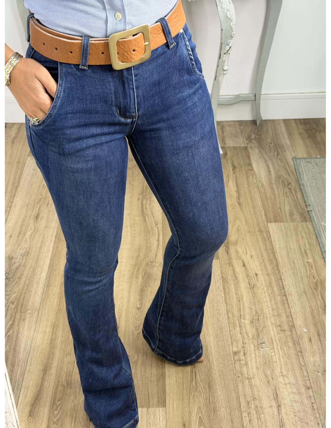 Cinturón 100% de piel con hebilla dorada.