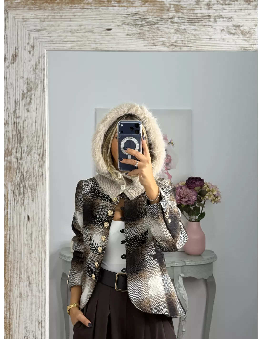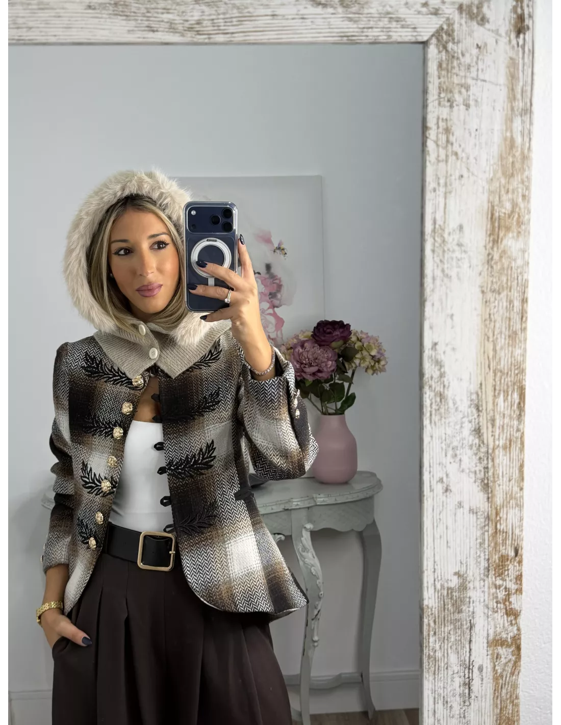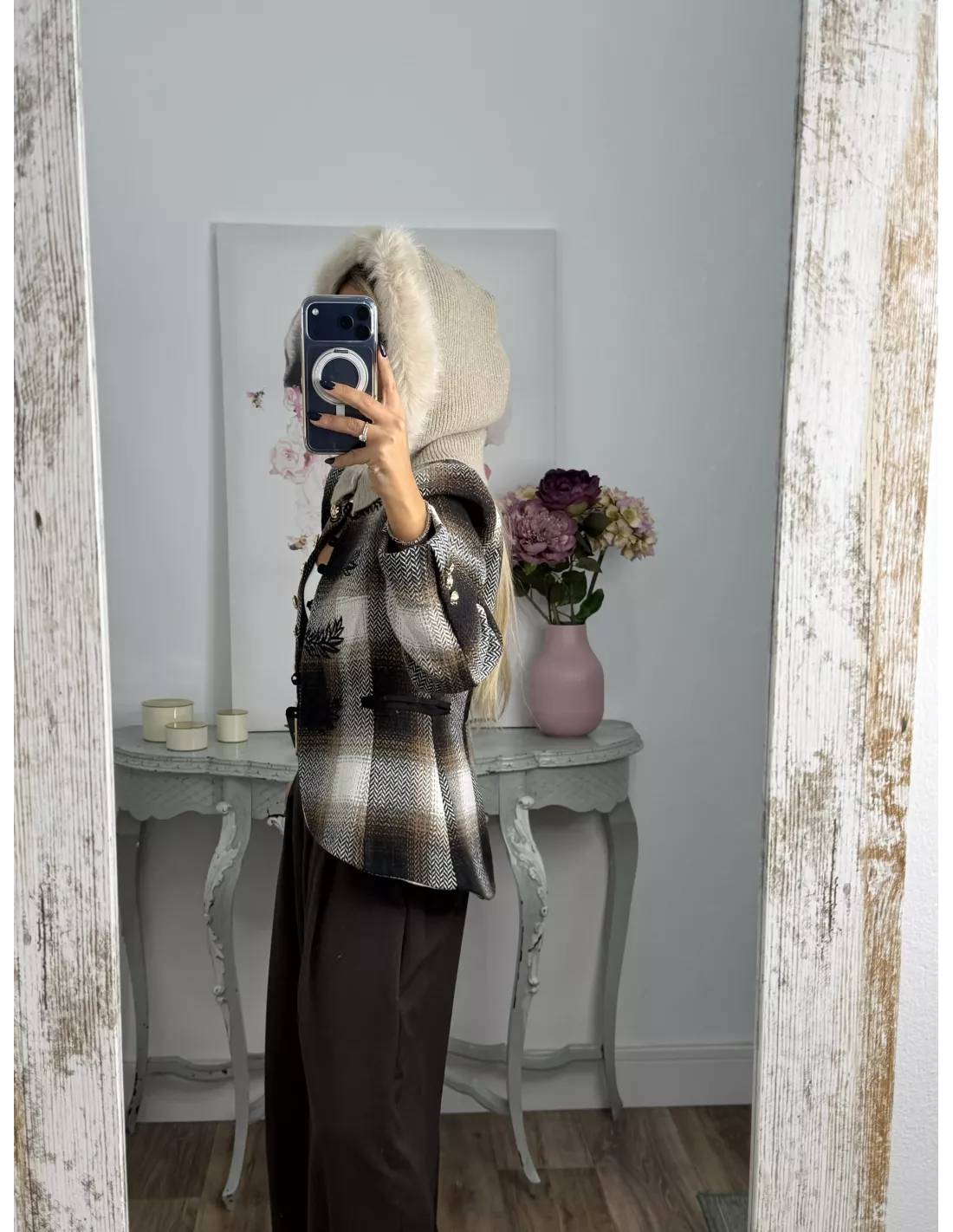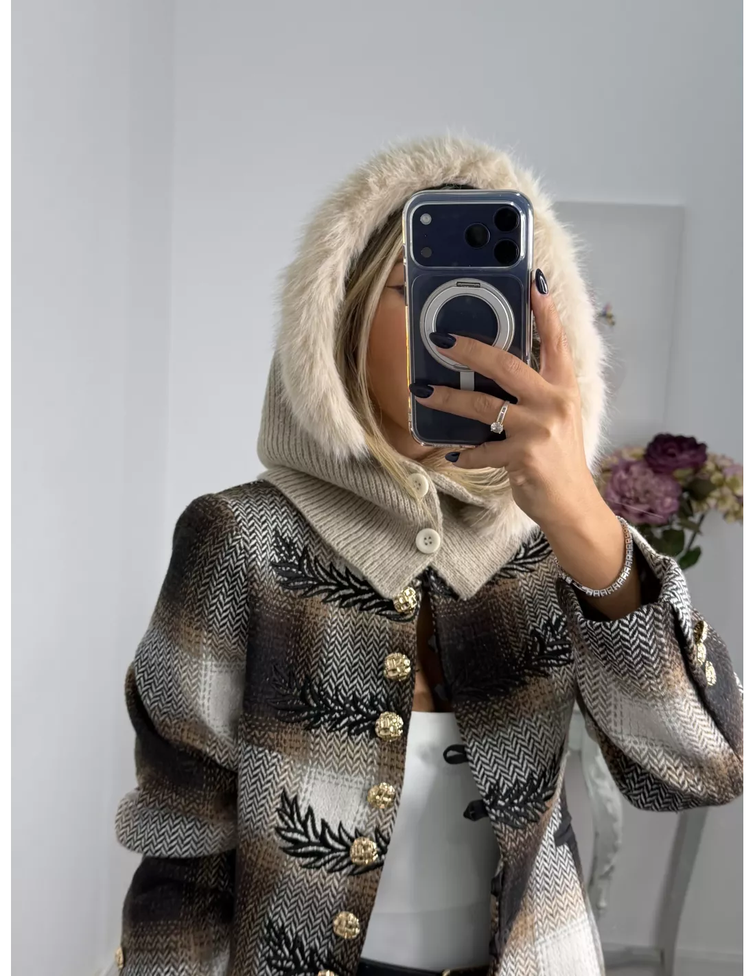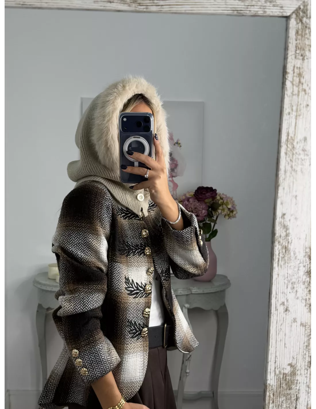 Balaclava de punto con pelo sintético. Tiene dos botones.