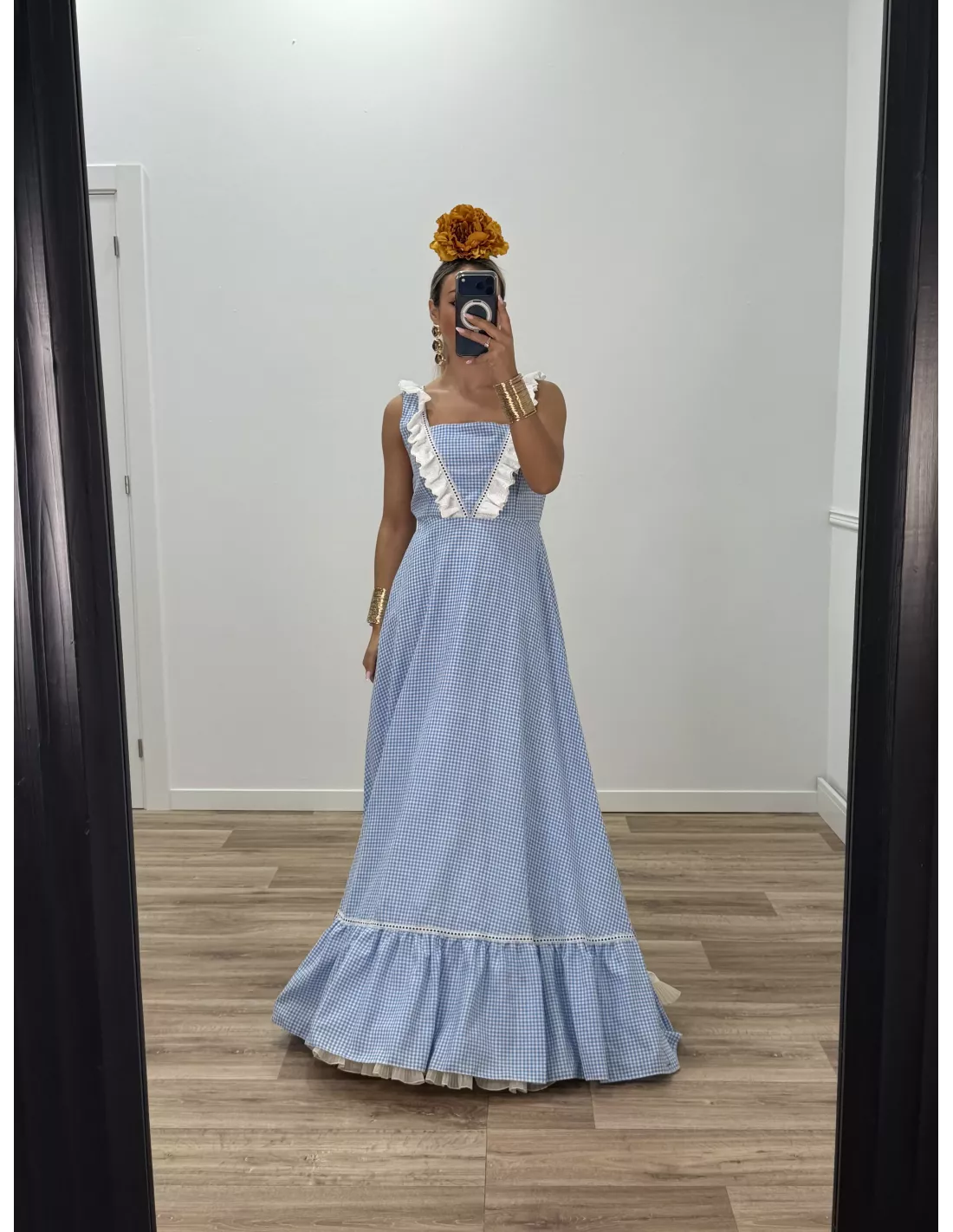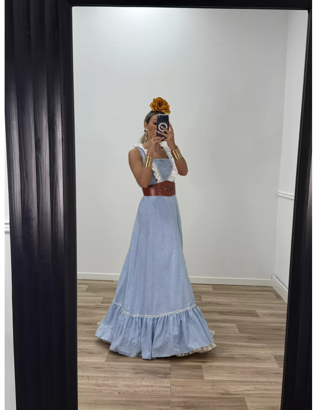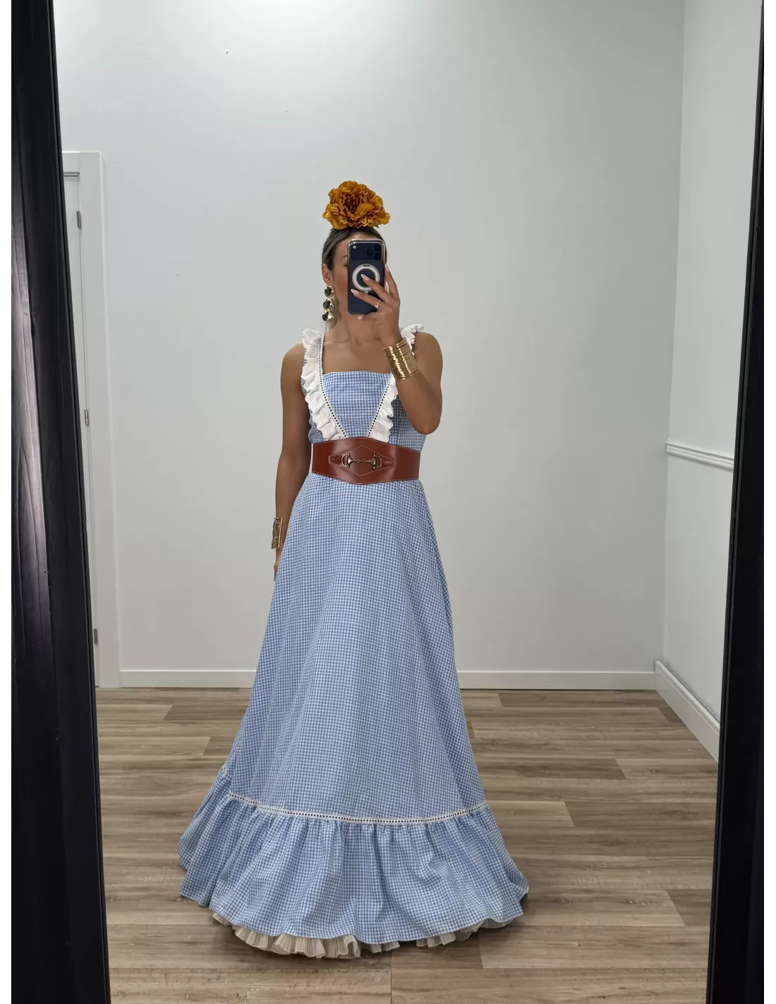 Bata de cuadros vichy con corte en la cintura. NO INCLUYE LA ENAGUA, SE VENDE POR SEPARADO.