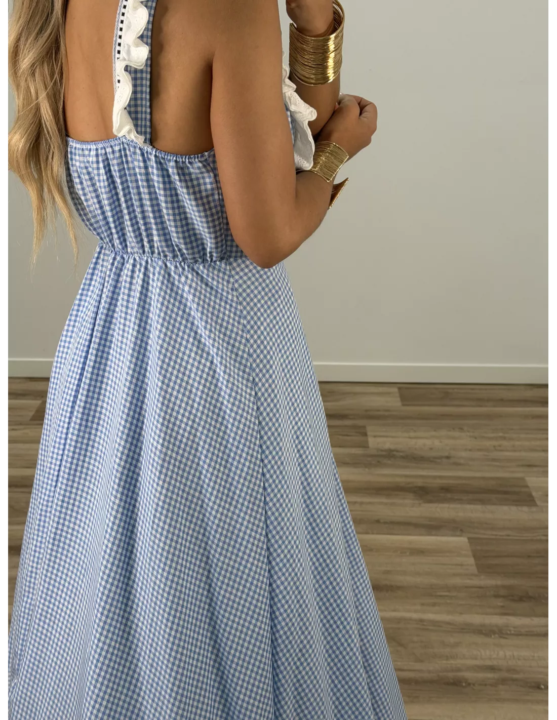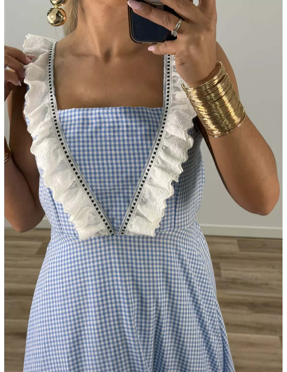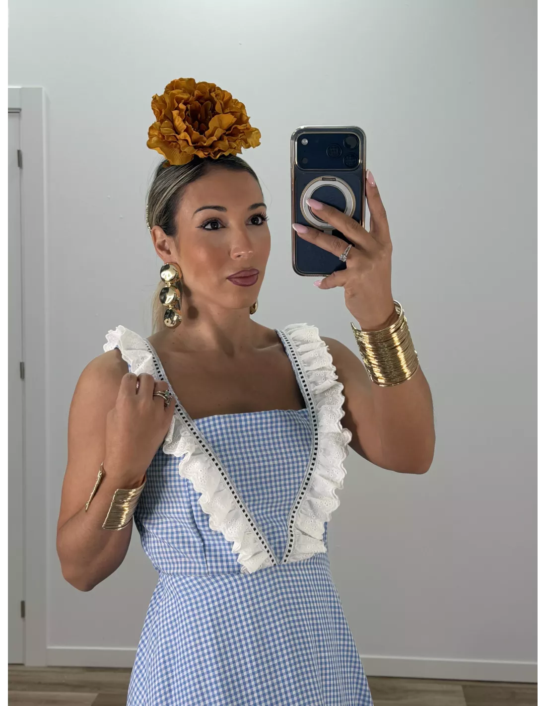 Bata de cuadros vichy con corte en la cintura. NO INCLUYE LA ENAGUA, SE VENDE POR SEPARADO.