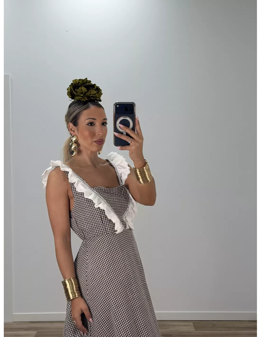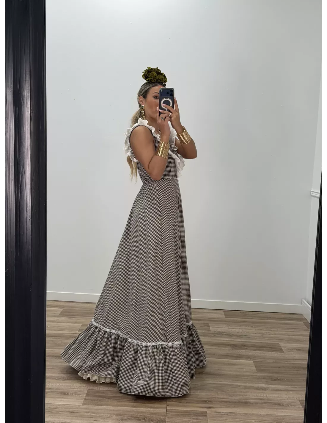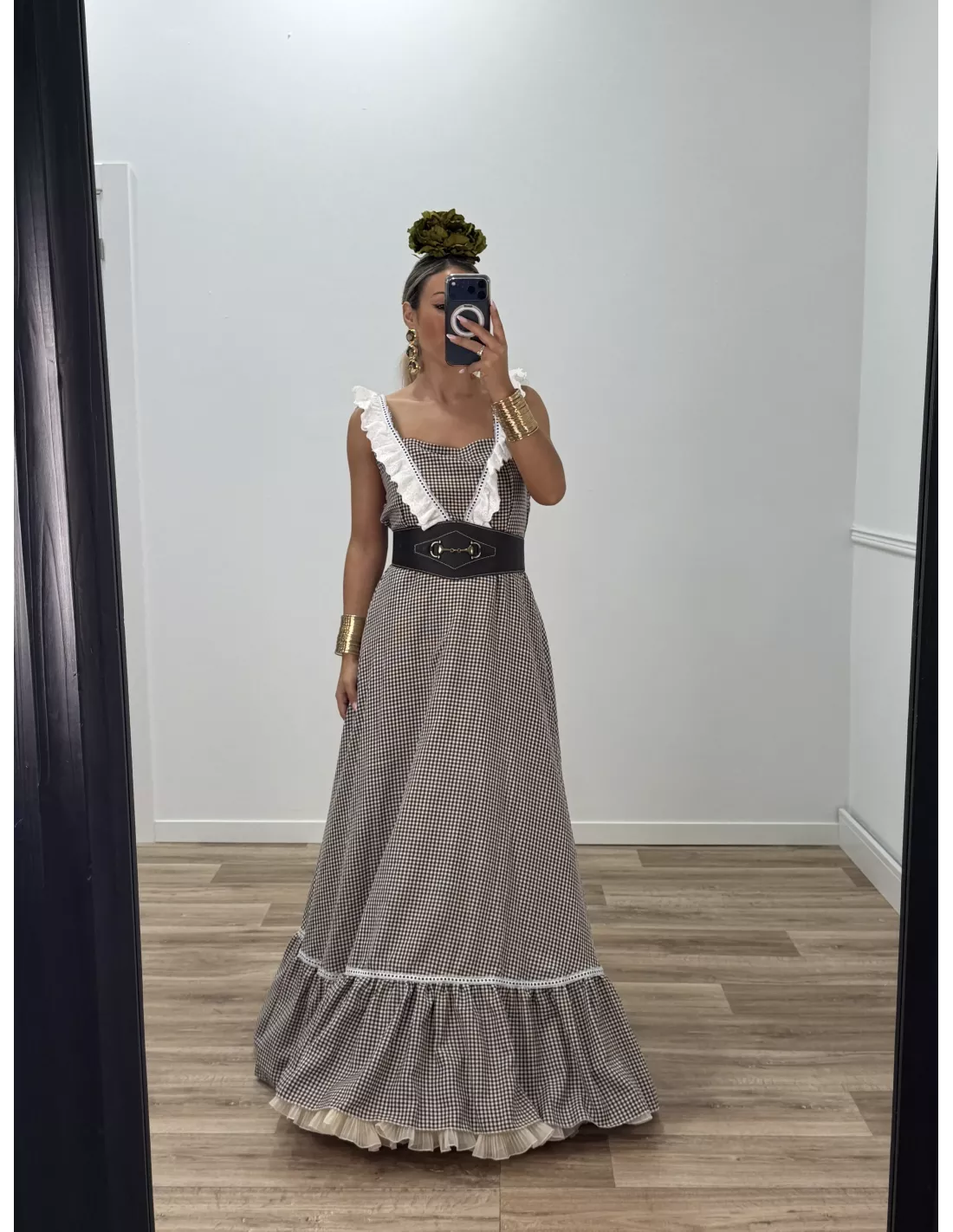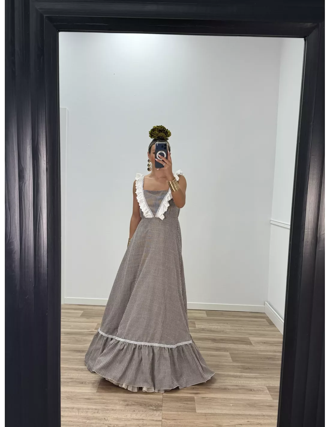 Bata de cuadros vichy con corte en la cintura. NO INCLUYE LA ENAGUA, SE VENDE POR SEPARADO.