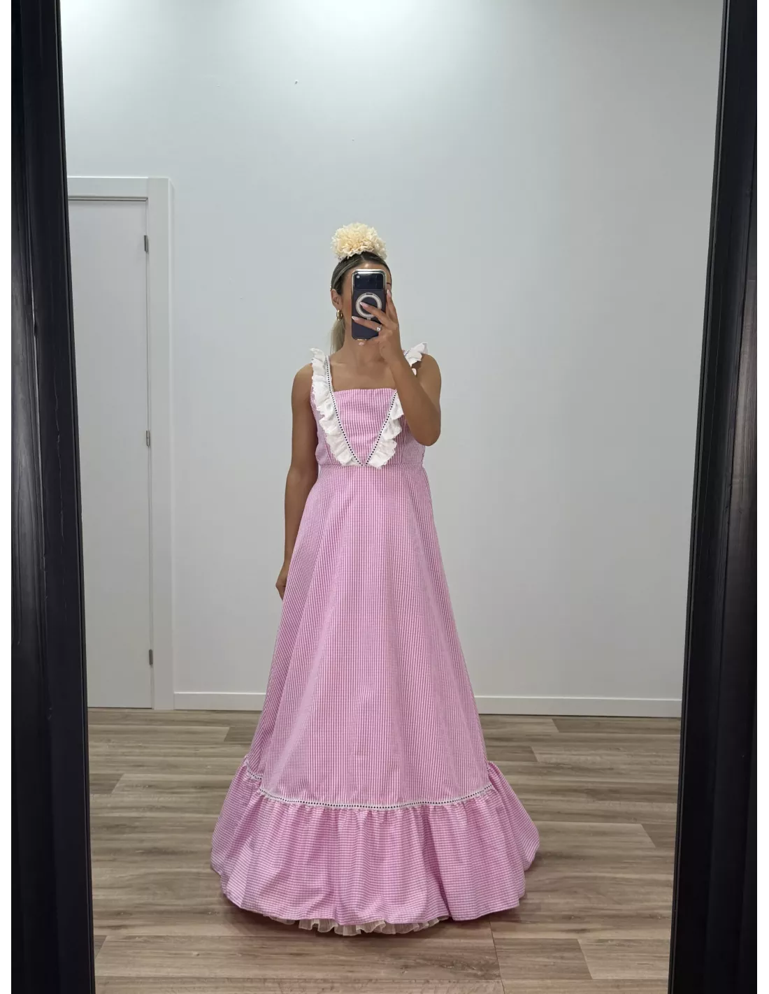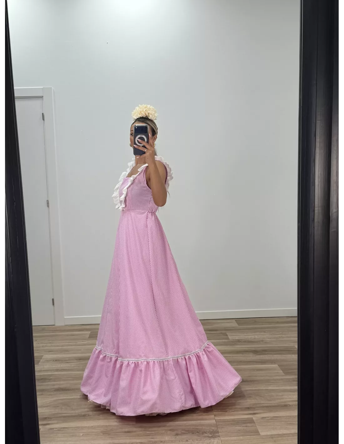 Bata de cuadros vichy con corte en la cintura. NO INCLUYE LA ENAGUA, SE VENDE POR SEPARADO.