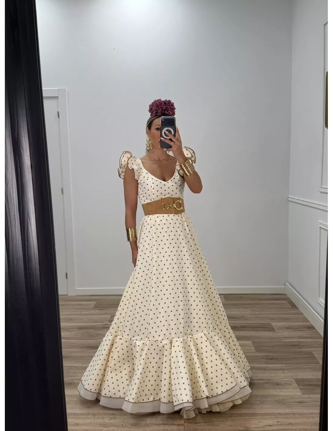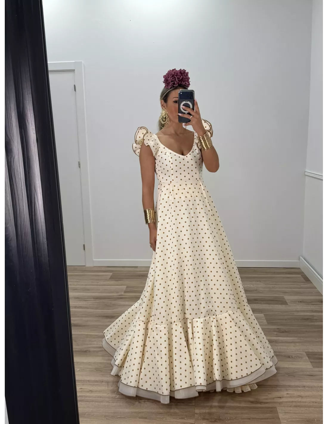 Bata que se cierra con cremallera en la zona de la espalda y lleva cordoncillo para ajustarla. NO INCLUYE LA ENAGUA, SE VENDE POR SEPARADO. Tiene para sacarle hasta dos tallas más. Es ajustado de la sisa.
