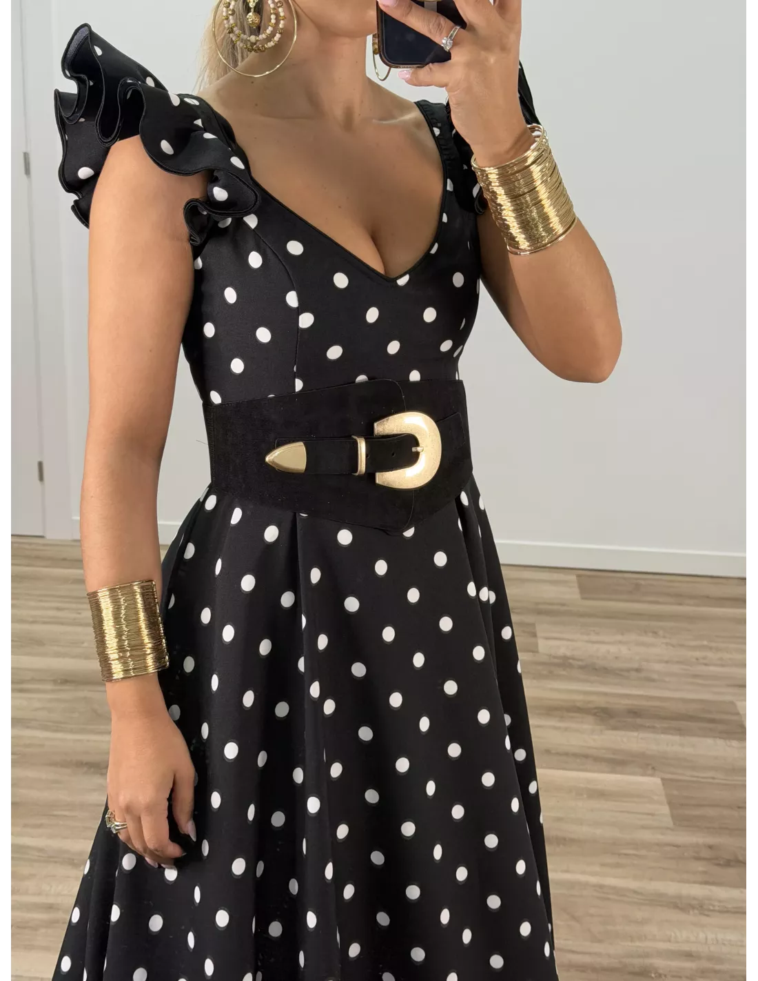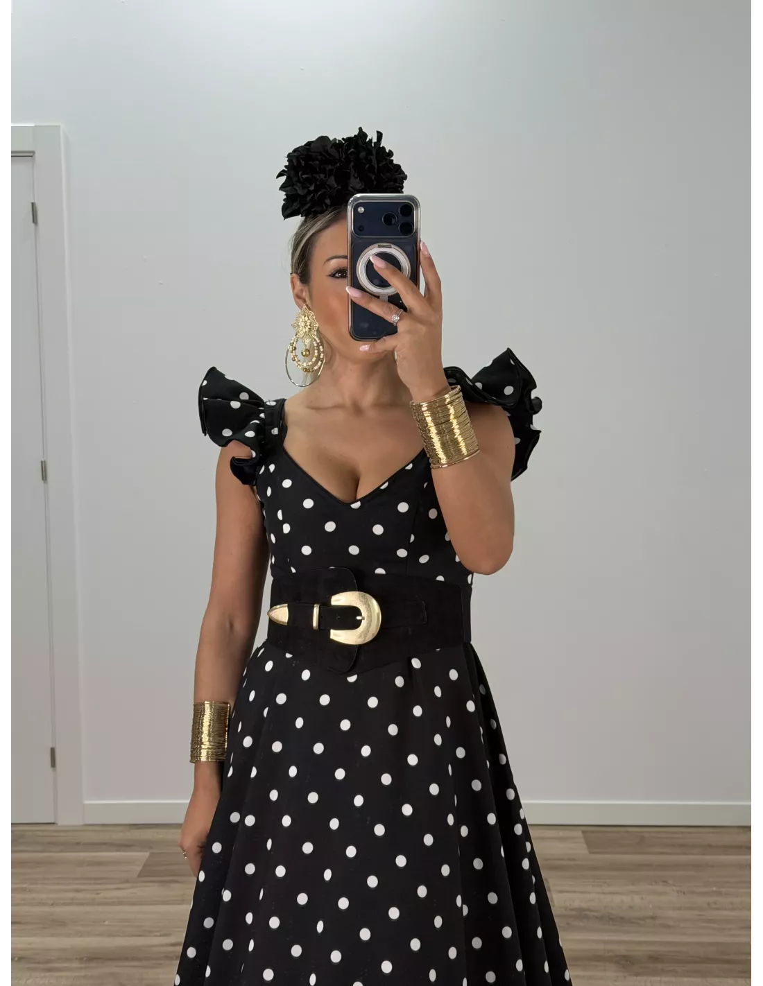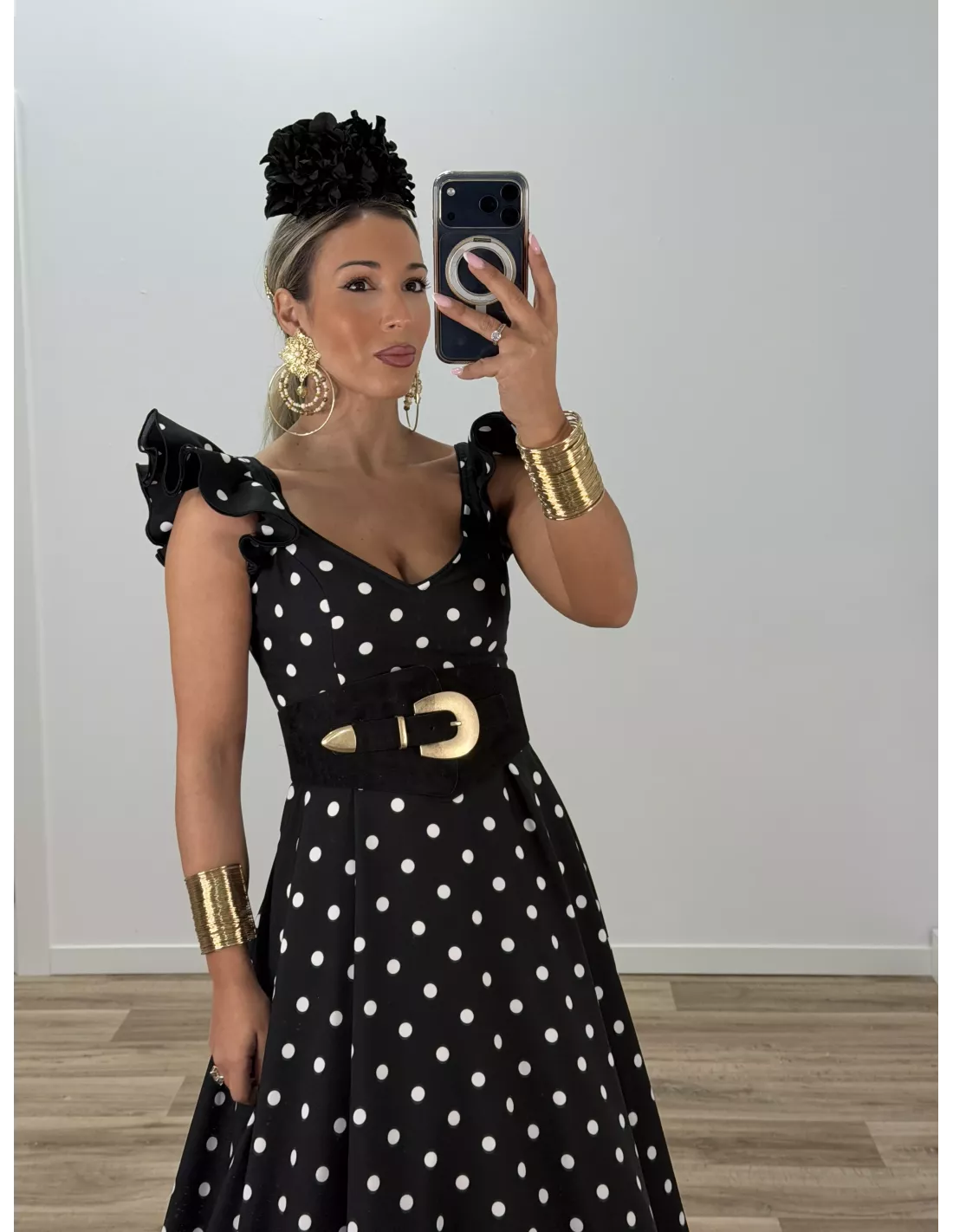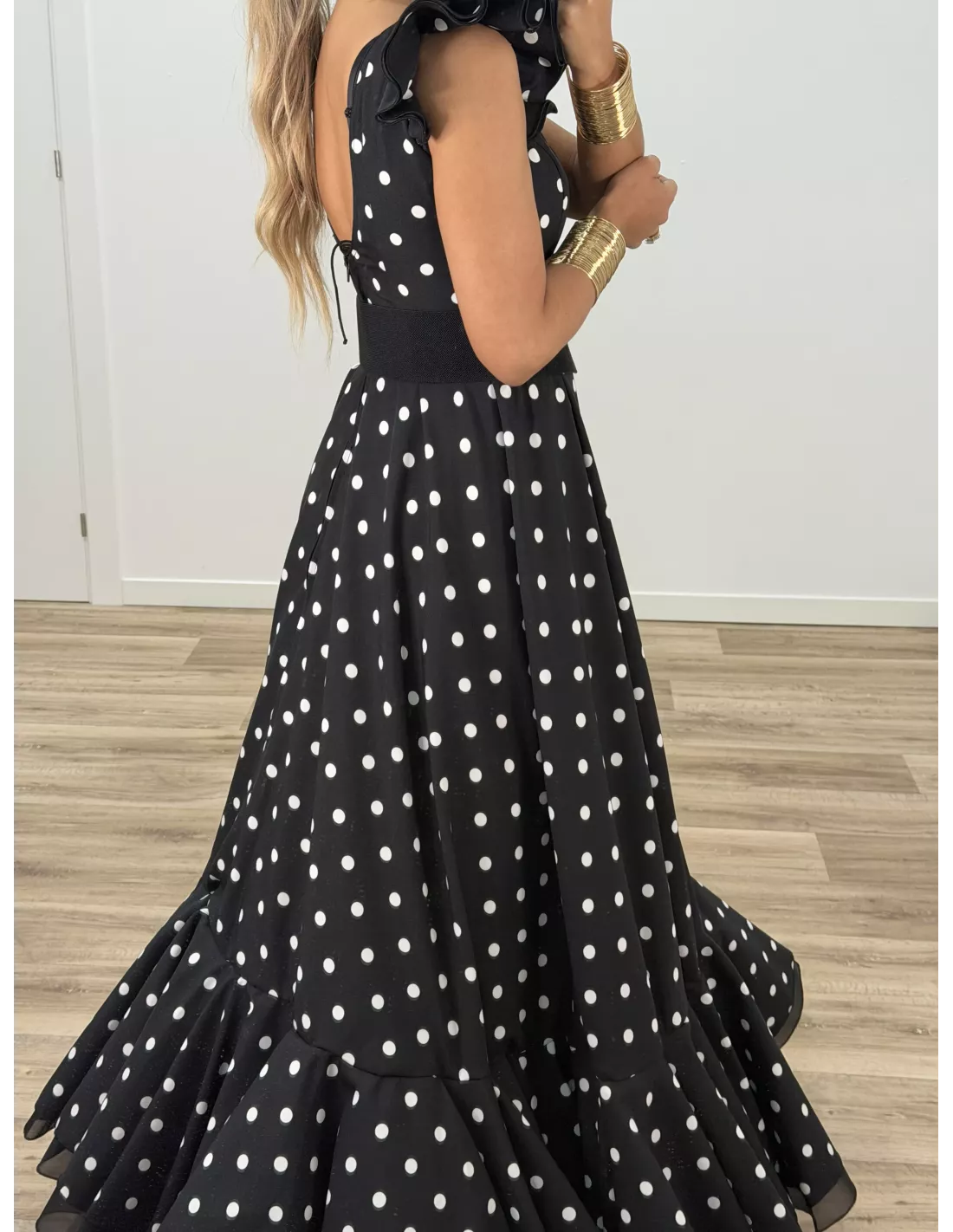 Bata de lunares negro y blanco
