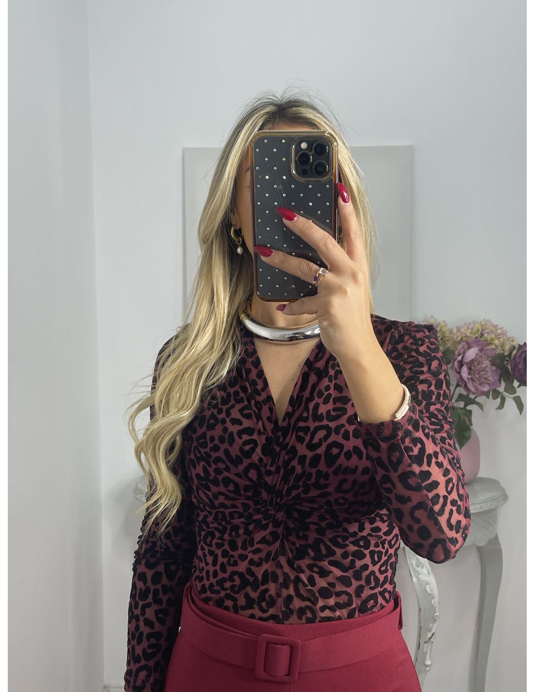 Body burdeos con print de terciopelo