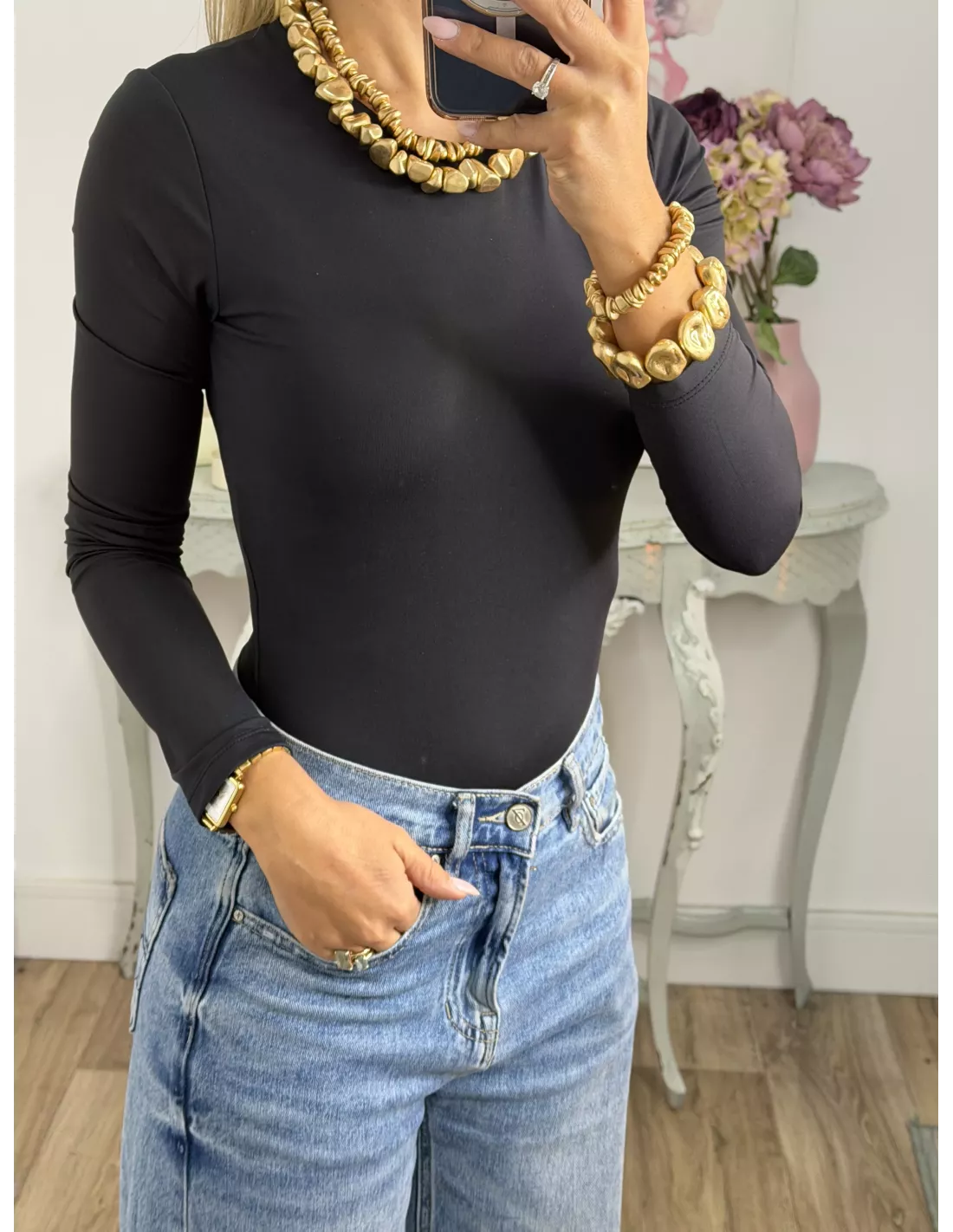 Body de licra de cuello a la caja de corte ajustado. Tiene una licra muy buena. La zona del culete. Es normal. No es muy metida y se cierra con corchetes.