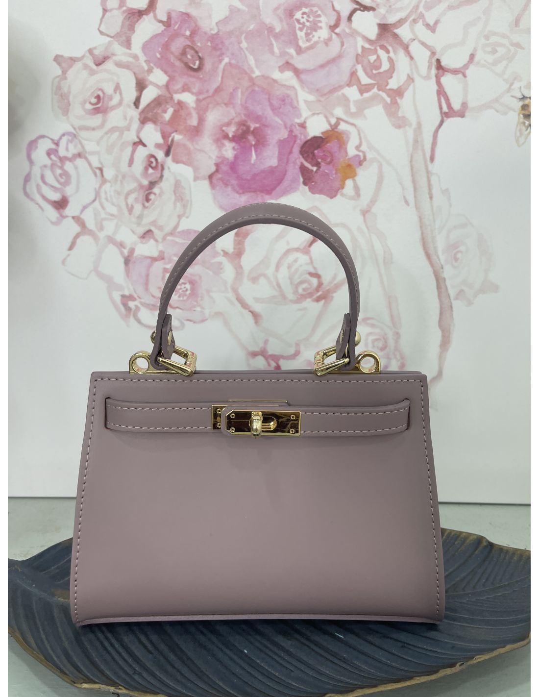 Bolso de piel, con los detalles dorados. Lleva bandolera del mismo color.