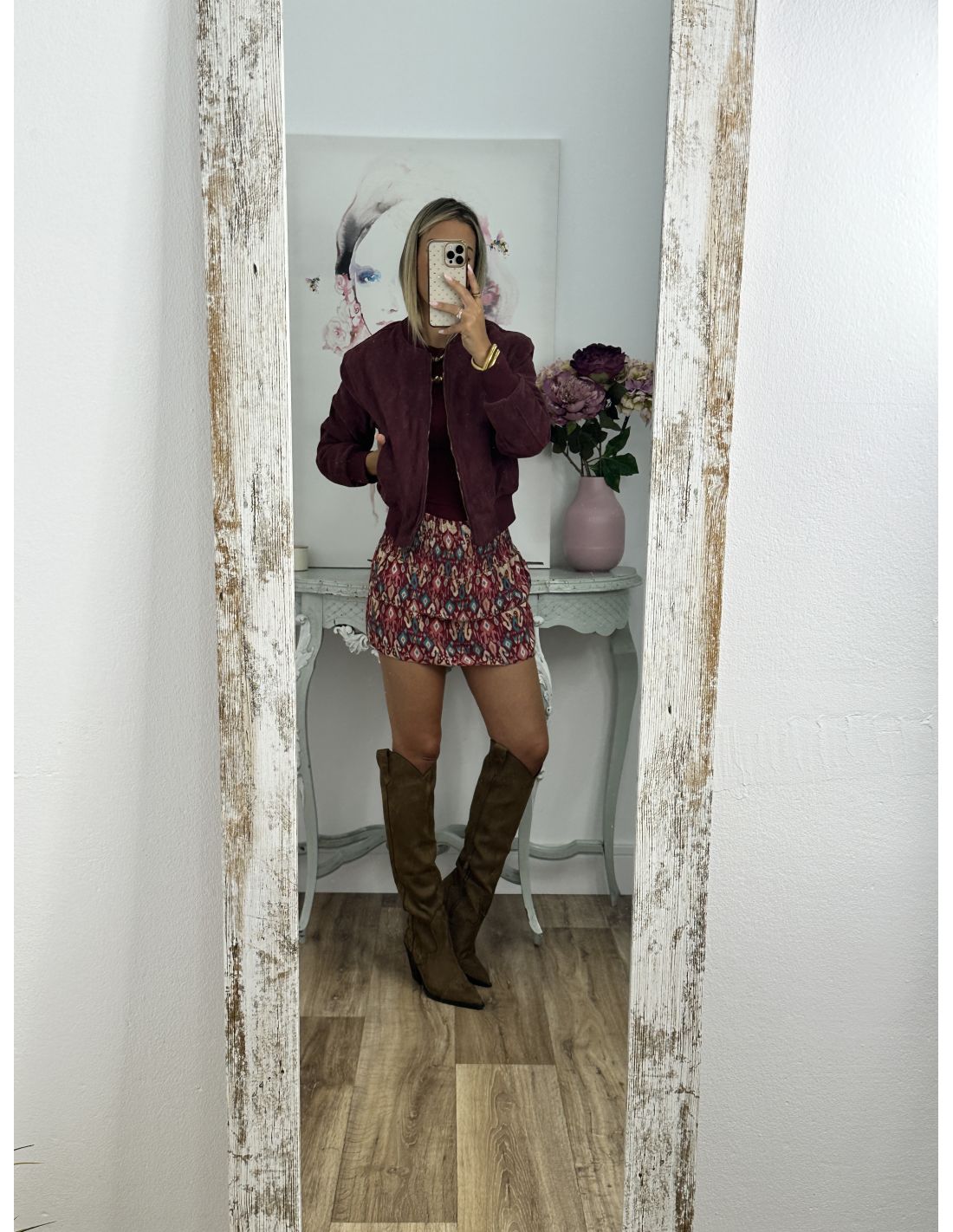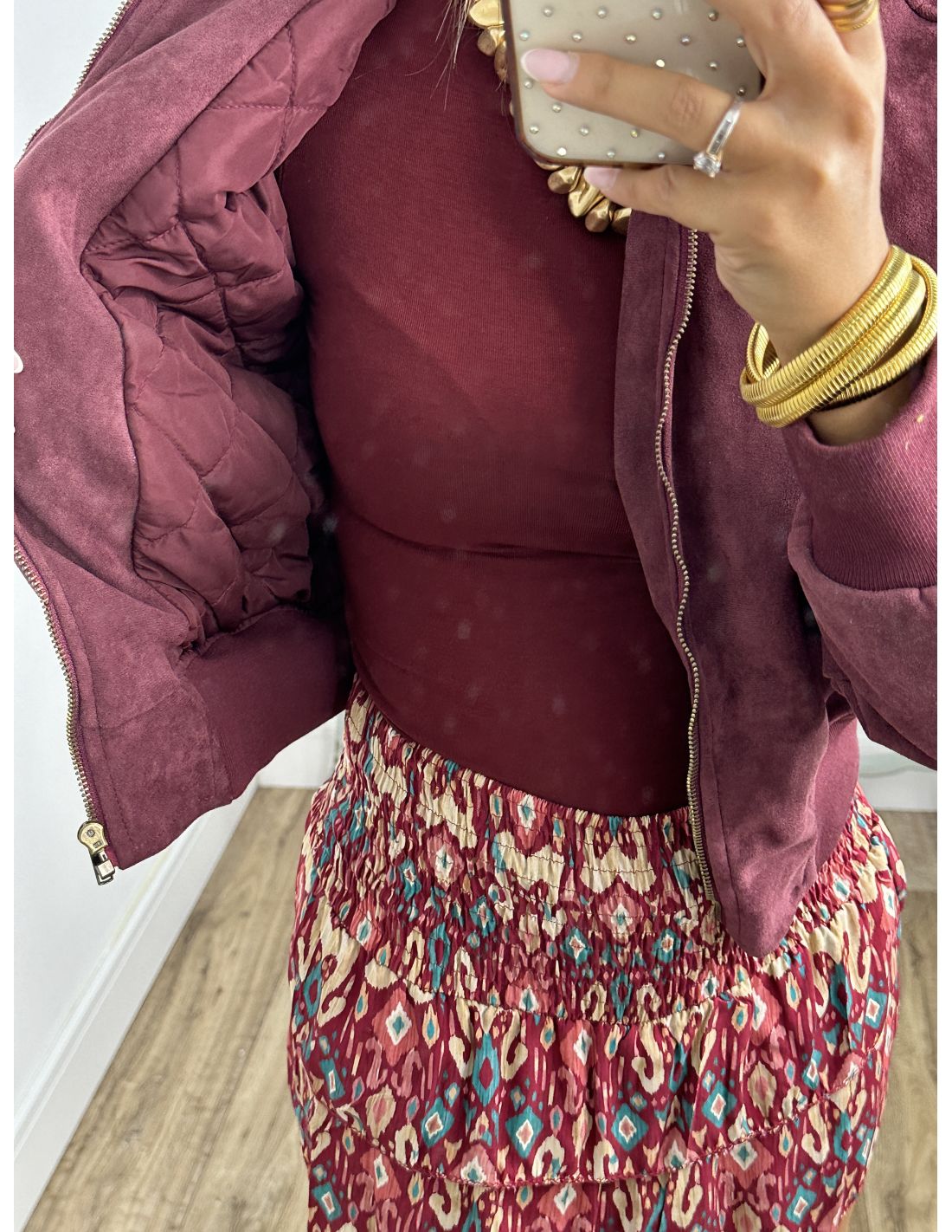 Bomber efecto piel de melocotón, se cierra con cremallera, y trae bolsillos. Es acolchada y va forrada. Talla justa si estas entre dos tallas o tienes pecho, una talla más de la habitual