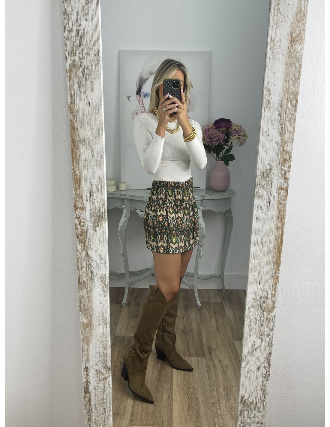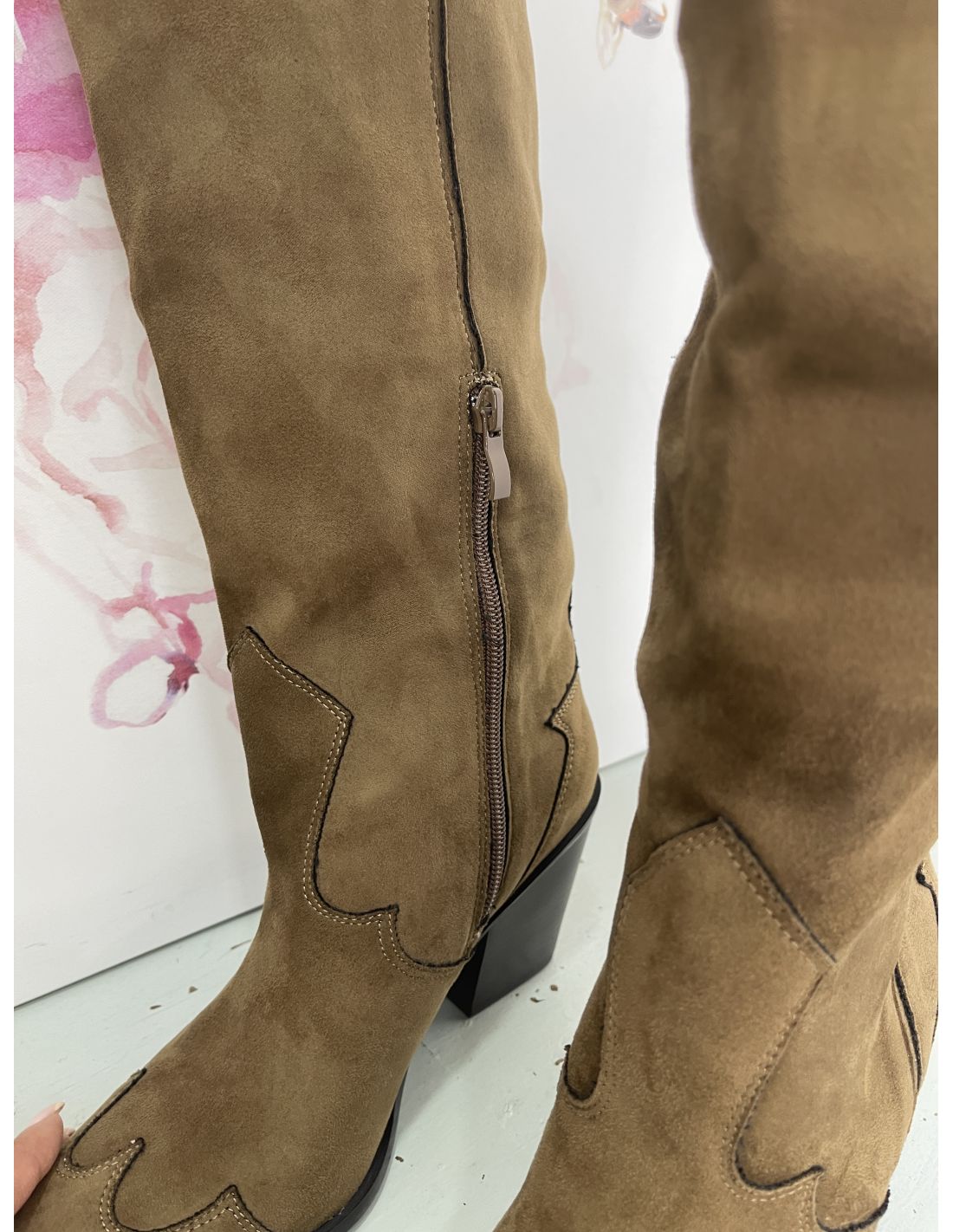 Bota tipo cowboy, de efecto piel de melocotón. El tacón es muy cómodo. Número habitual