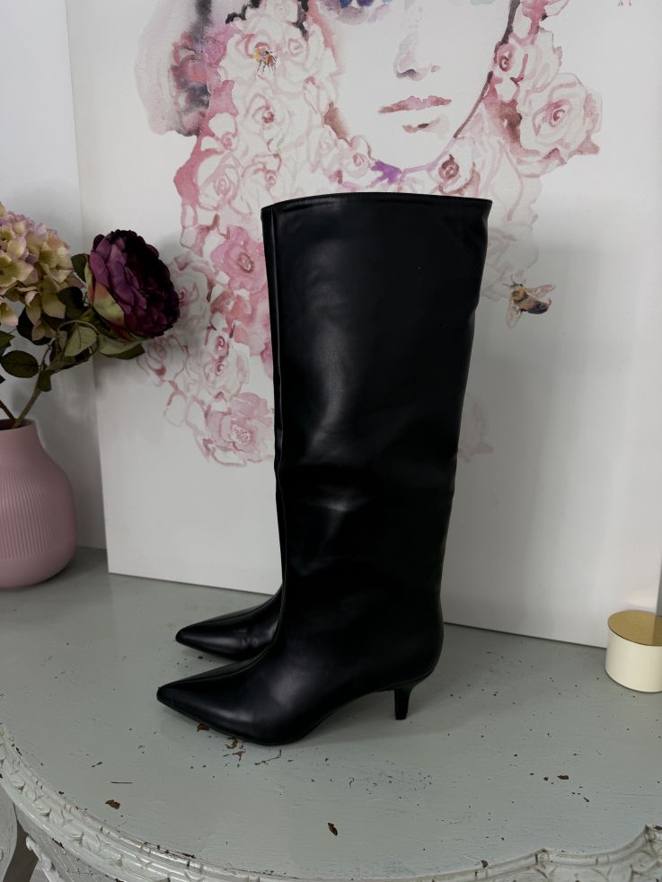 Medidas: tacón 6,5 cm, cremallera 18,5 cm, altura de la caña 40,5 cm, contorno de la caña 41 cm