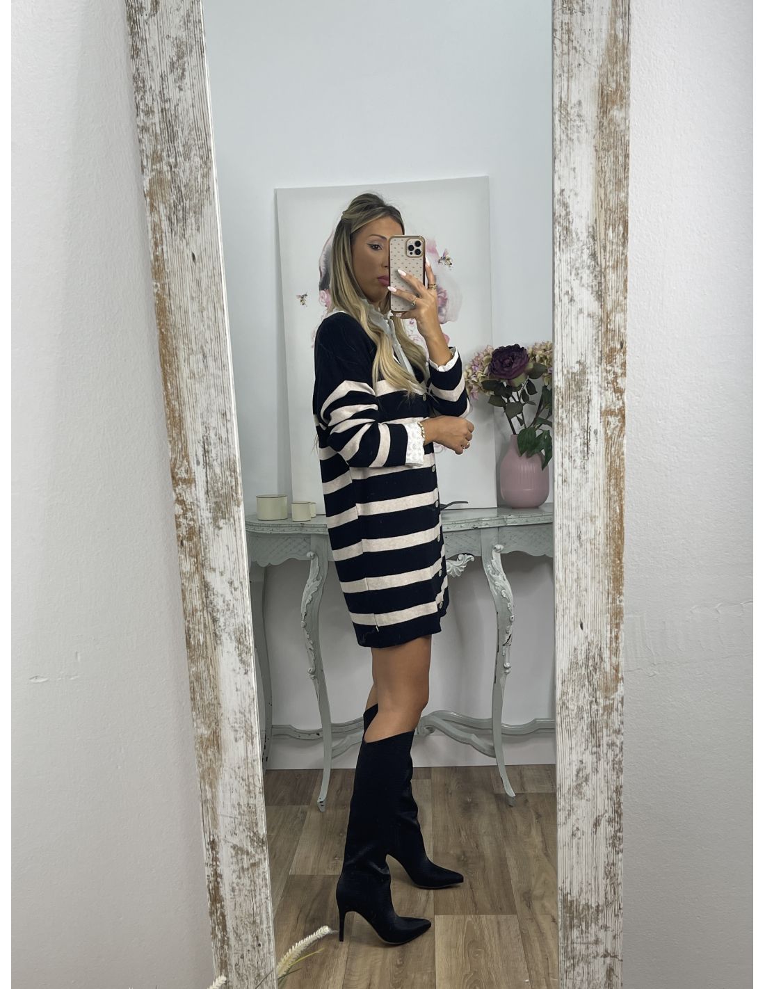 Bota alta con cierres de cremallera al lado, forrada por dentro.