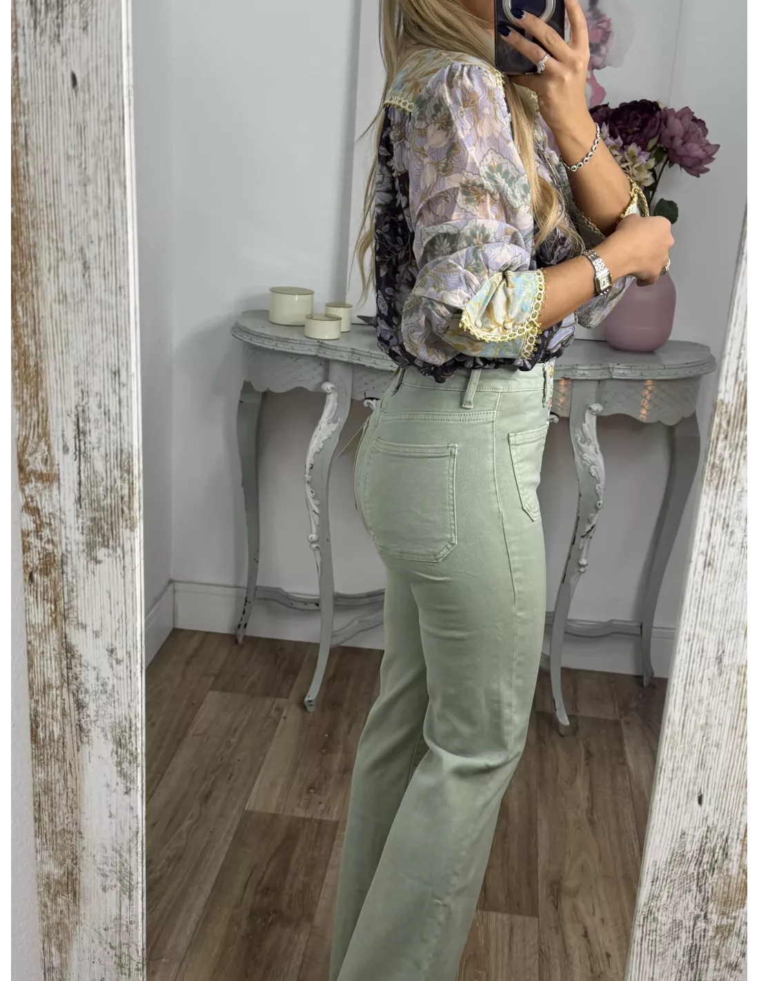 La modelo lleva puesta la talla S, ella utiliza de forma habitual talla XS-S y mide 1,60 cm