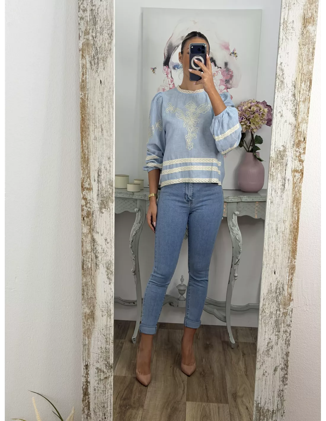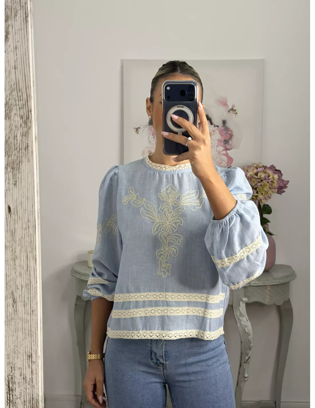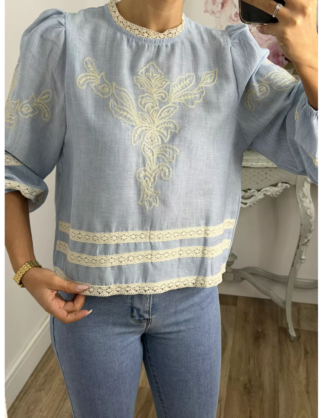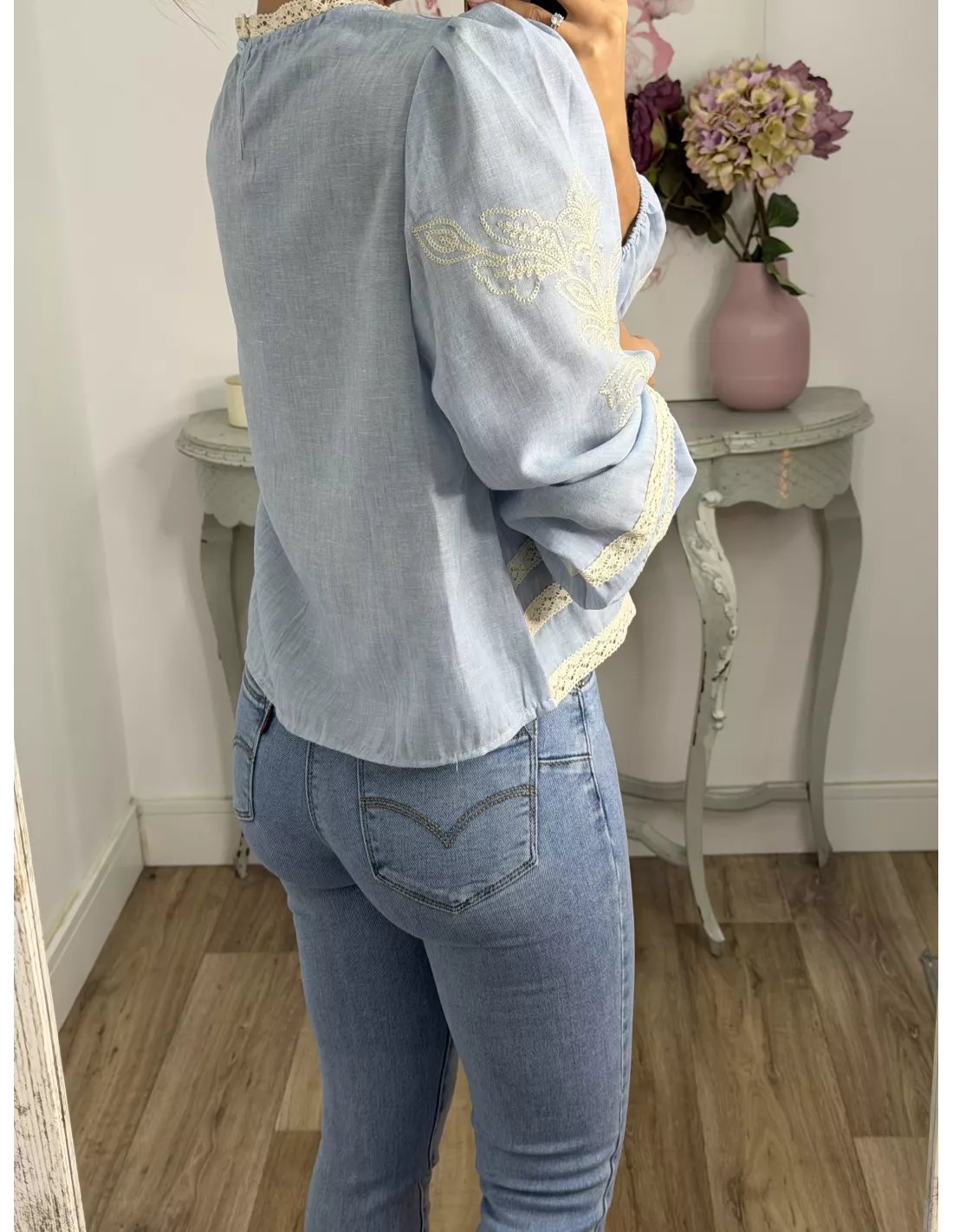Camisa Chic azul bordada