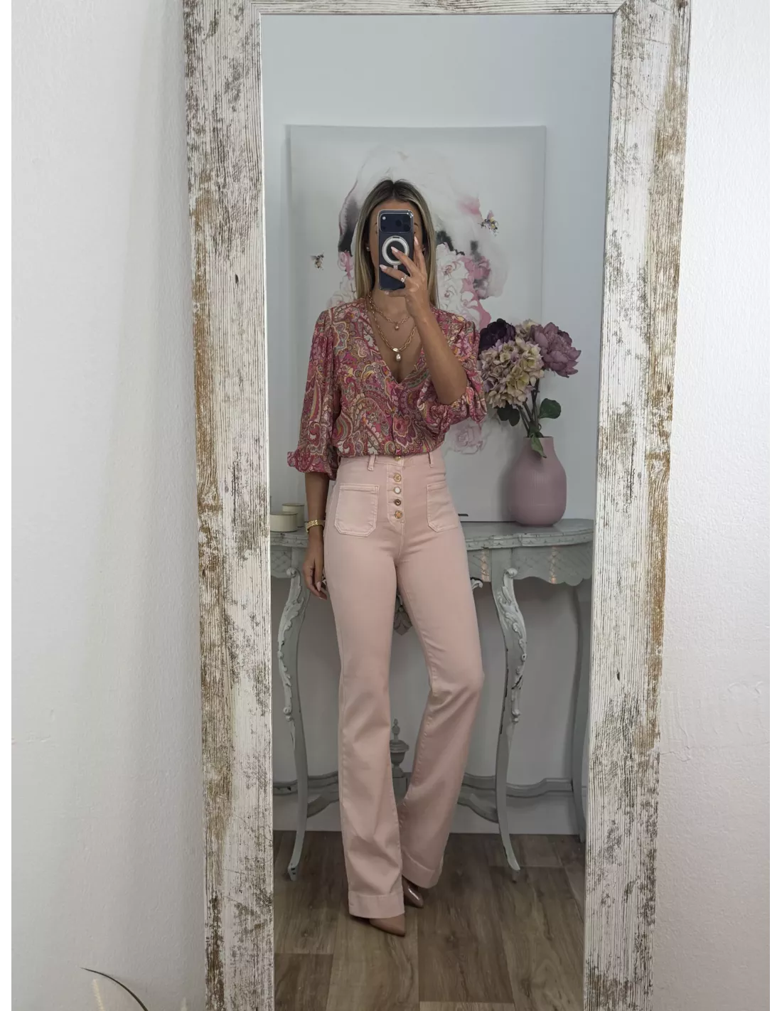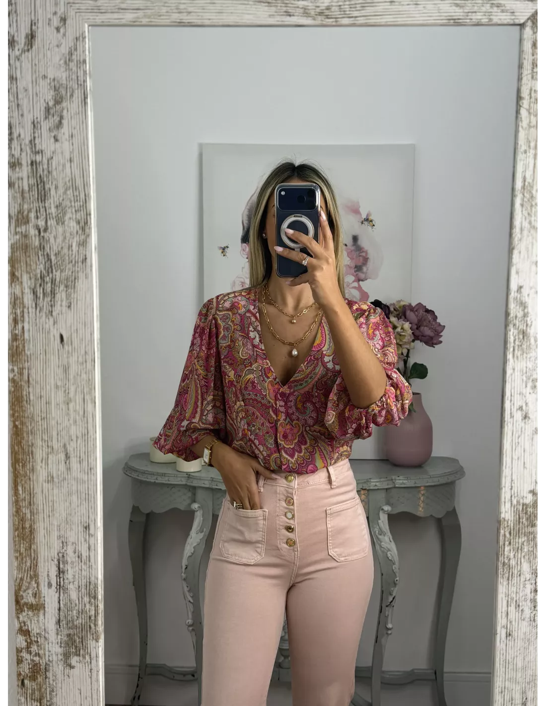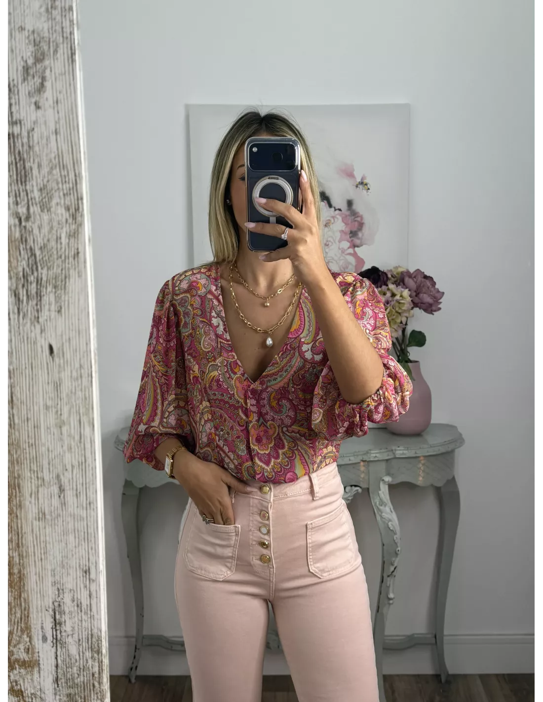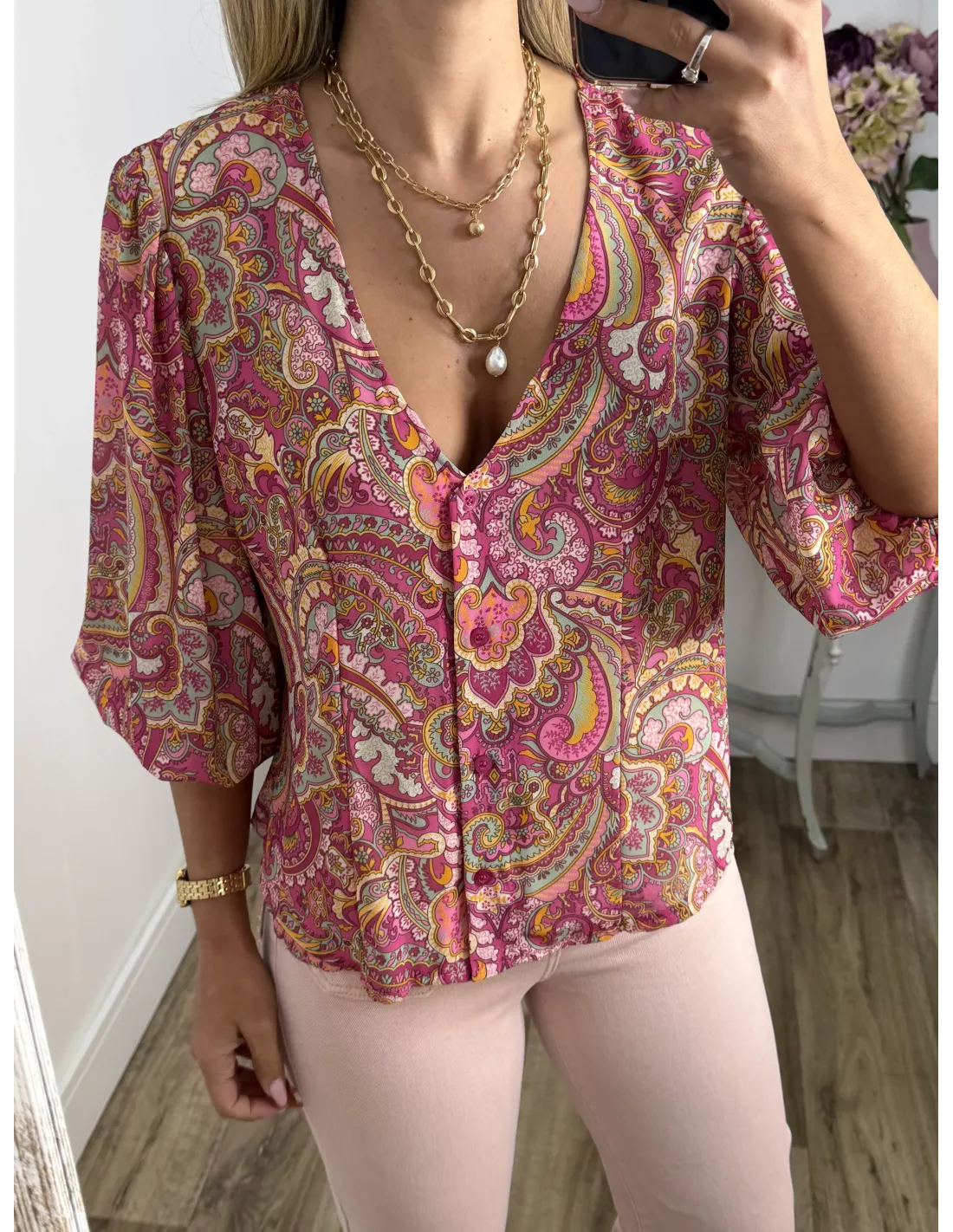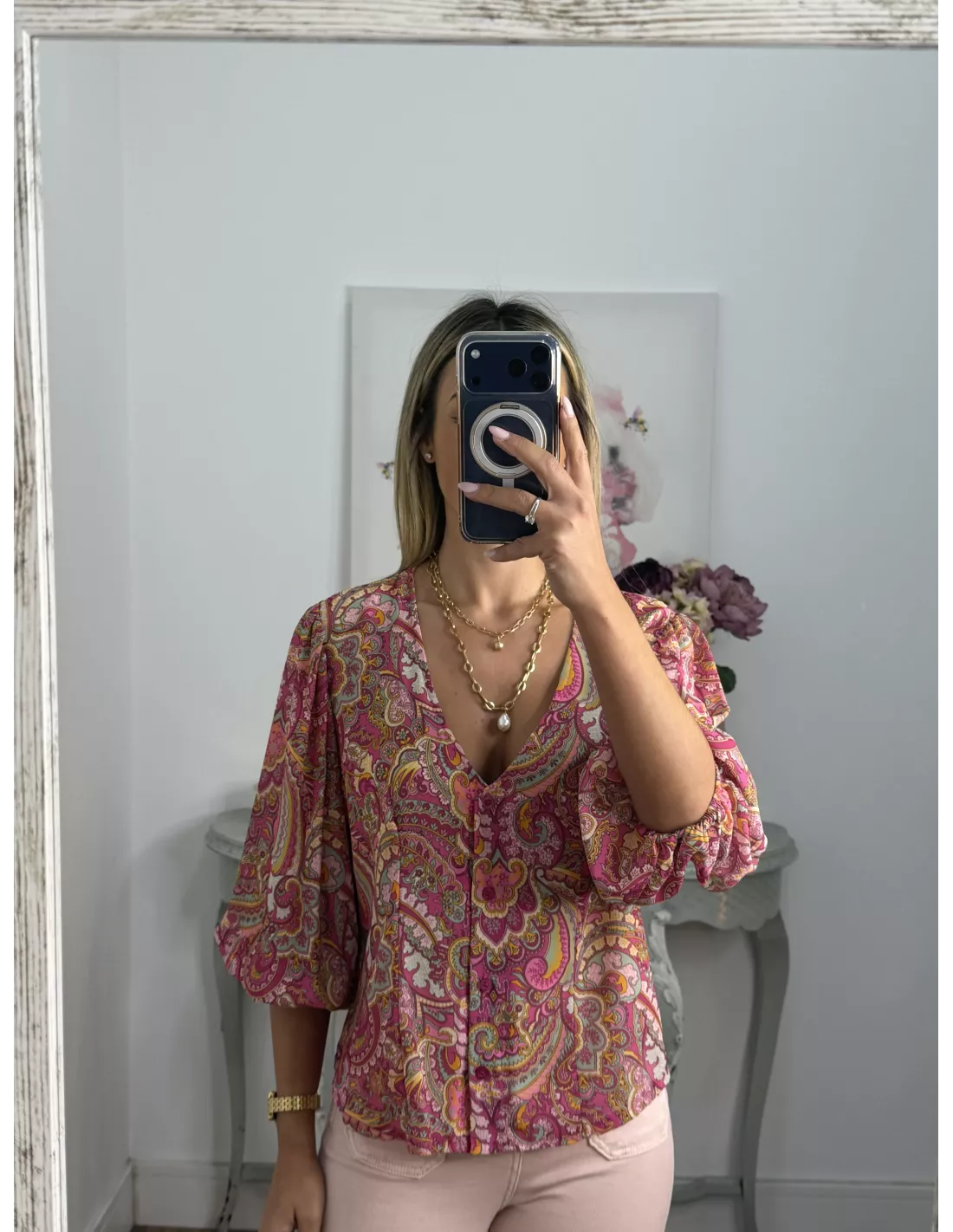 Camisa de gasa estampada rosa