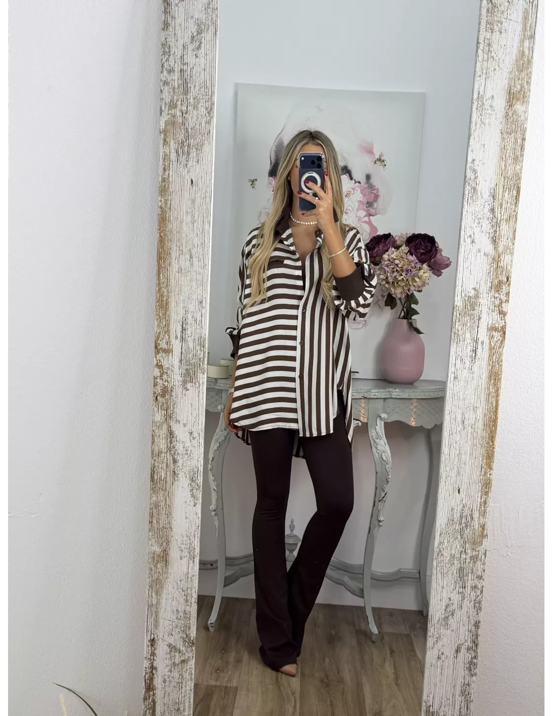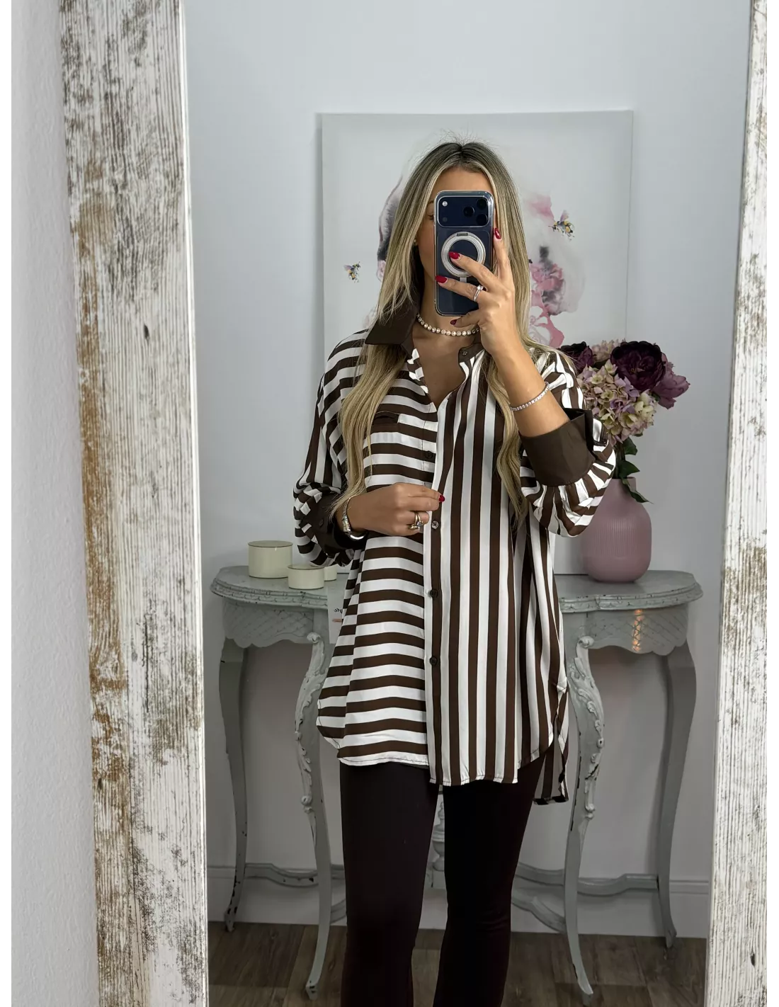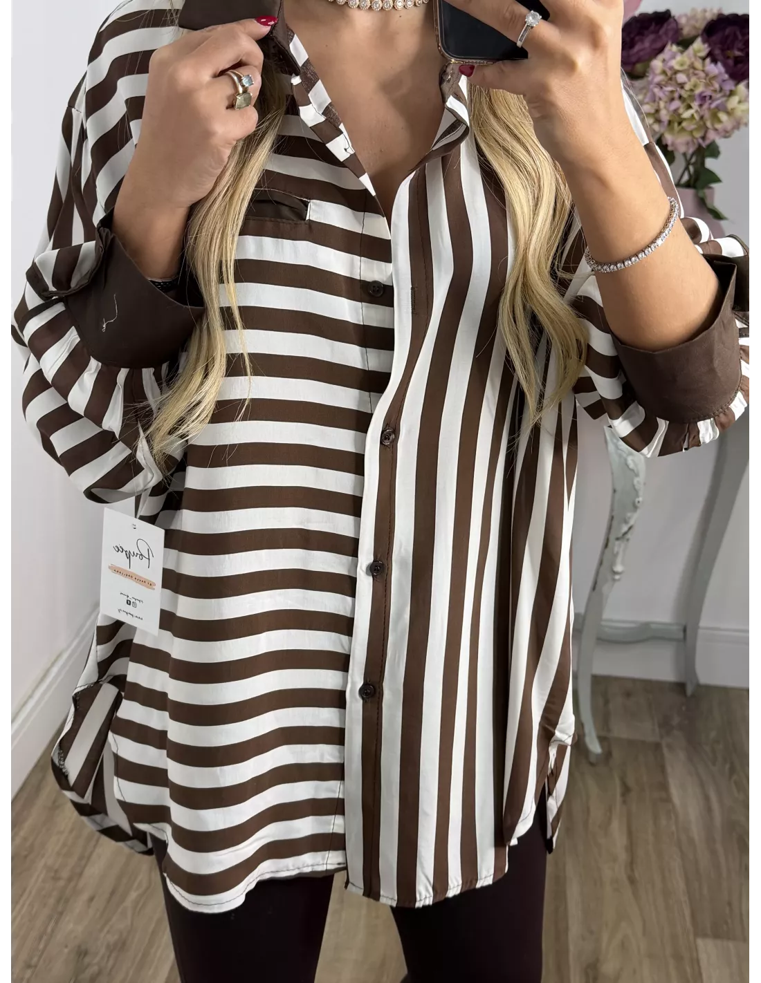 Camisa de tejido fluido que es de corte amplio y oversize, más larga por detrás que por delante. El cuello y los puños van entretelados.