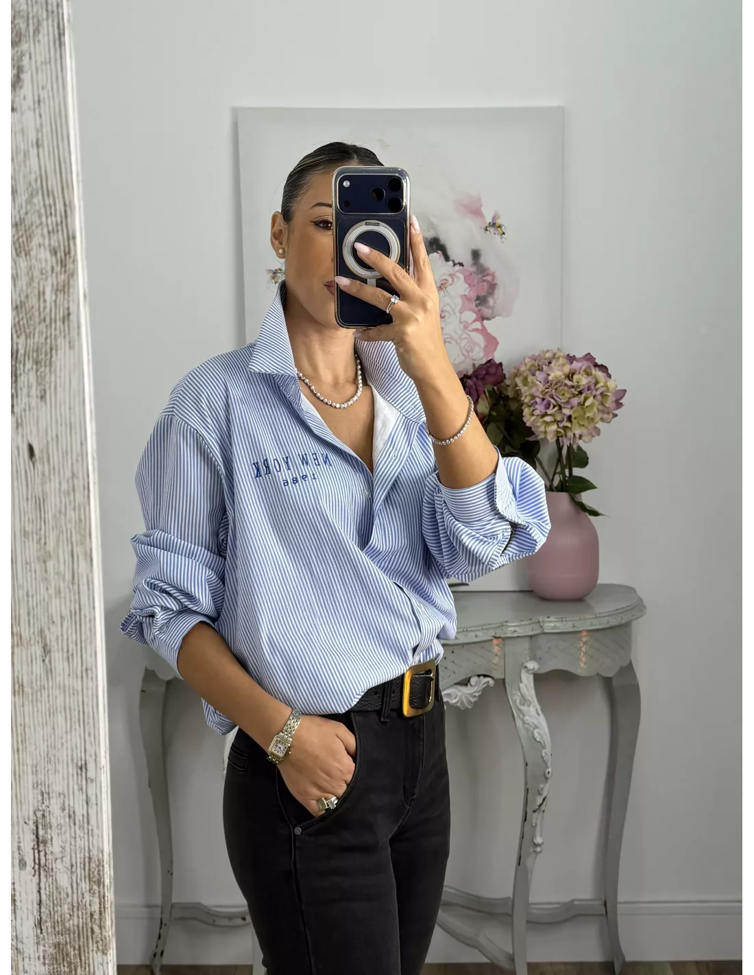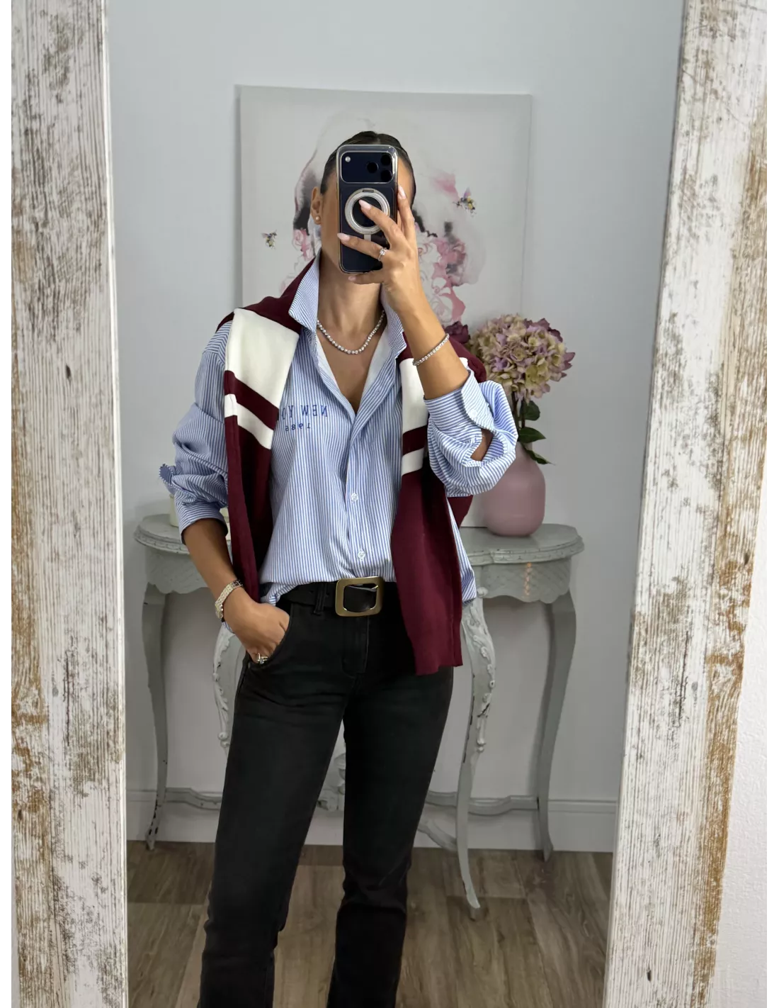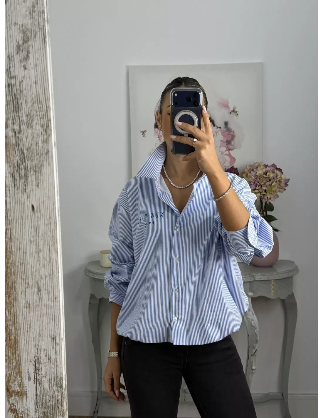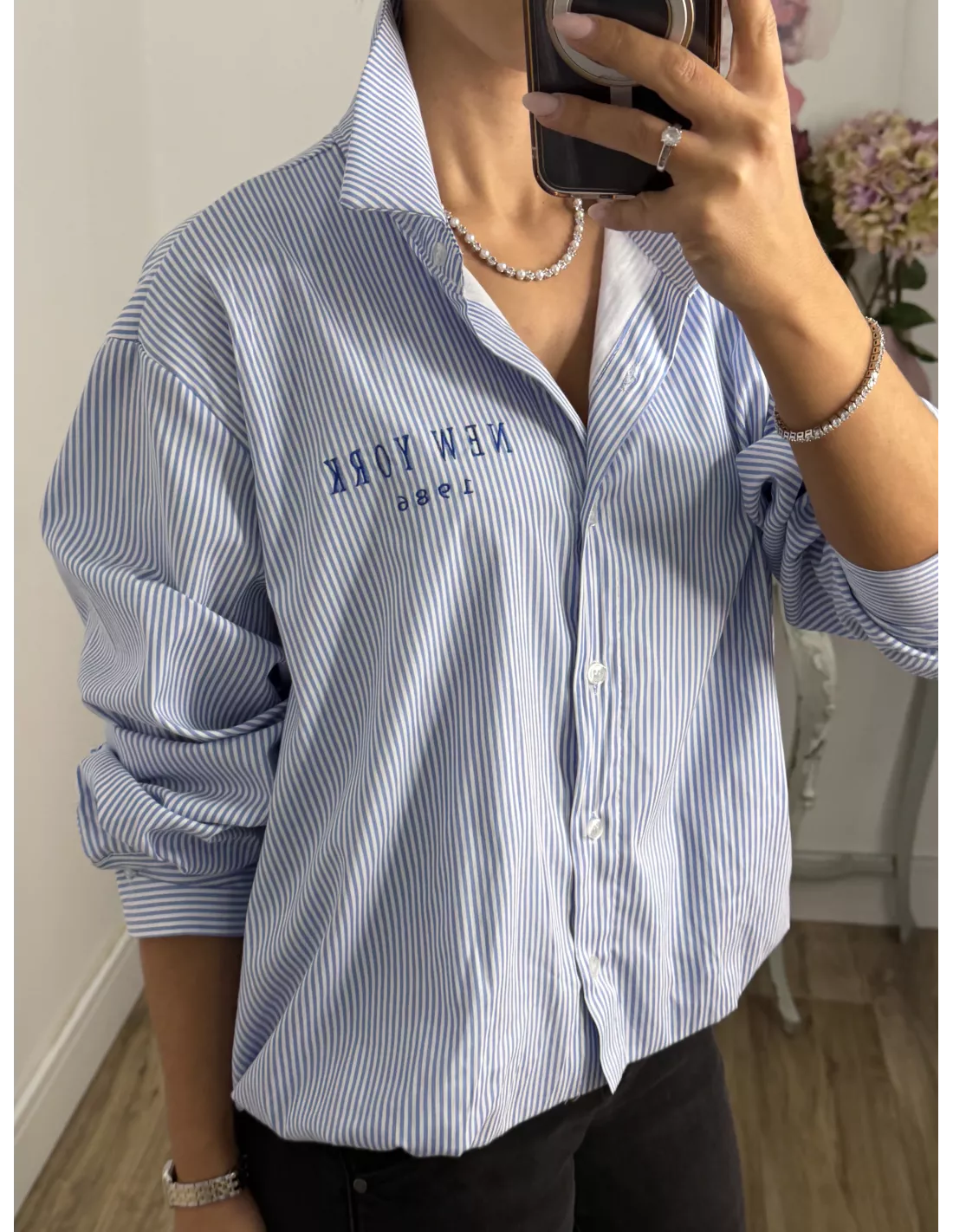 Camisa Bomber de rayas letras New York