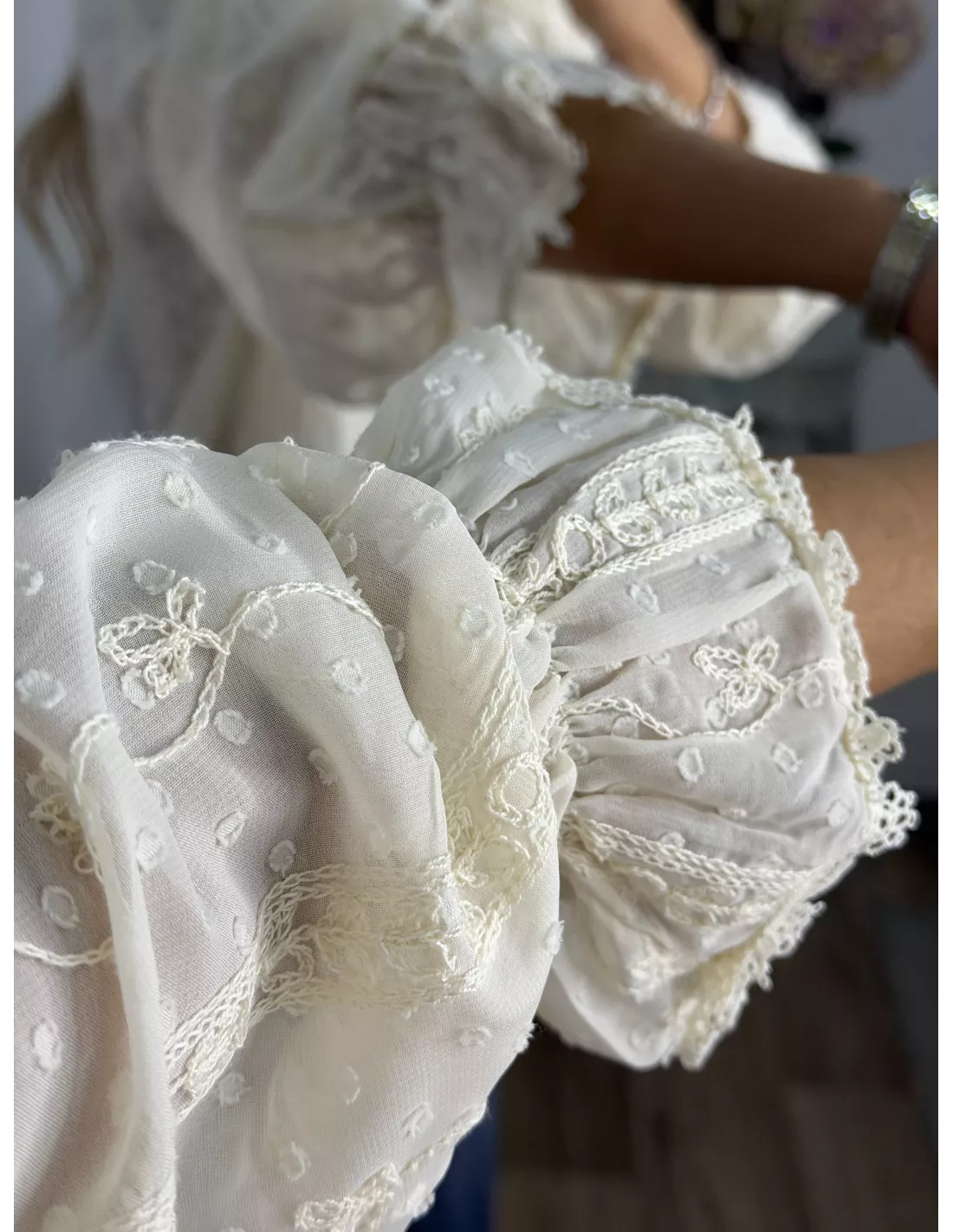 Camisa gasa plumeti bordada