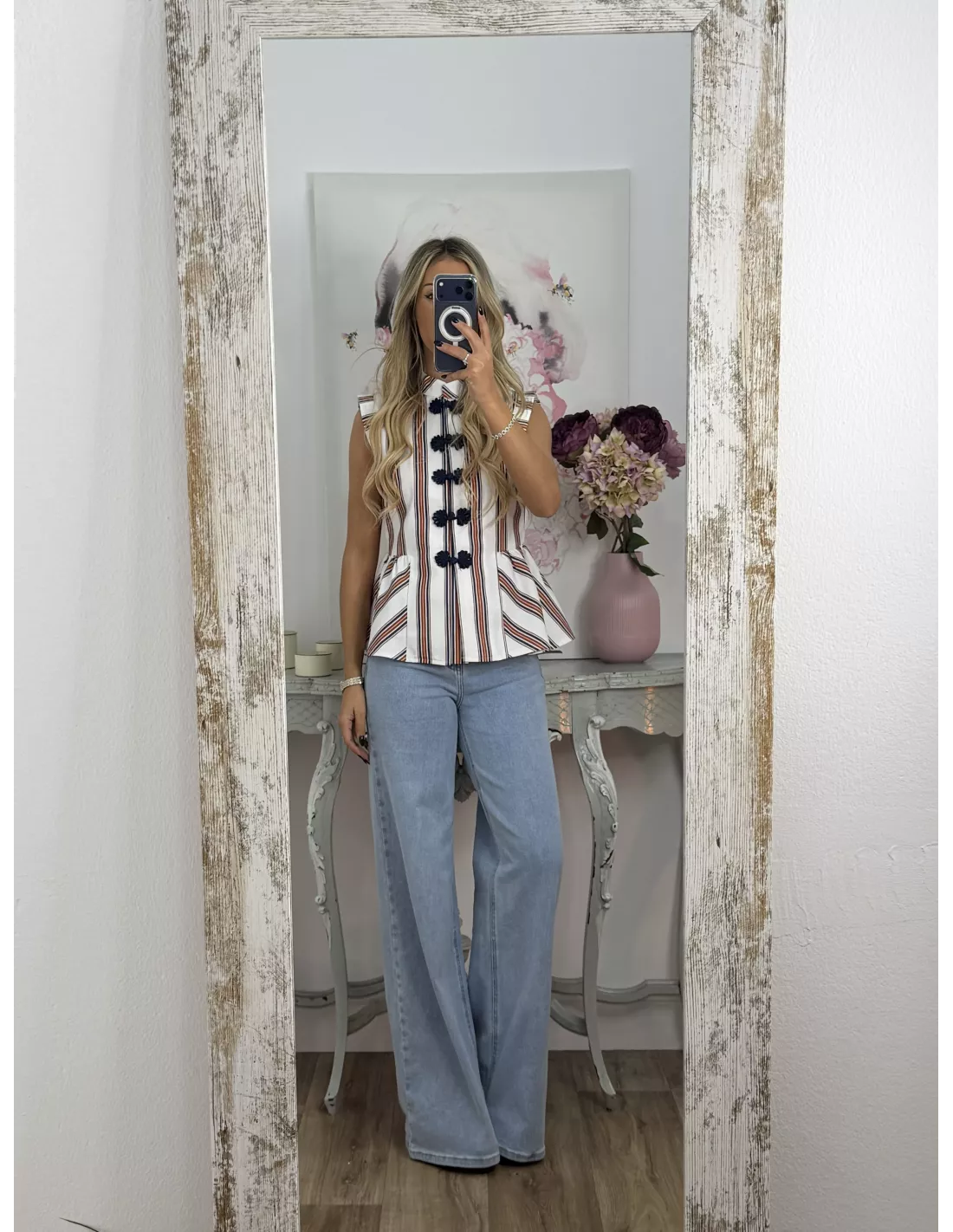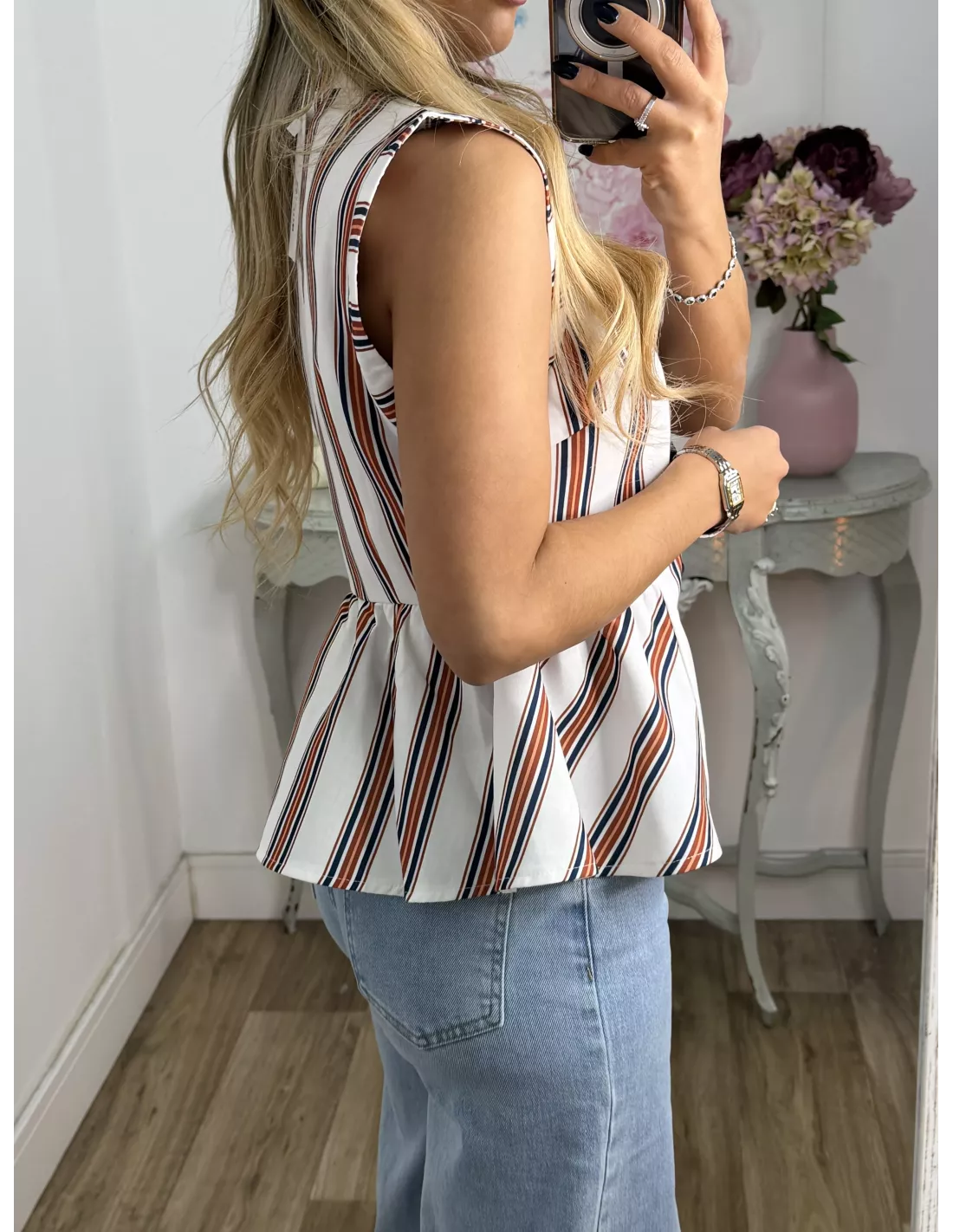 Camisa de cuello de tirilla con corte peplum.