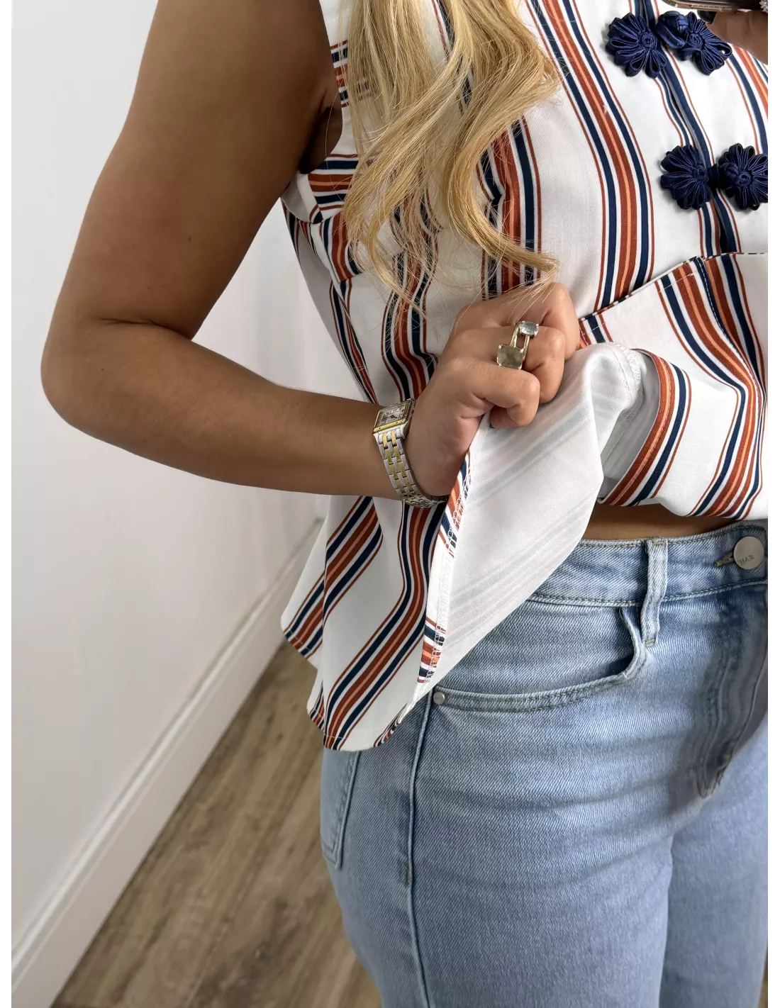 La modelo lleva puesta la talla S, ella utiliza de forma habitual la talla XS-S y mide 1,60cm