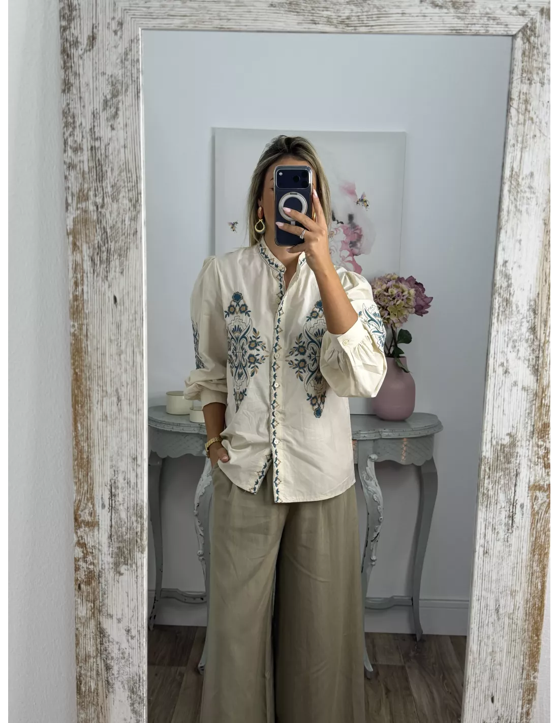 Camisa Leli beige bordada