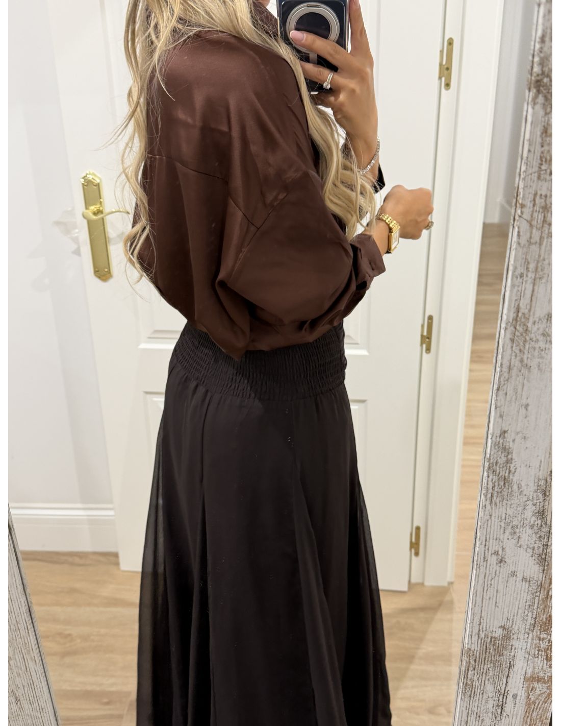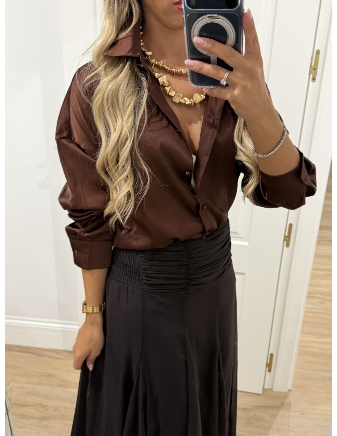 Camisa oversize chocolate satinada