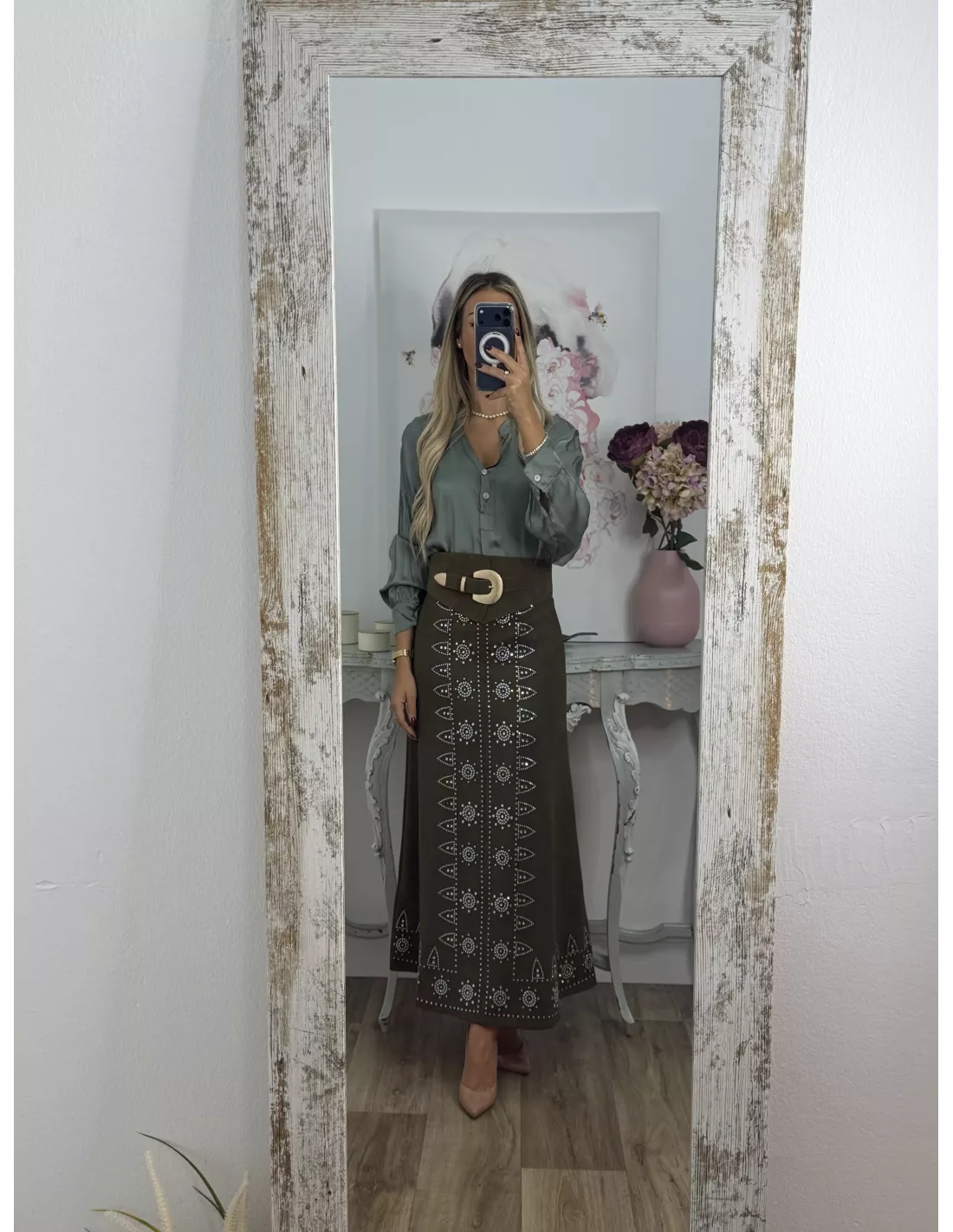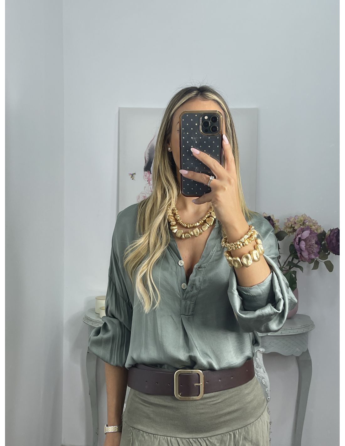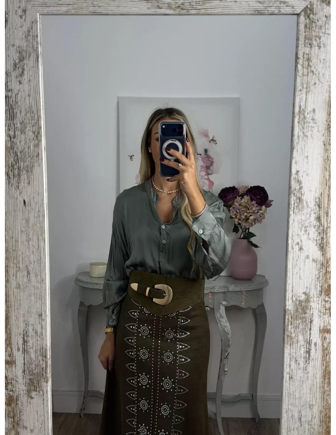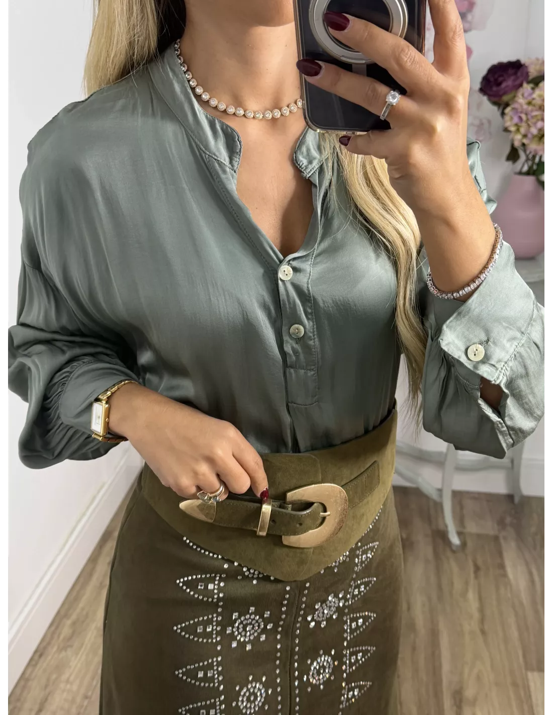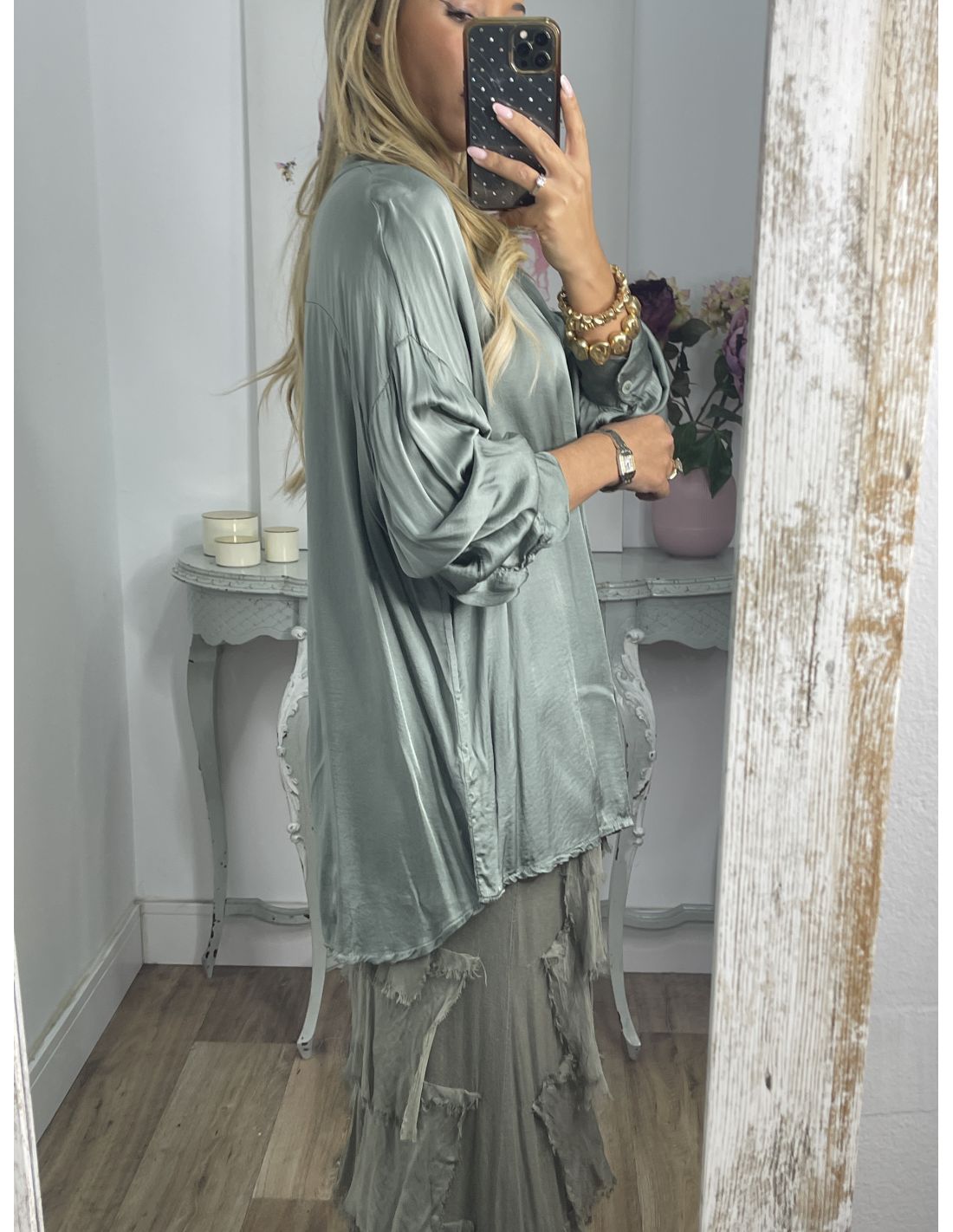 Camisa de tejido satinado de corte oversize, que es más larga por detrás que por delante.