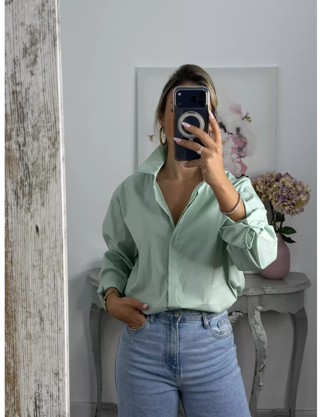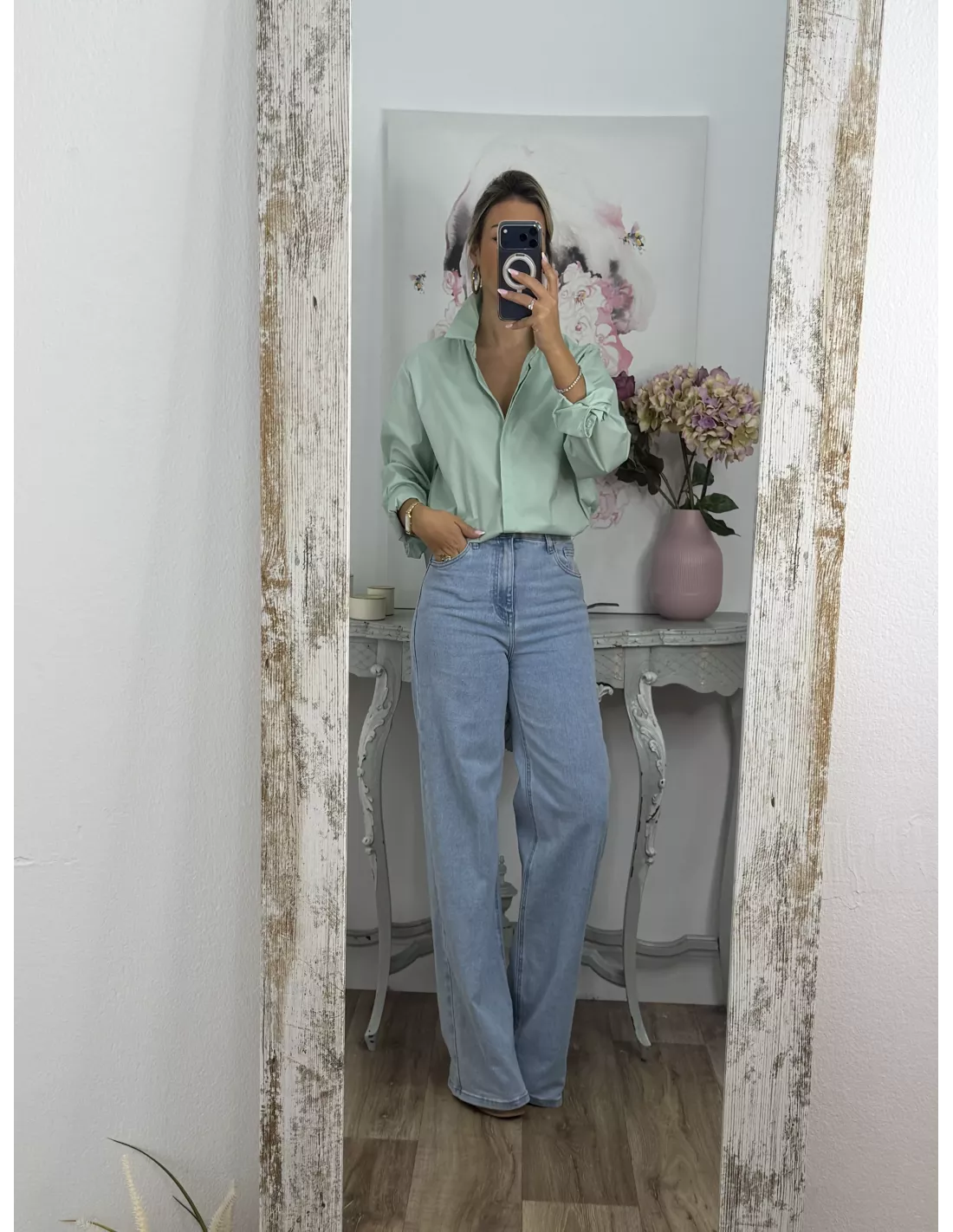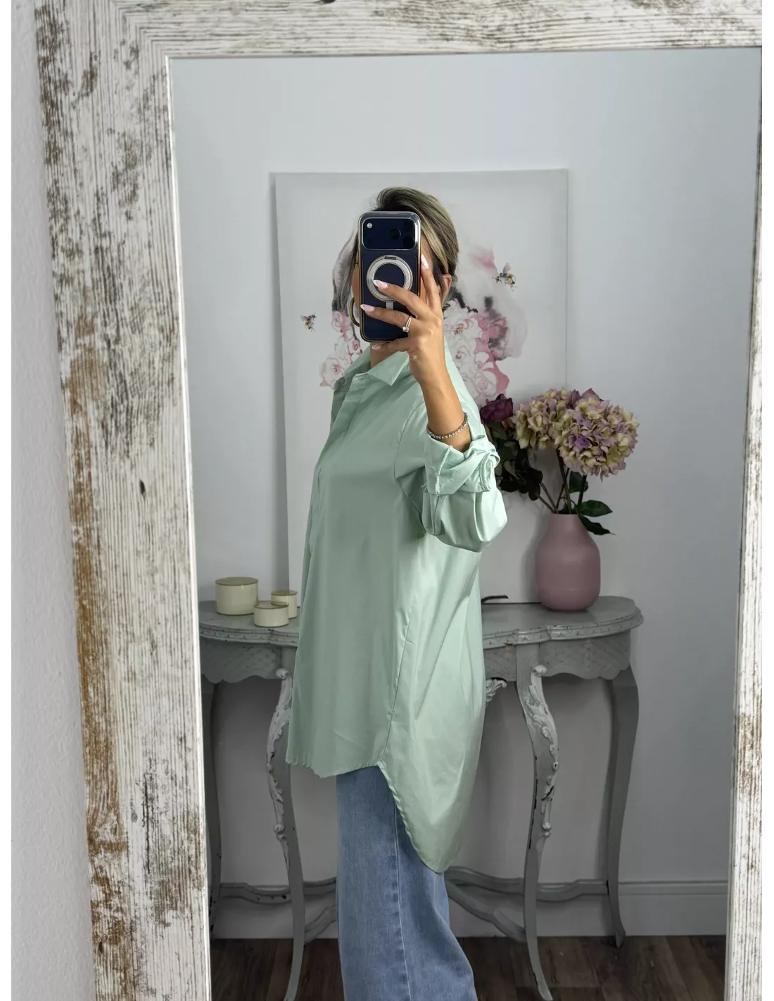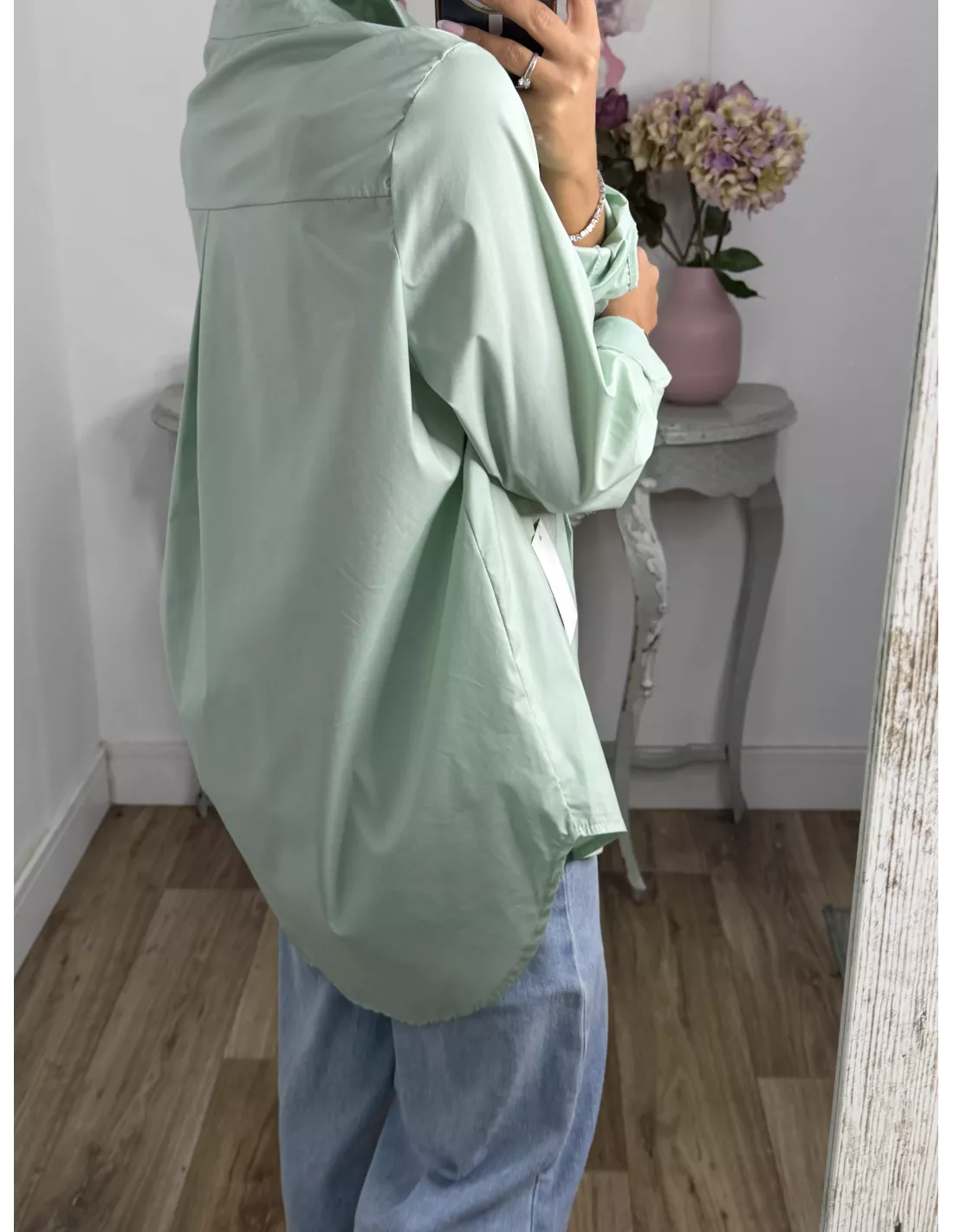 Camisa más larga por detrás que por delante, corte amplio.