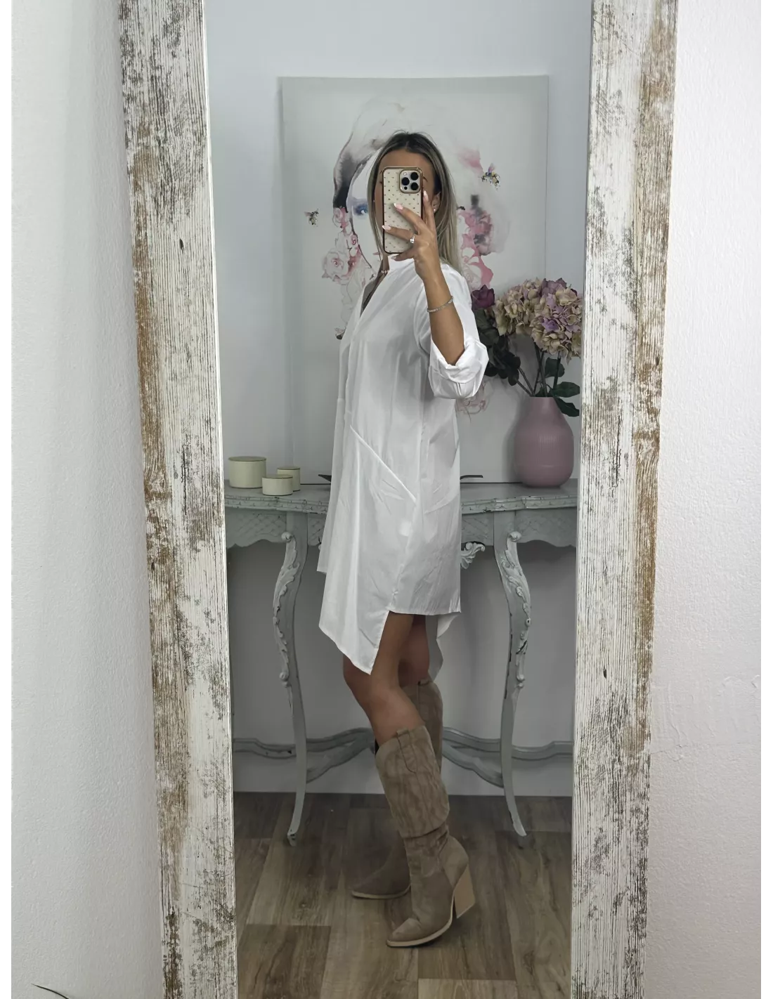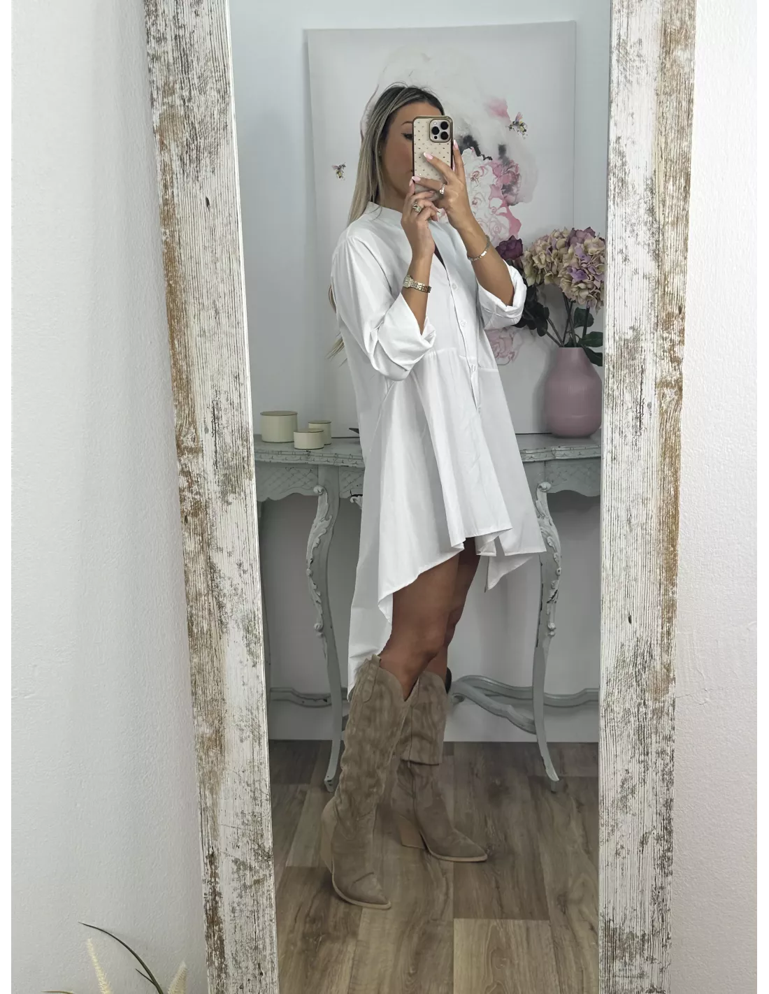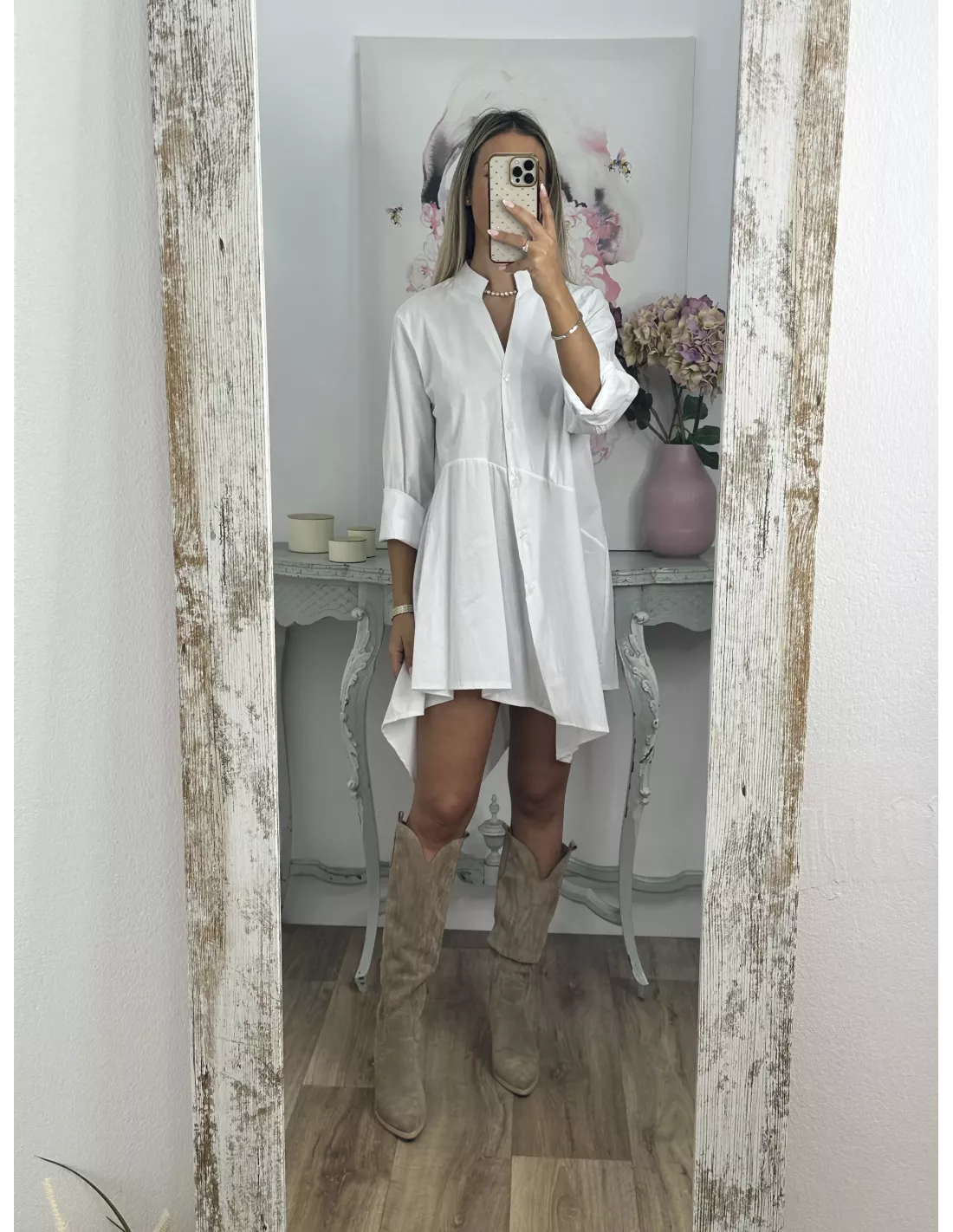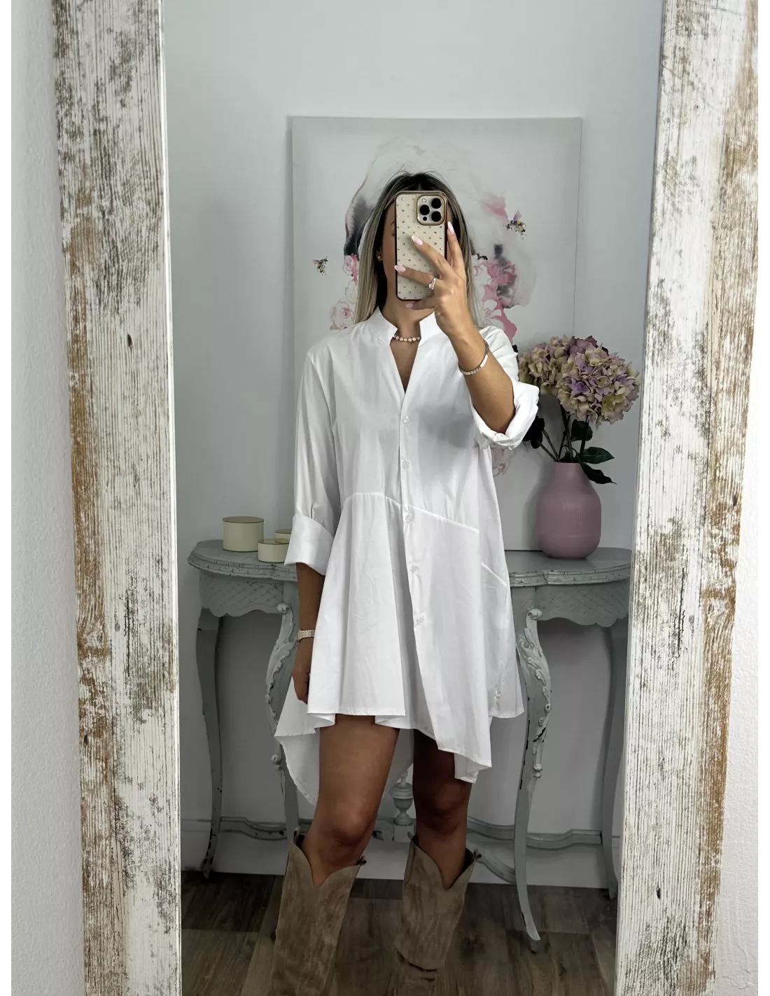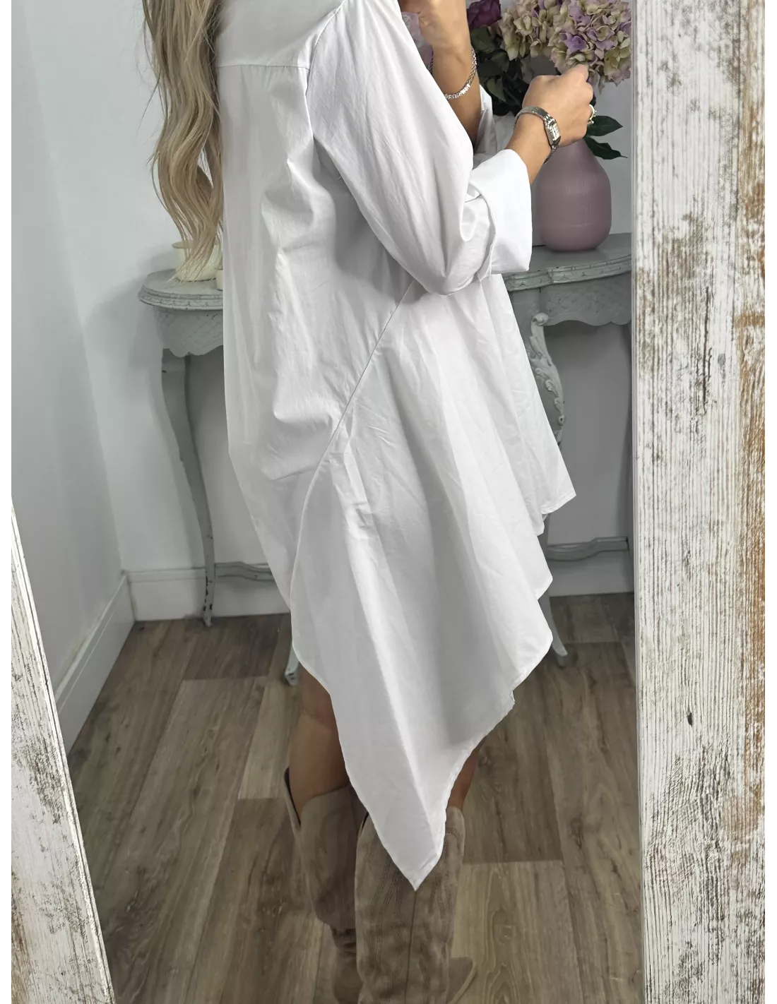 Camisa, vestido debajo asimétrico. Dependiendo la talla y la altura que tenga la puedes utilizar de vestido o de camisa.