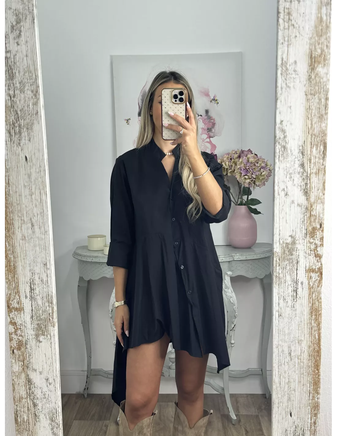 Camisa, vestido debajo asimétrico. Dependiendo la talla y la altura que tenga la puedes utilizar de vestido o de camisa.
