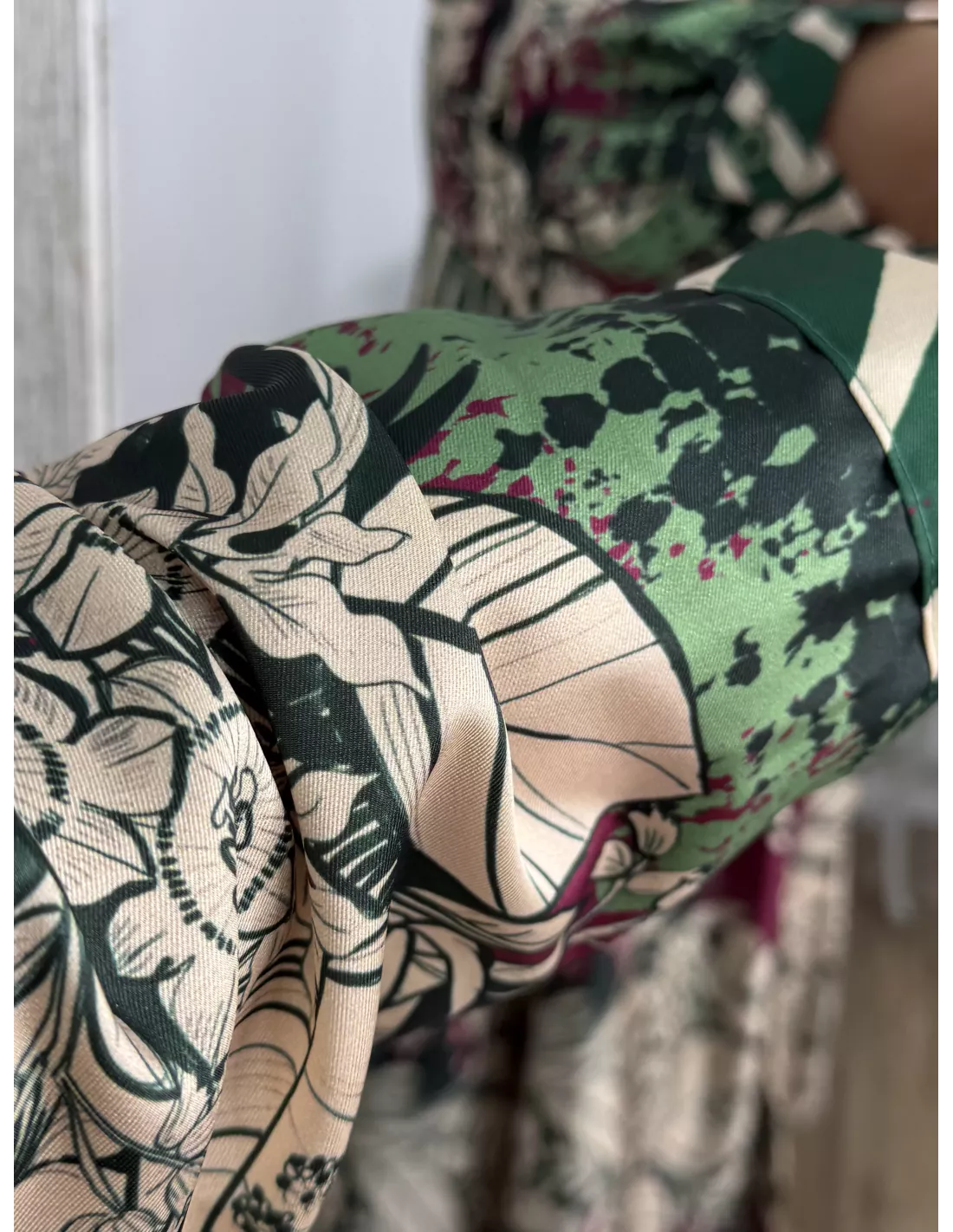 Camisa vestido de tejido tipo raso. El cuello va entretelado y es de corte amplio. Para las chicas con más talla os sirve de camisa y no de vestido.