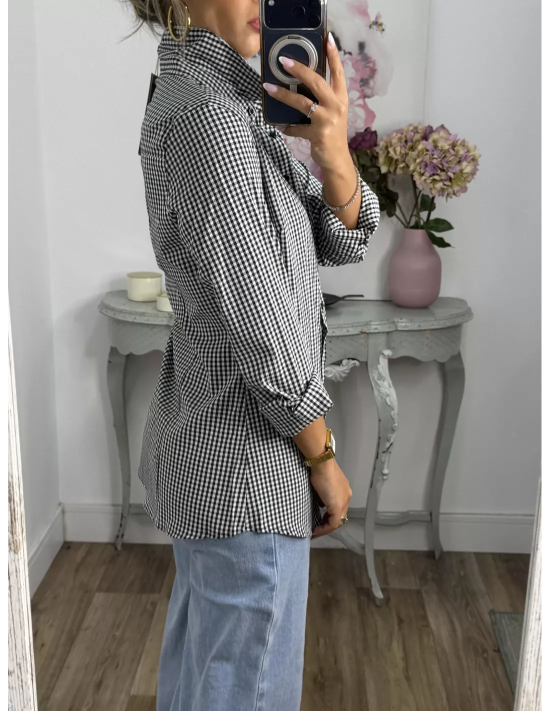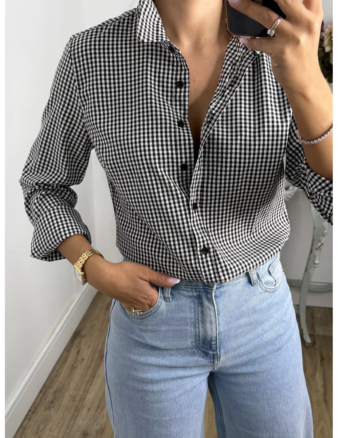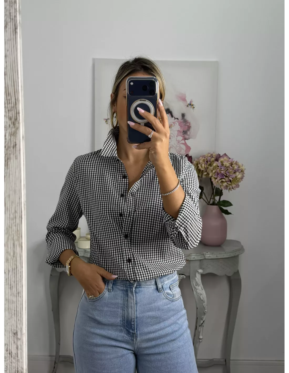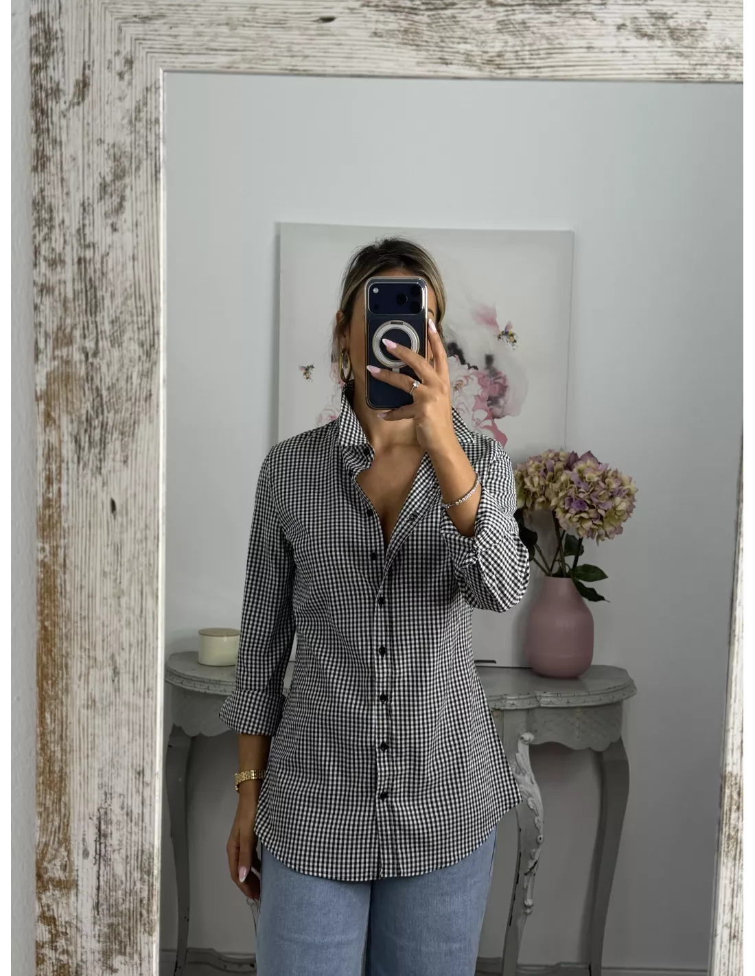 Camisa de cuadros vichy. Parte desde la talla M. Paula lleva la M puesta, que equivale a una talla S, ella suele usar talla xs-s de forma habitual. TALLA PEQUEÑA, MIRAD LAS MEDIDAS.