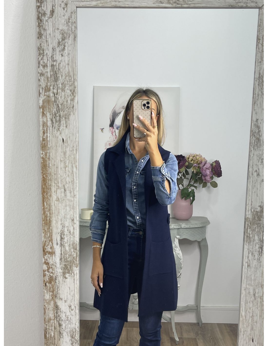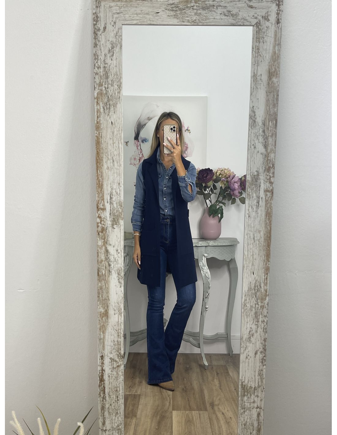 Camisa vaquera denim, efecto desgastado. De corte ajustada con botones de clips. Hace la forma de la cintura. Es elásticas.
