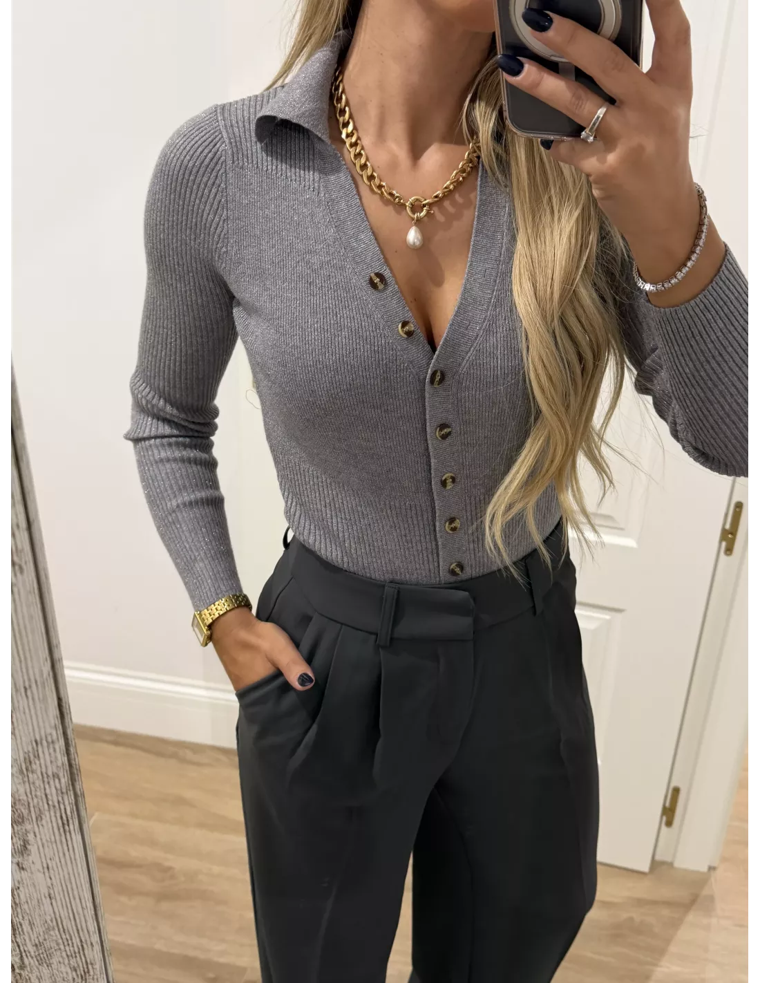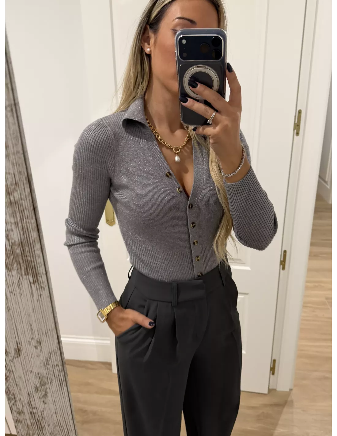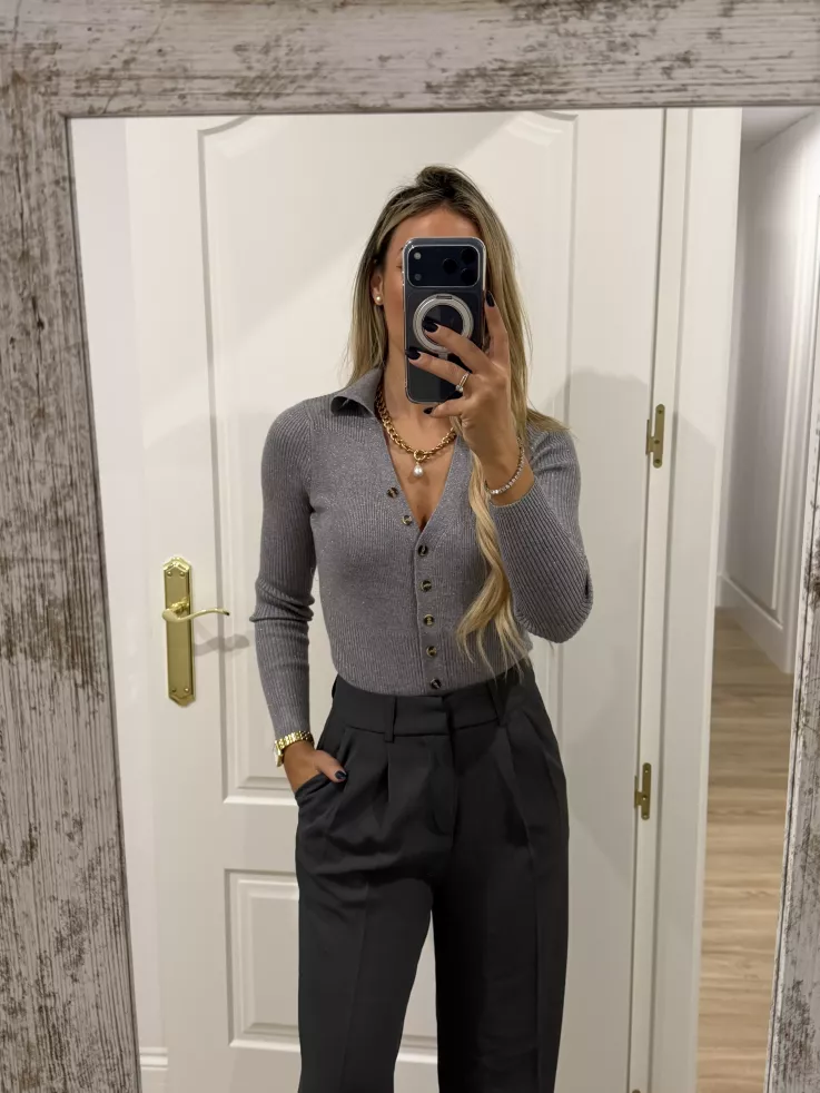 Body de punto gris con botones